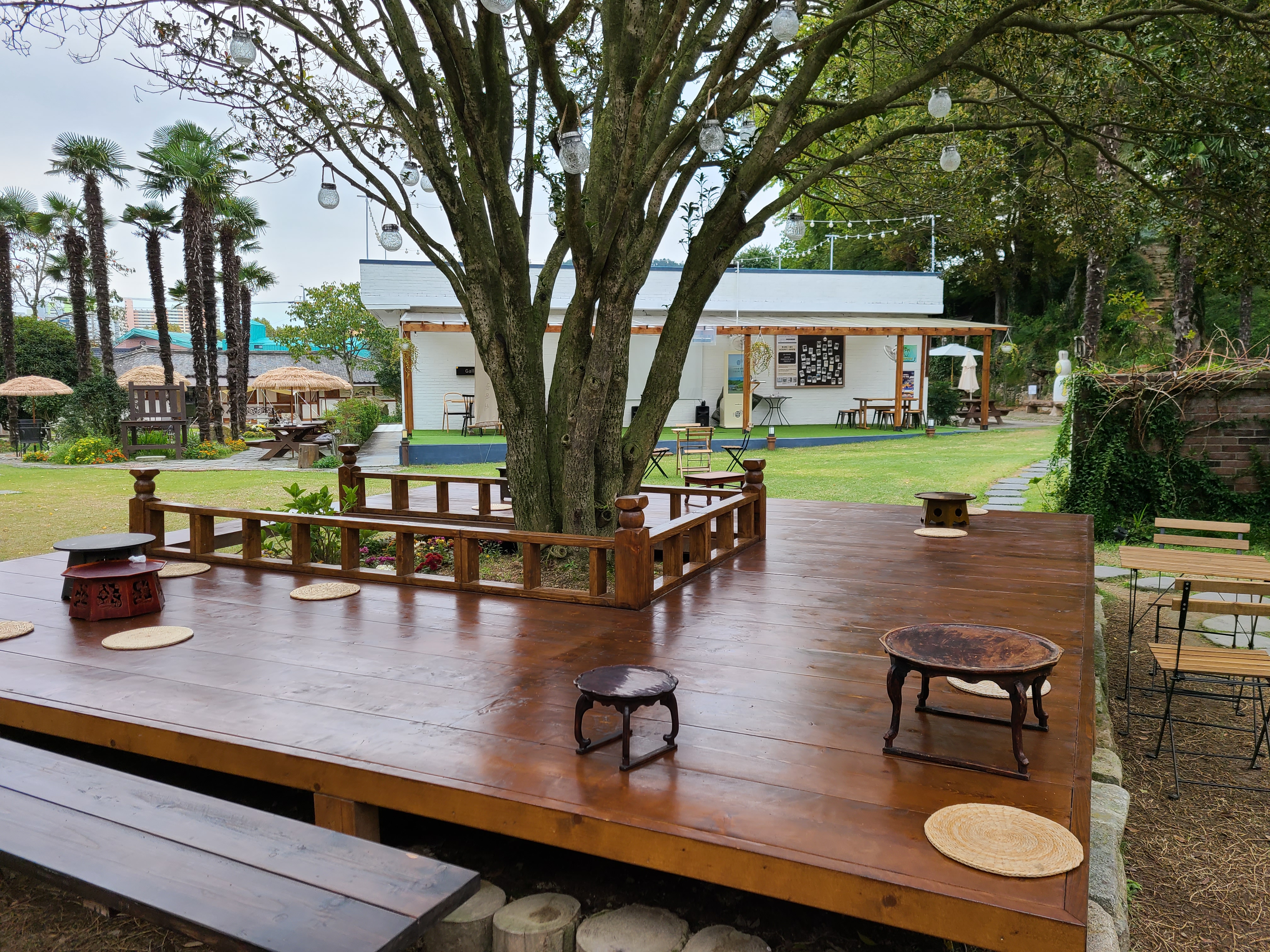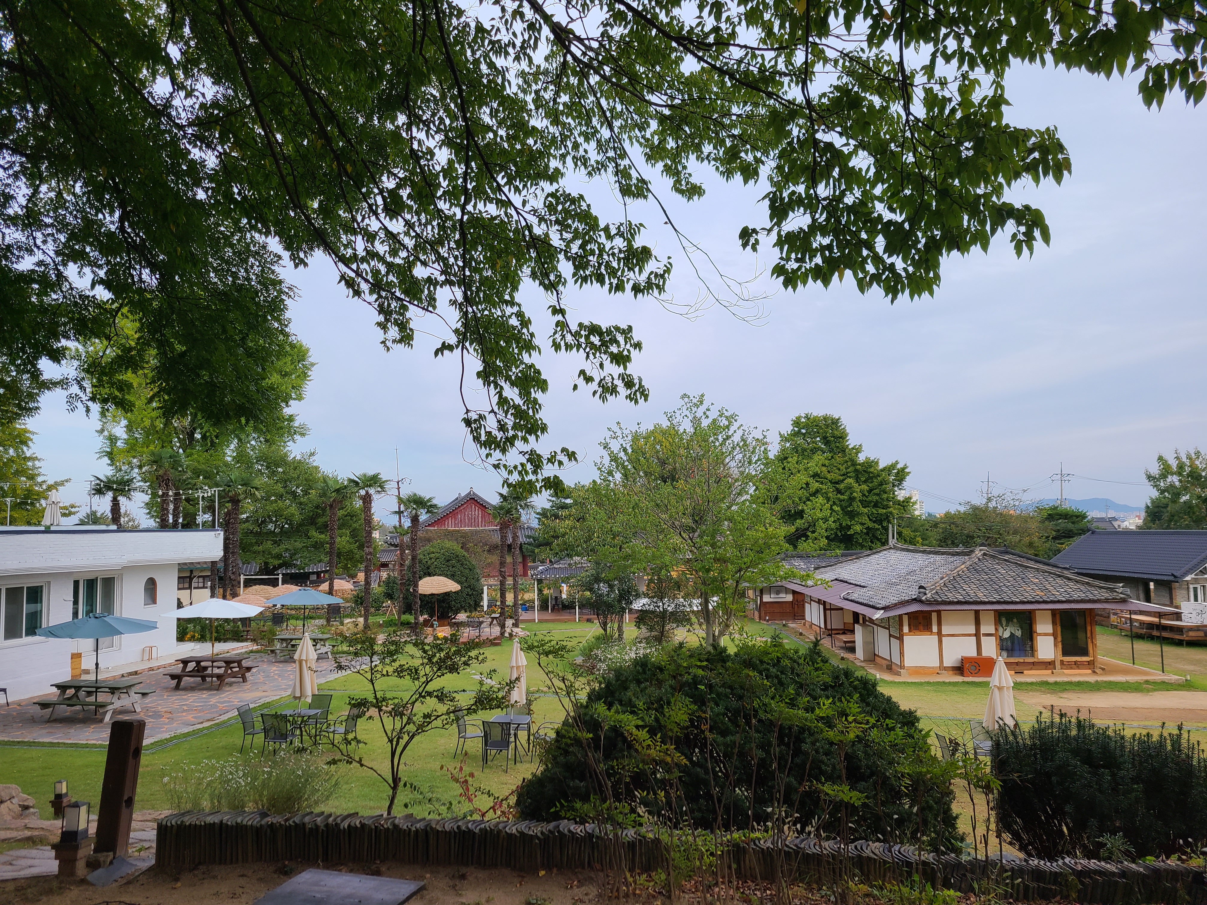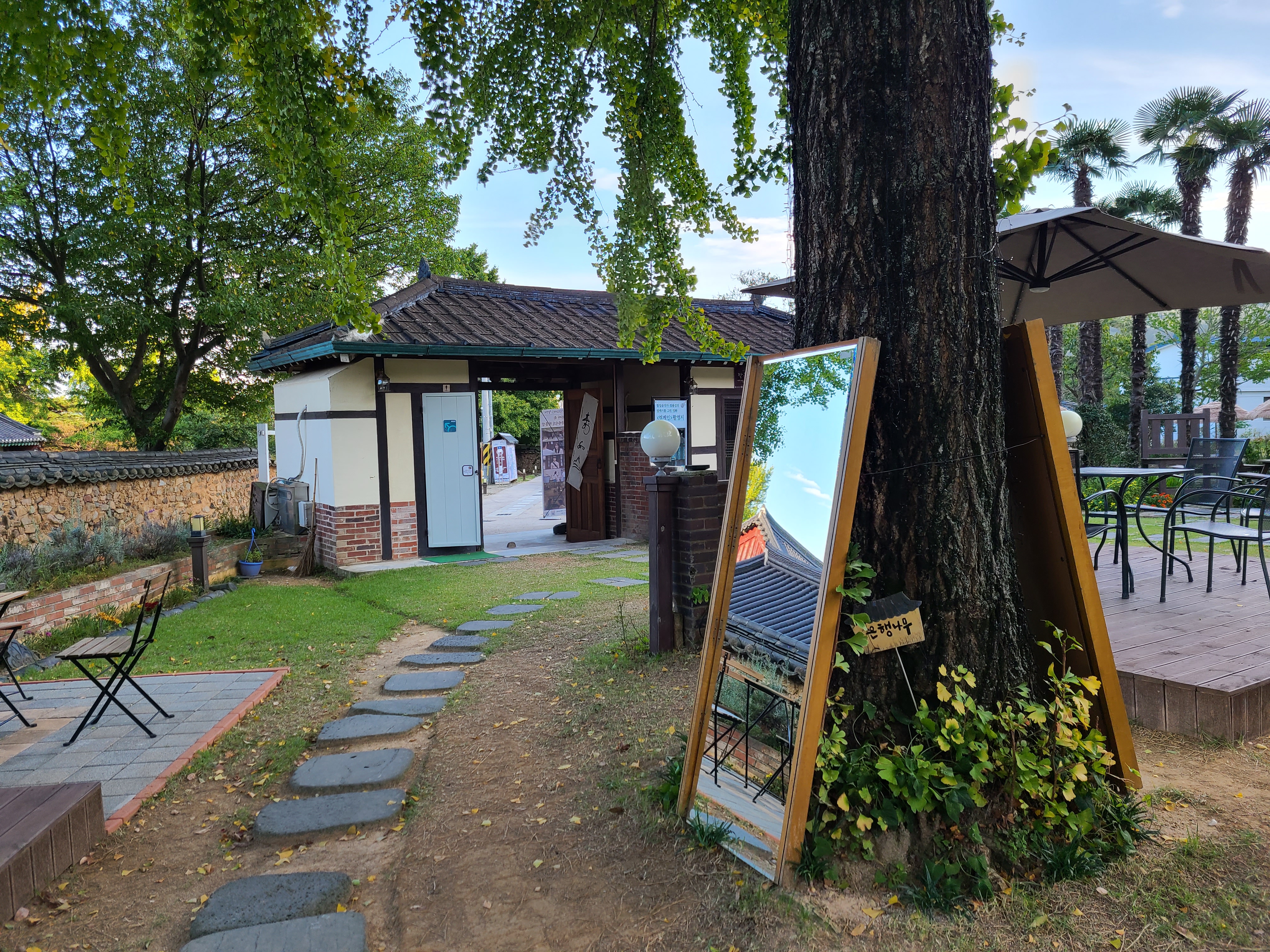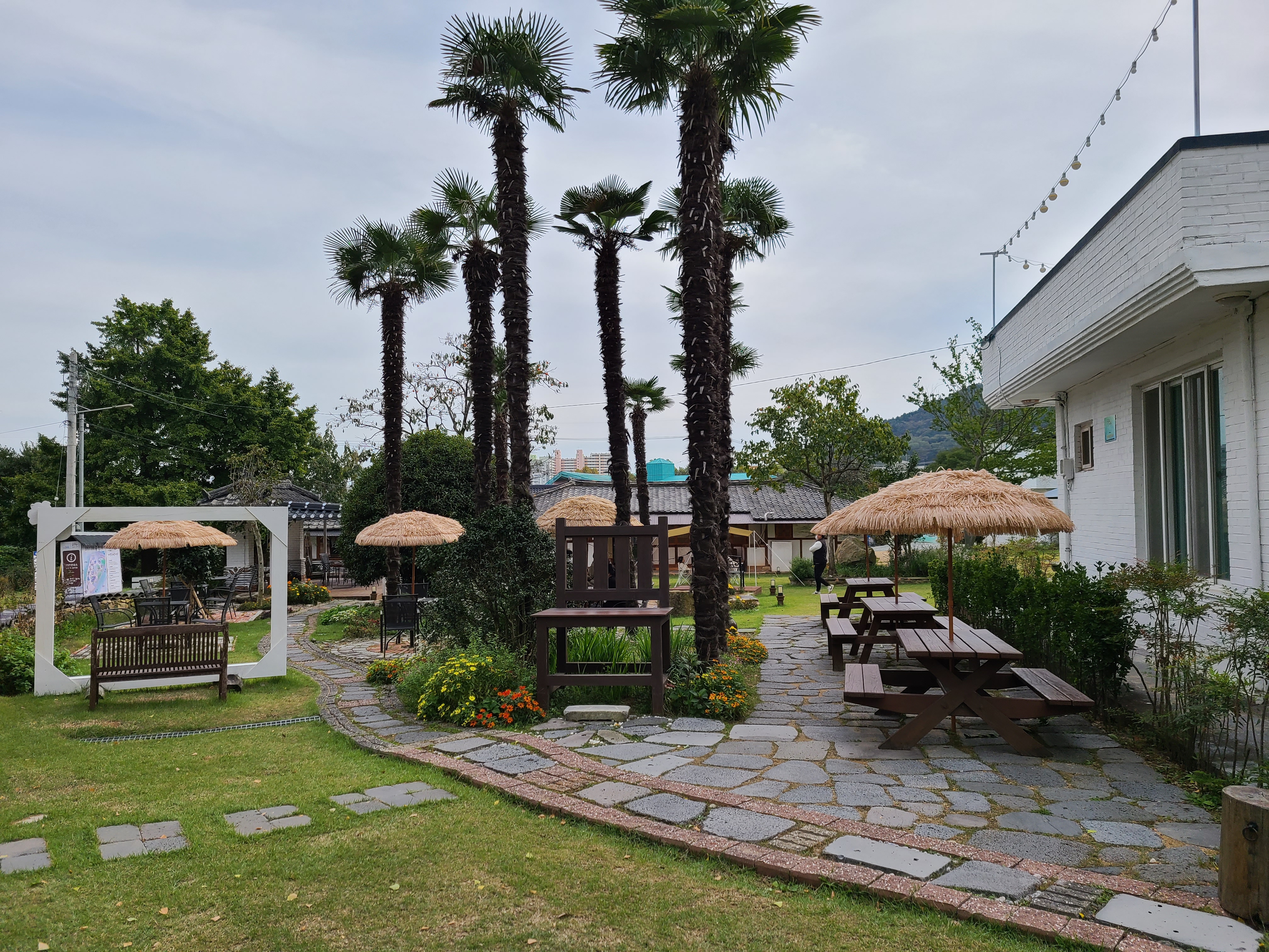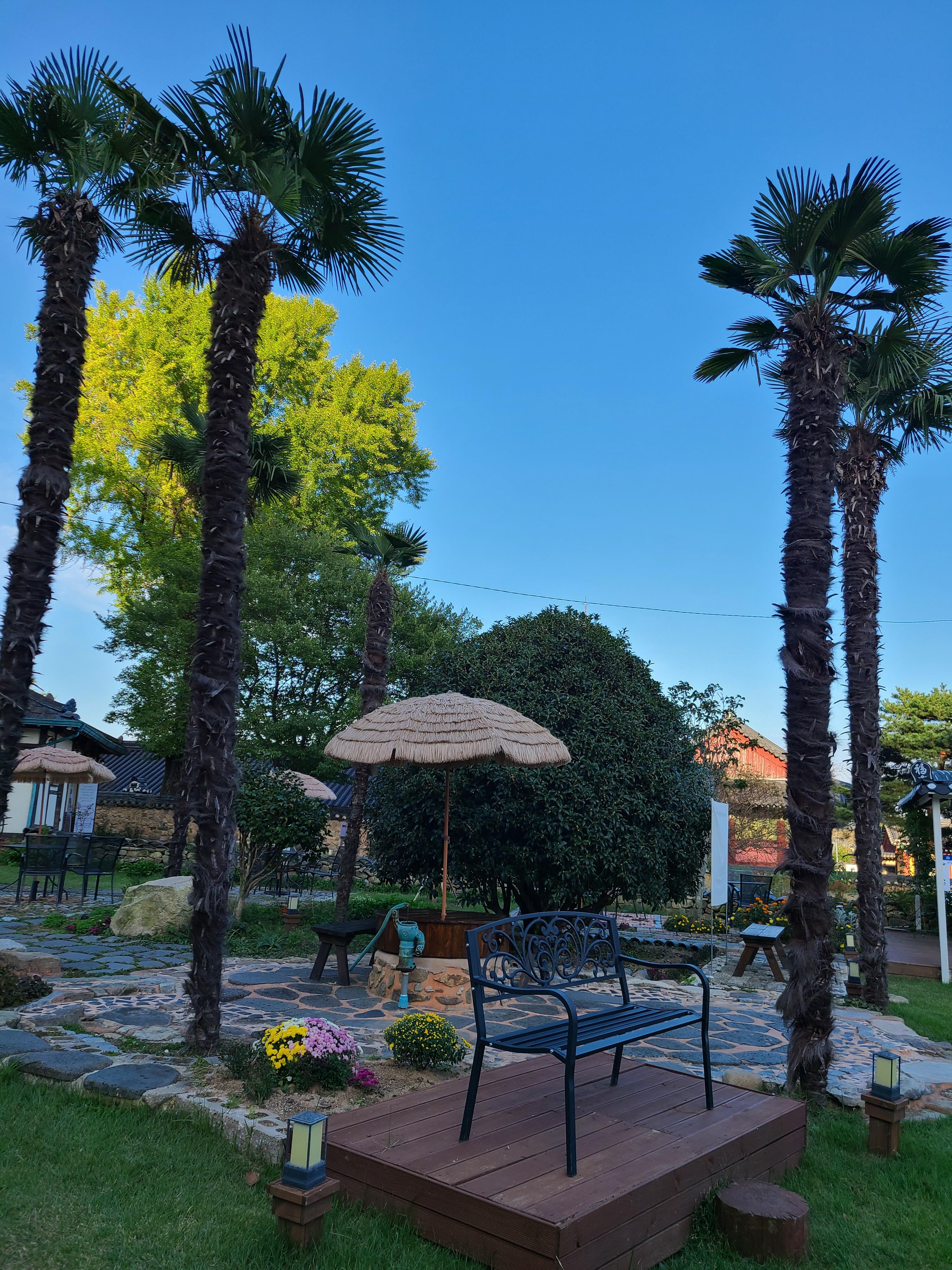 야자수 쉼터가 있는 왼쪽 건물이 대문채이다.