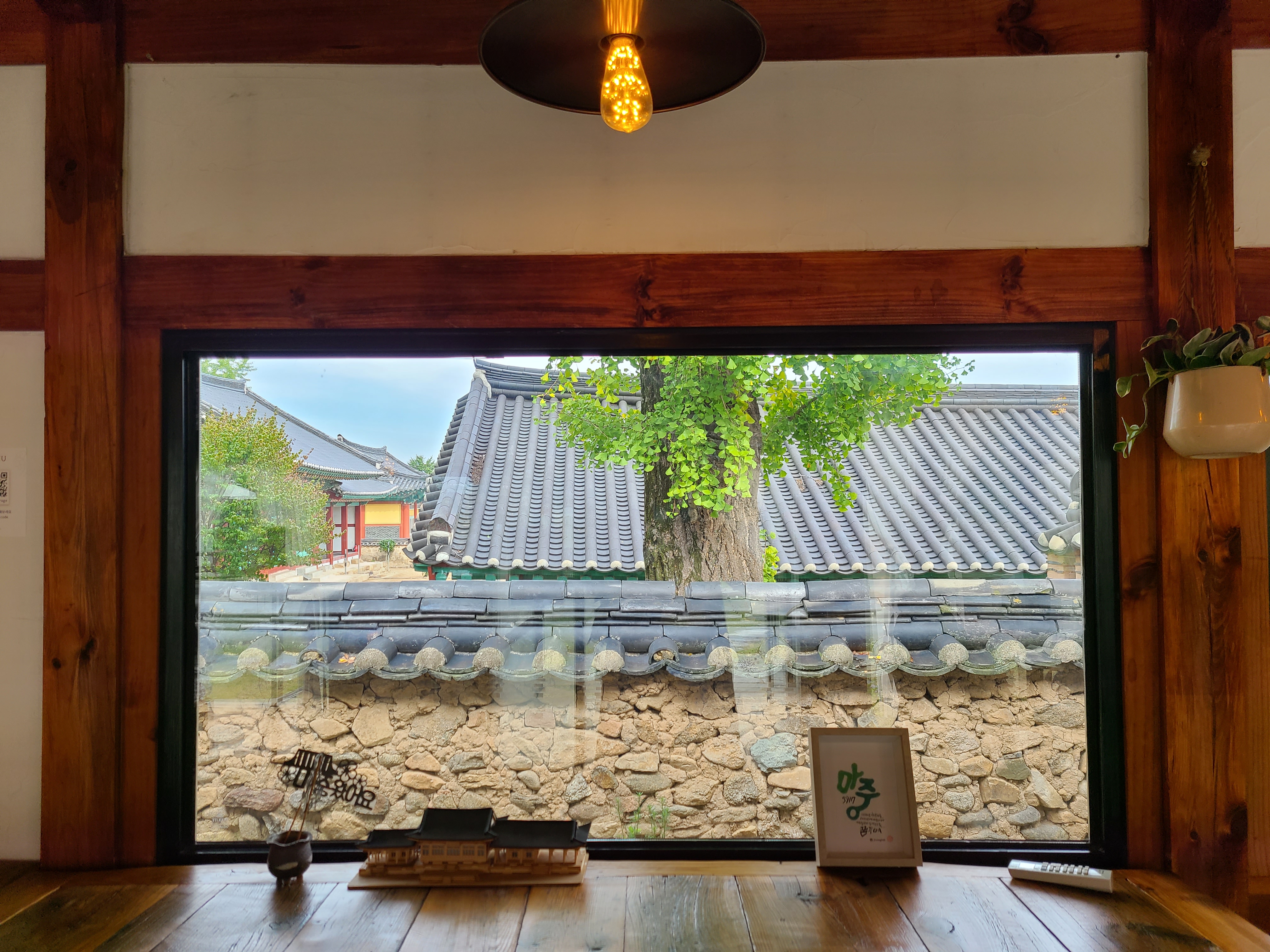 카페 내부에는 창가를 향해 앉을 수 있는 자리도 마련되어 있는데 창을 통해 나주향교가 눈에 들어온다.