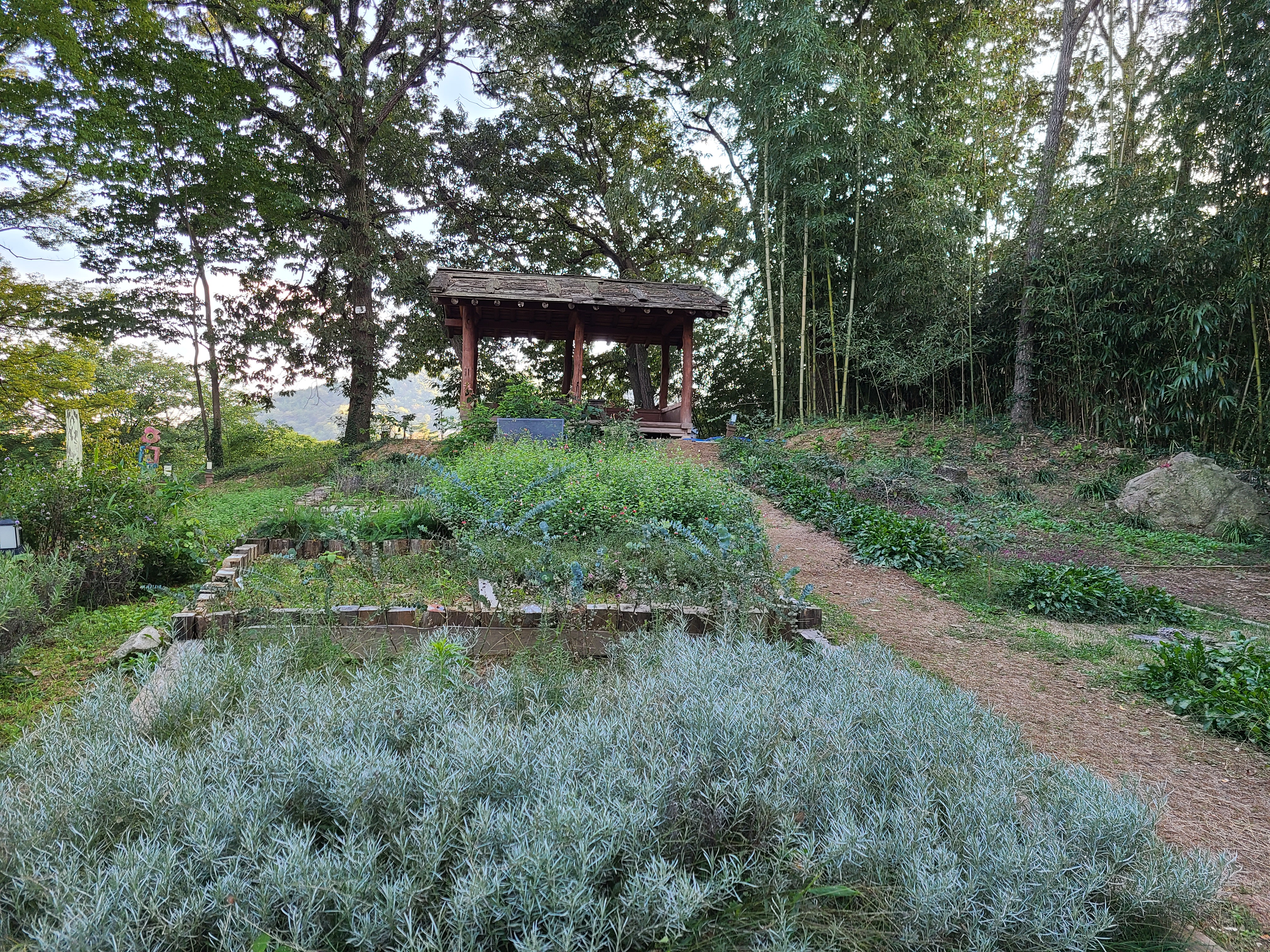 목서원에서 왼쪽 방향으로 언덕을 올라가면 허브정원과 대나무 숲이 보인다.