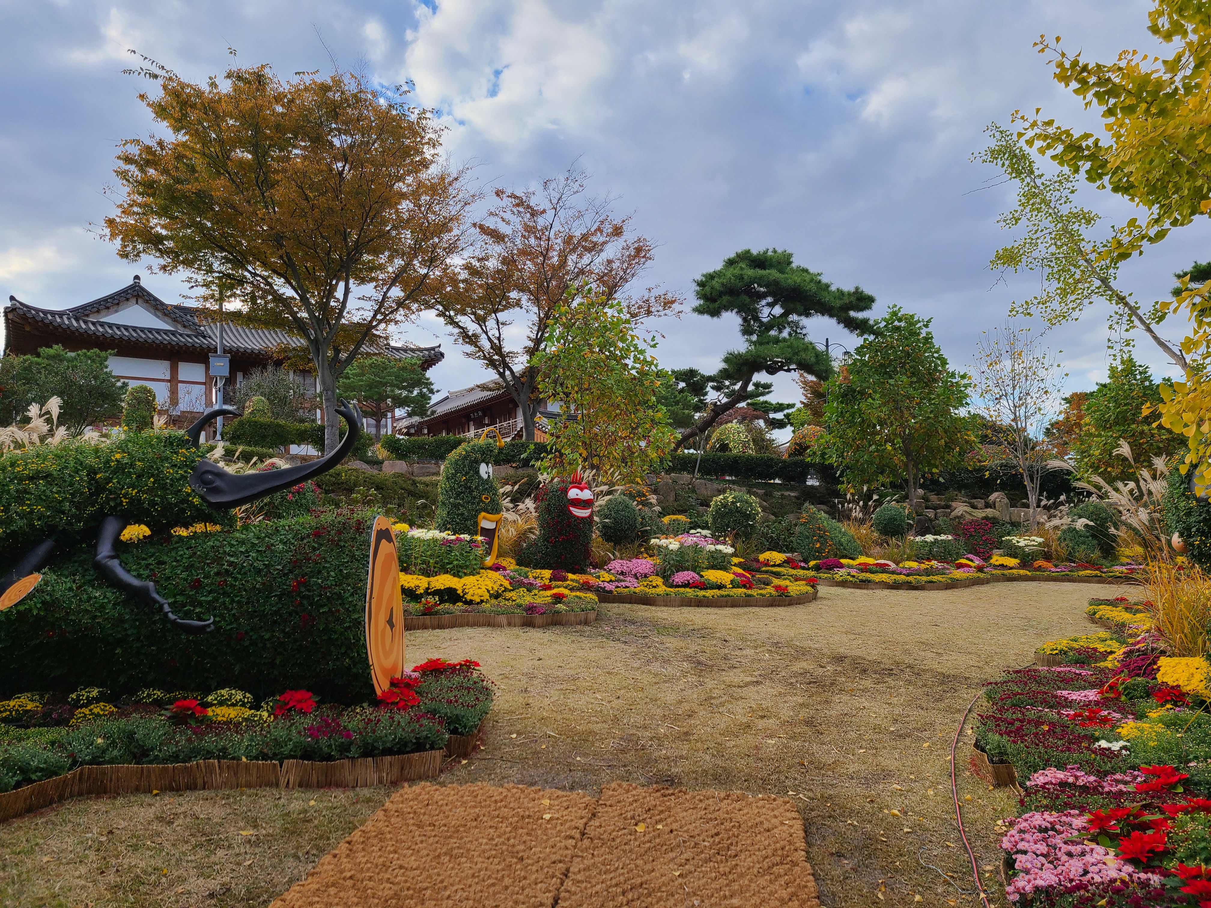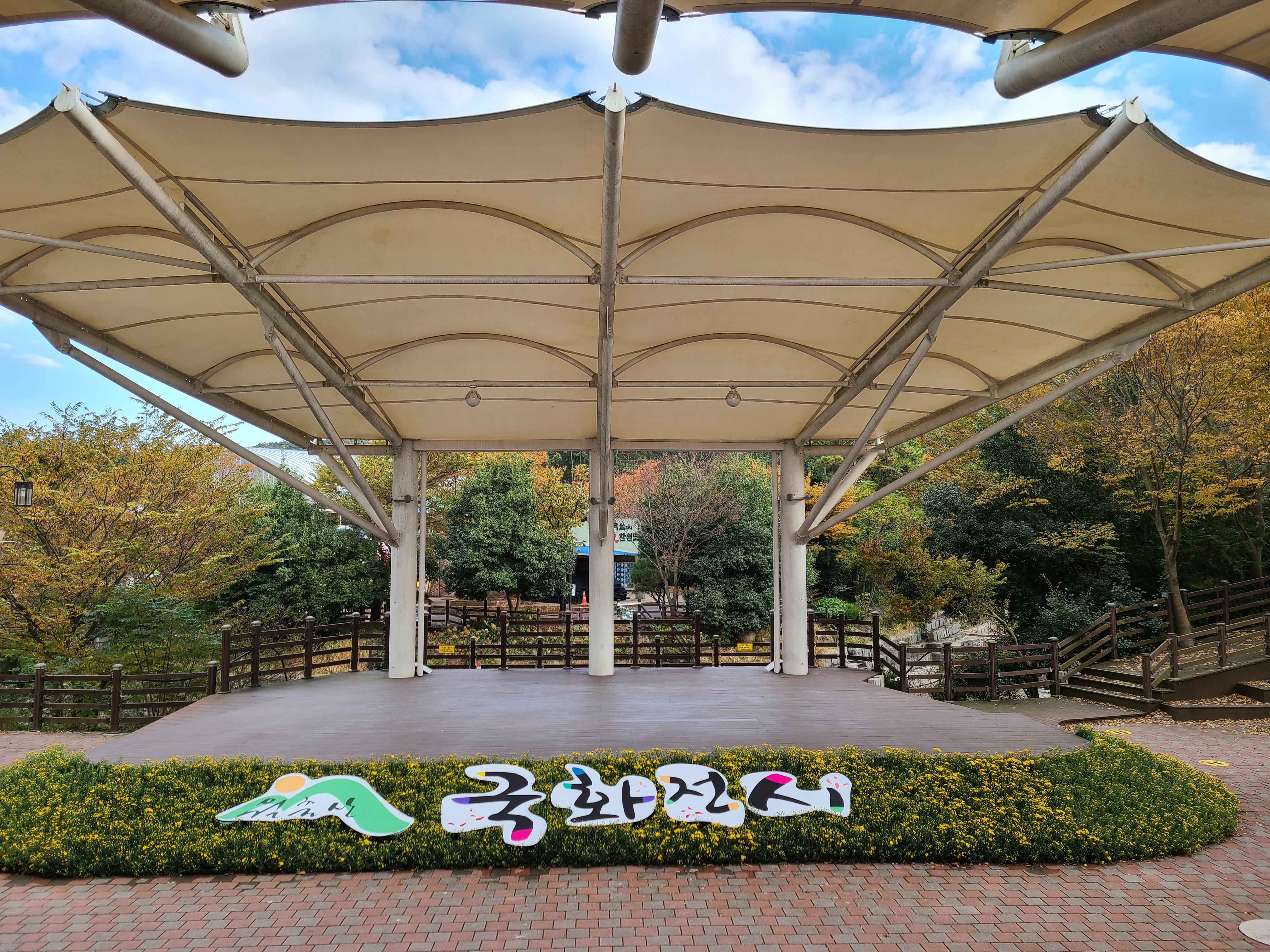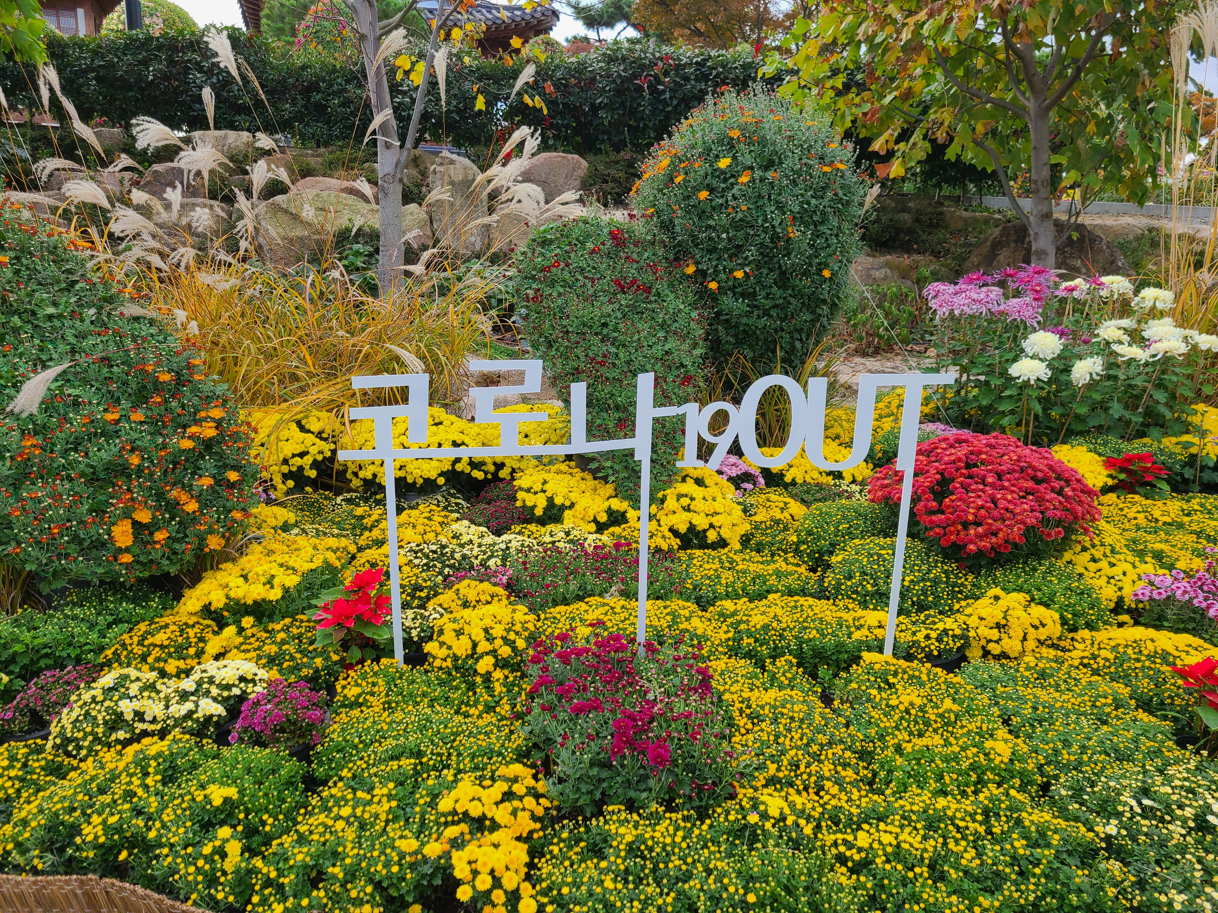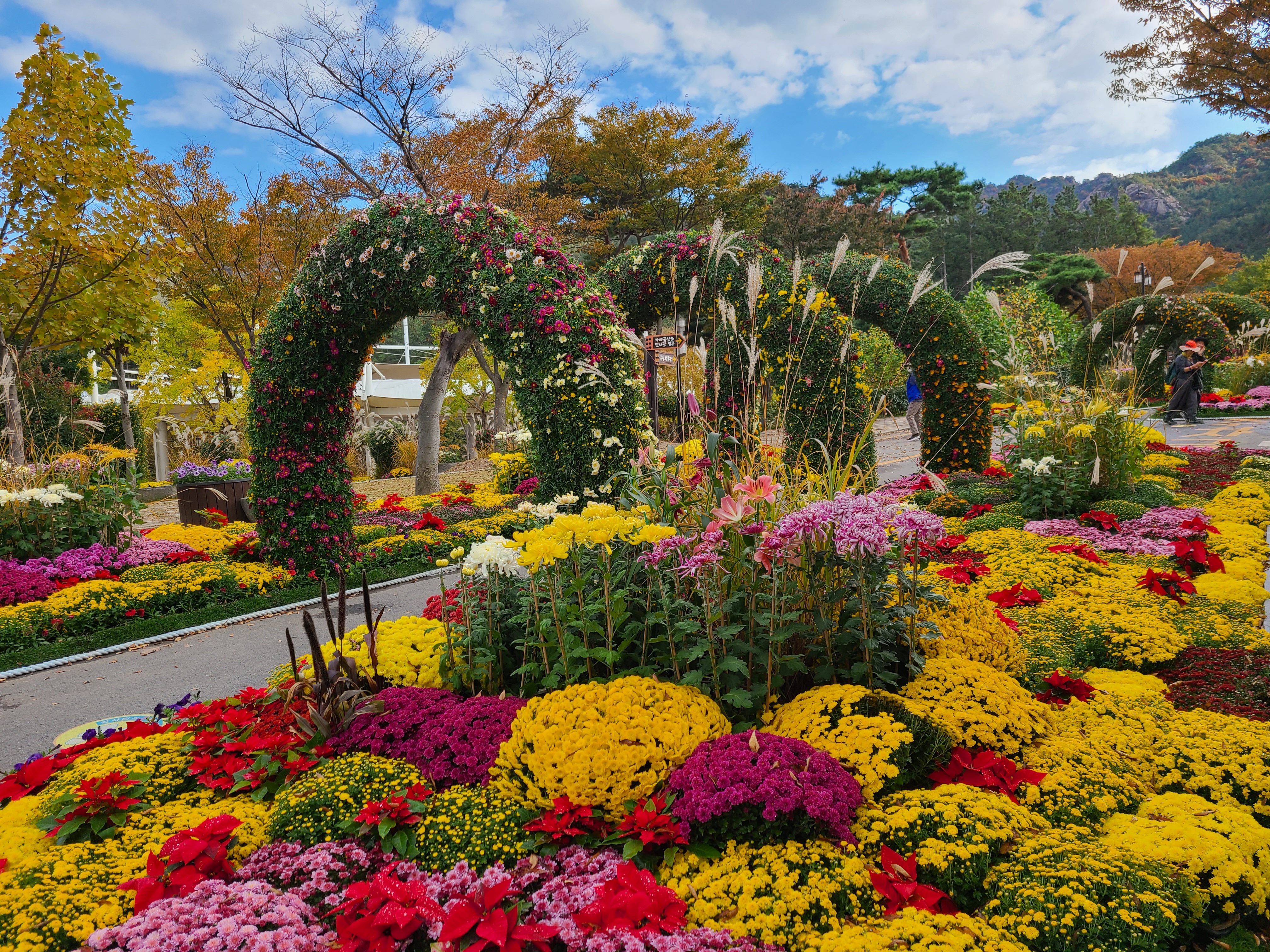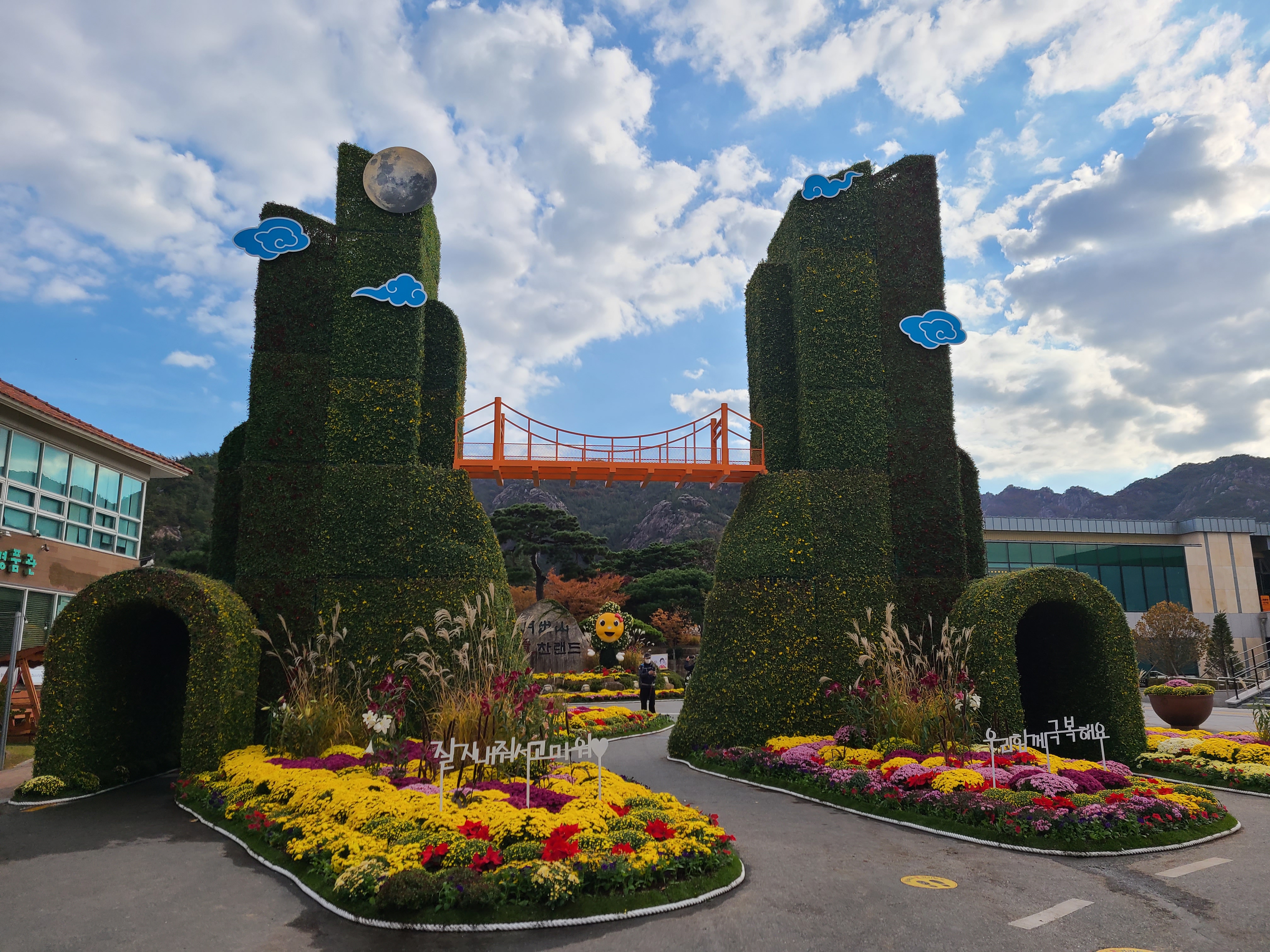 며칠 전 준비하는 모습을 보았는데 다시 찾은 기찬 랜드에는 국화꽃이 활짝 피어있었고 단풍도 하나둘 예쁘게 물들고 있었다.