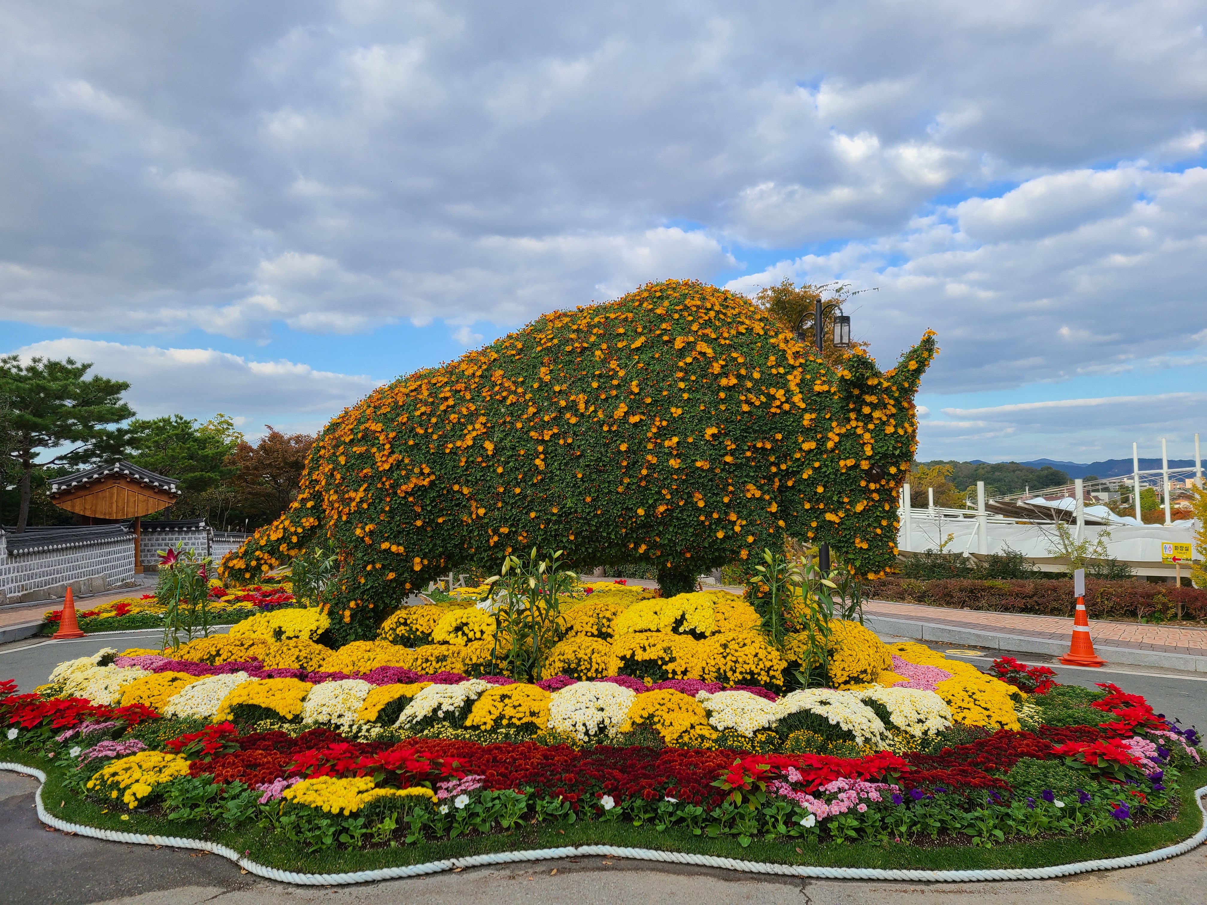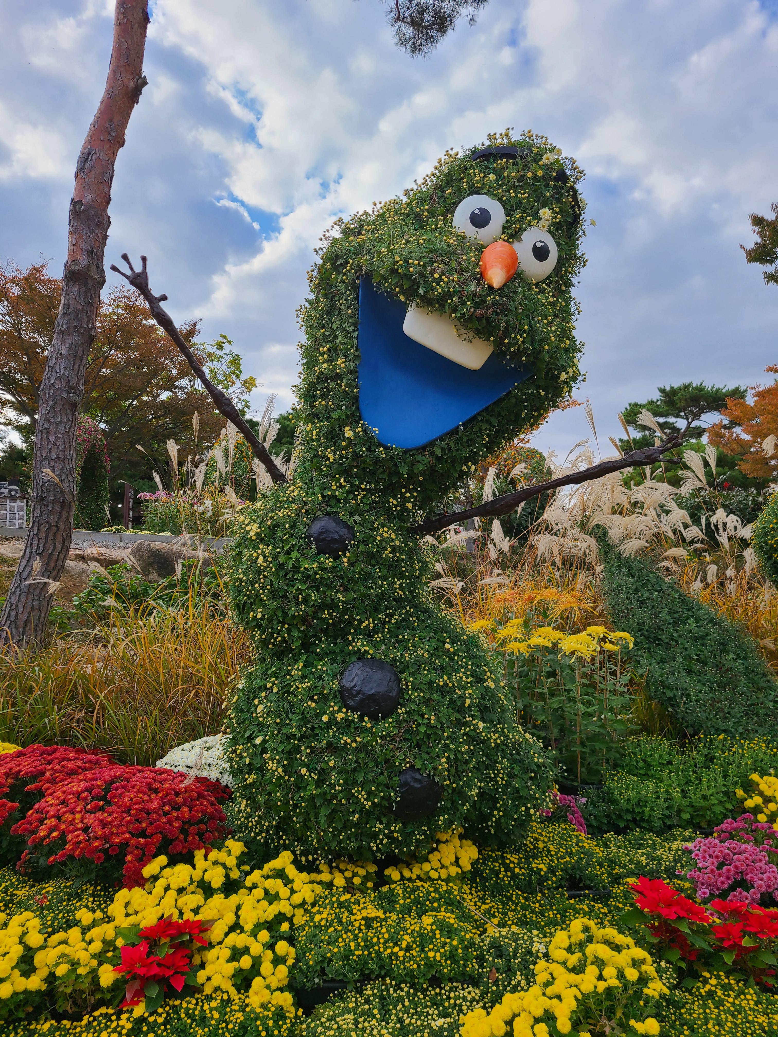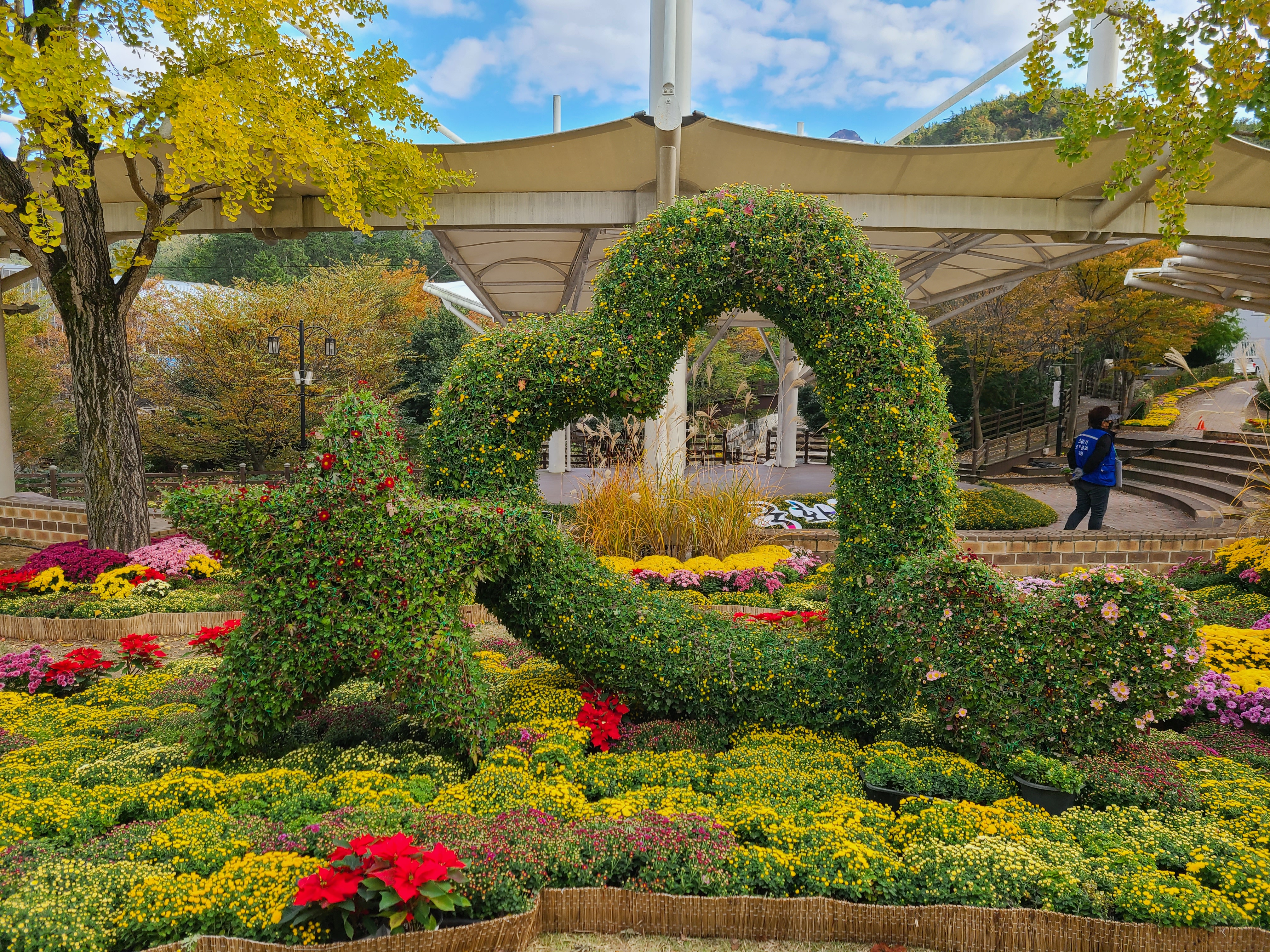 기찬 랜드에 도착하니 많은 사람들이 국화 화분으로 기찬 랜드에 조형물을 만들고 있는 모습이 보였다.