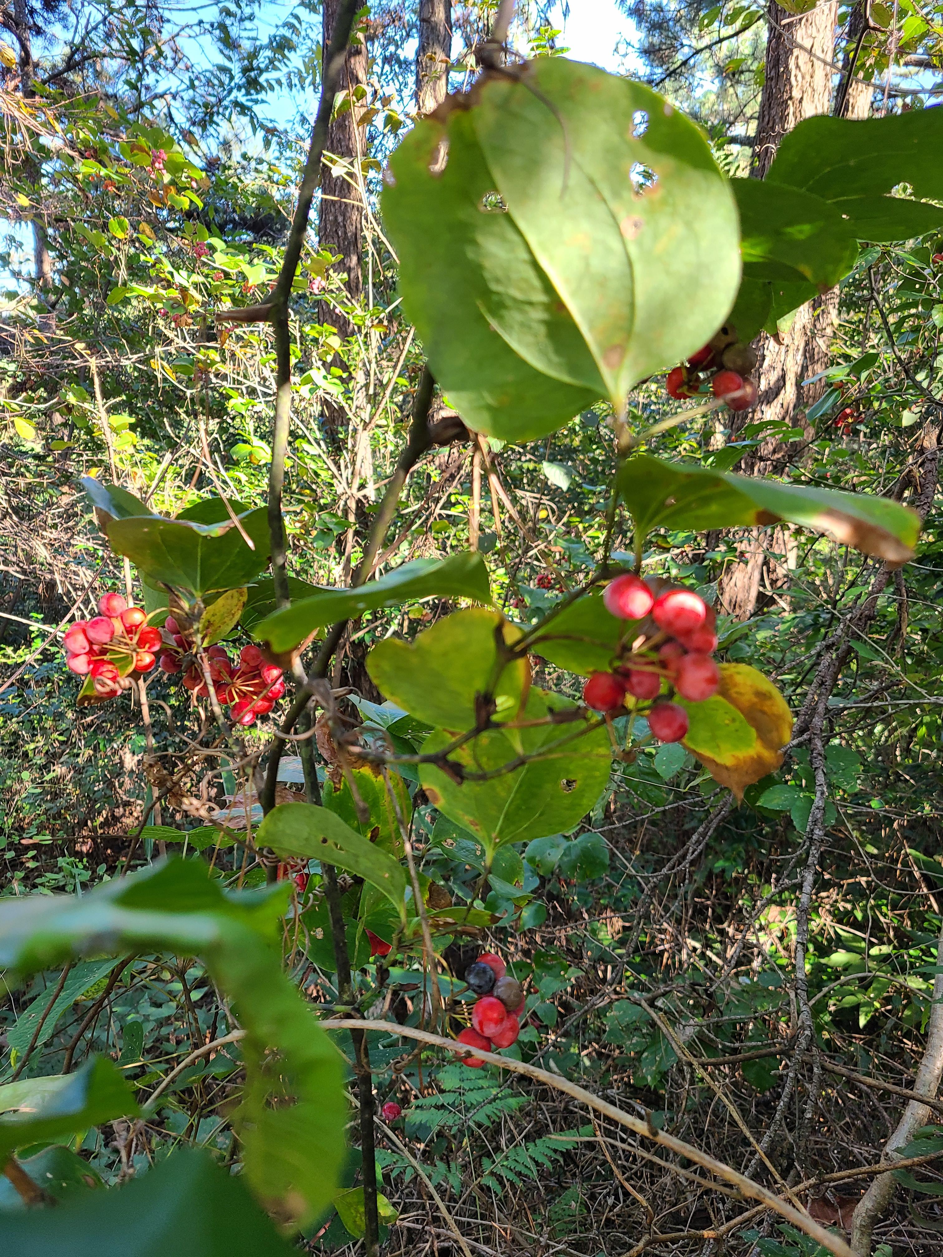 명감나무 열매가 빨갛게 익었다. 망개떡을 만들어 명감나무잎으로 감싸주는데 명감나무잎이 방부 작용을 하기 때문이라고 한다.