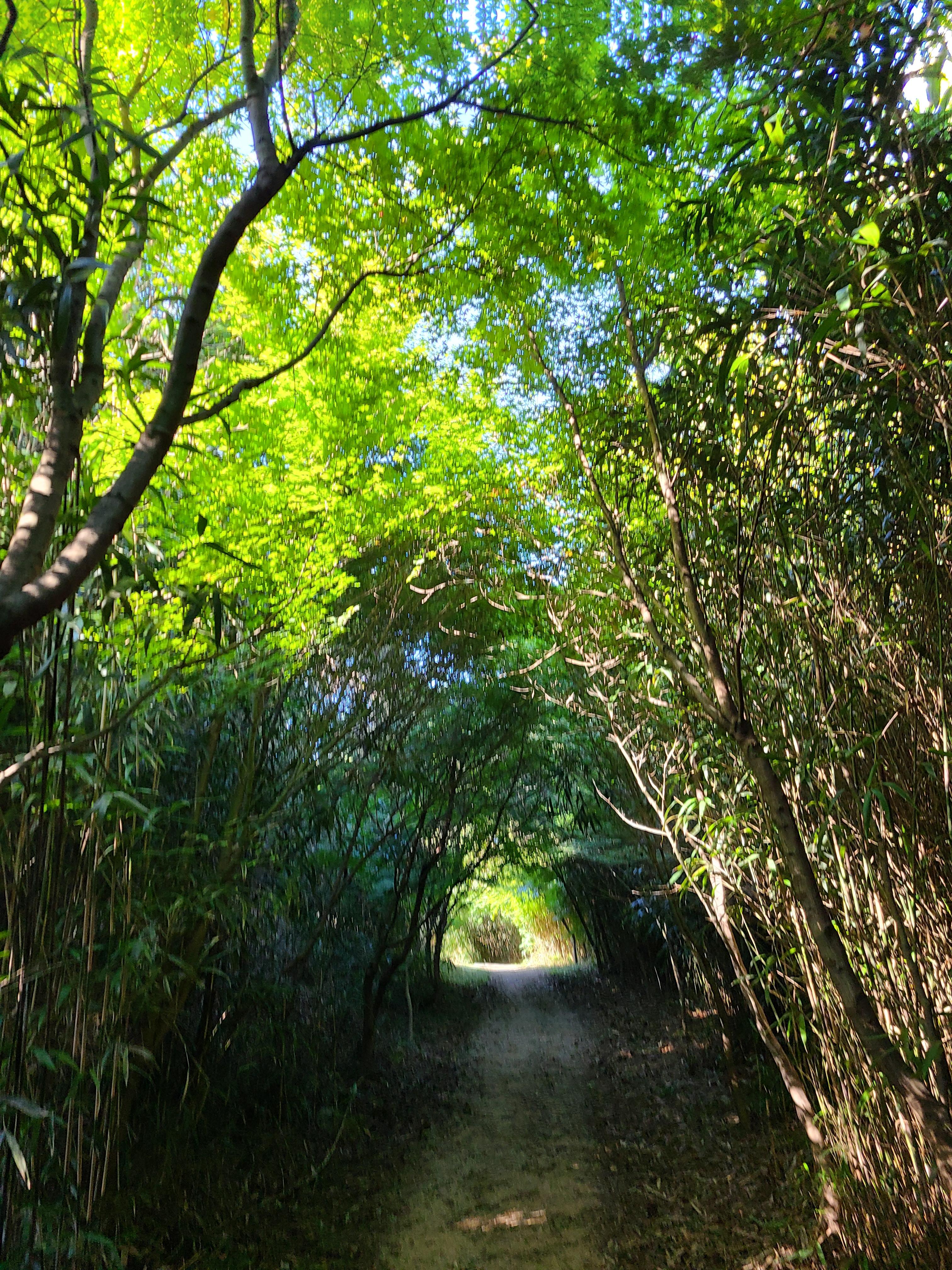아기단풍나무길을 지나니 대나무터널이 이어진다. 중간에 조금 끊어졌다 이어지는 대나무 숲 터널은 한낮인데도 어둡다.