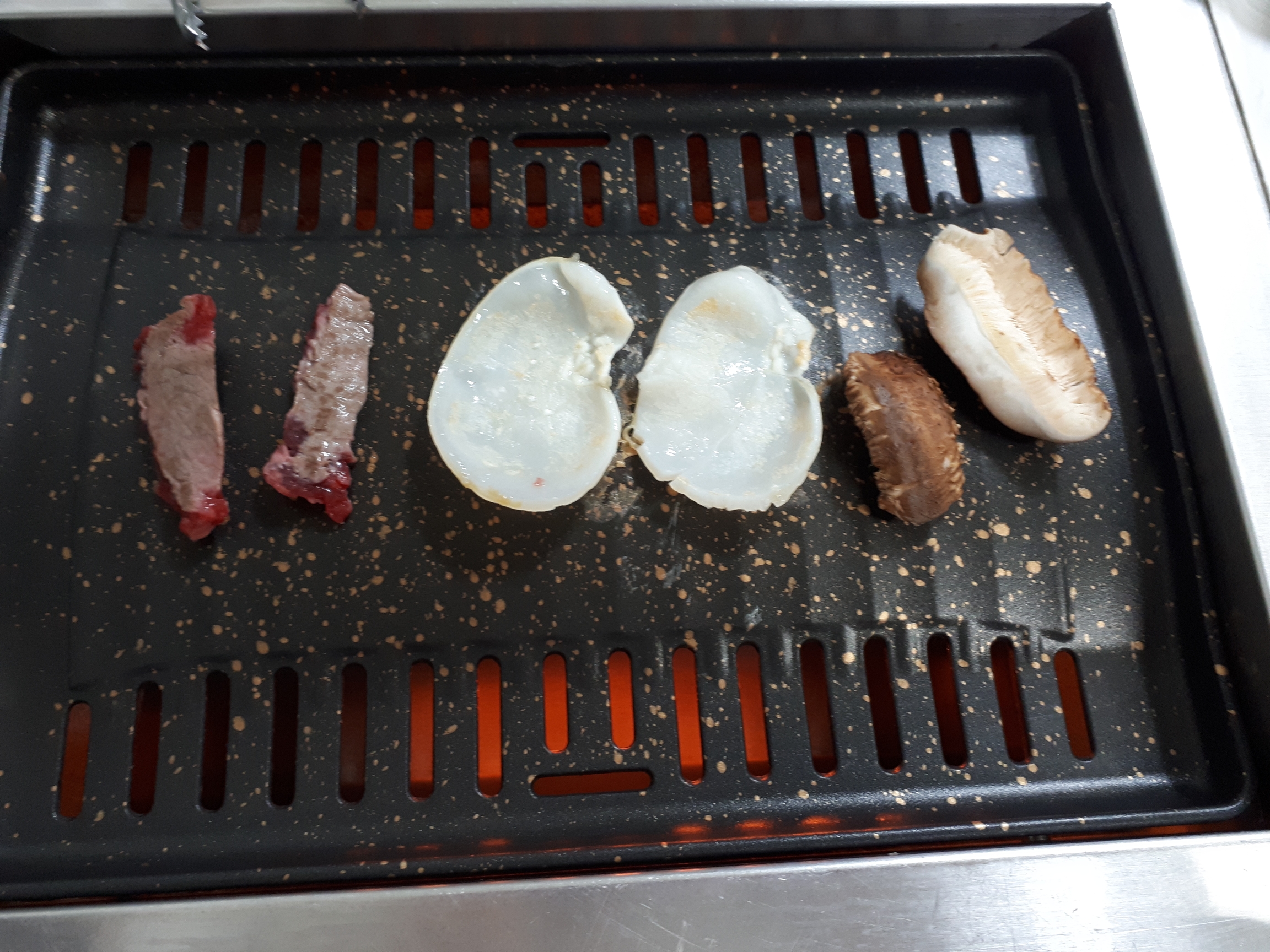 3년 전 친구와 정남진 장흥 토요시장에서 삼합을 구워서 먹었는데, 한우와 키조개 관자 그리고 표고버섯을 함께 구워 먹는 맛이 너무 환상적이다. 한우삼합을 즐기려면 한우판매장에서 고기를 먼저 구입해서 주변 식당으로 가지고 간다. 식당에서는 표고버섯과 키조개 관자를 포함한 상차림을 해주는데 인당 상차림 비용을 지불하면 된다.