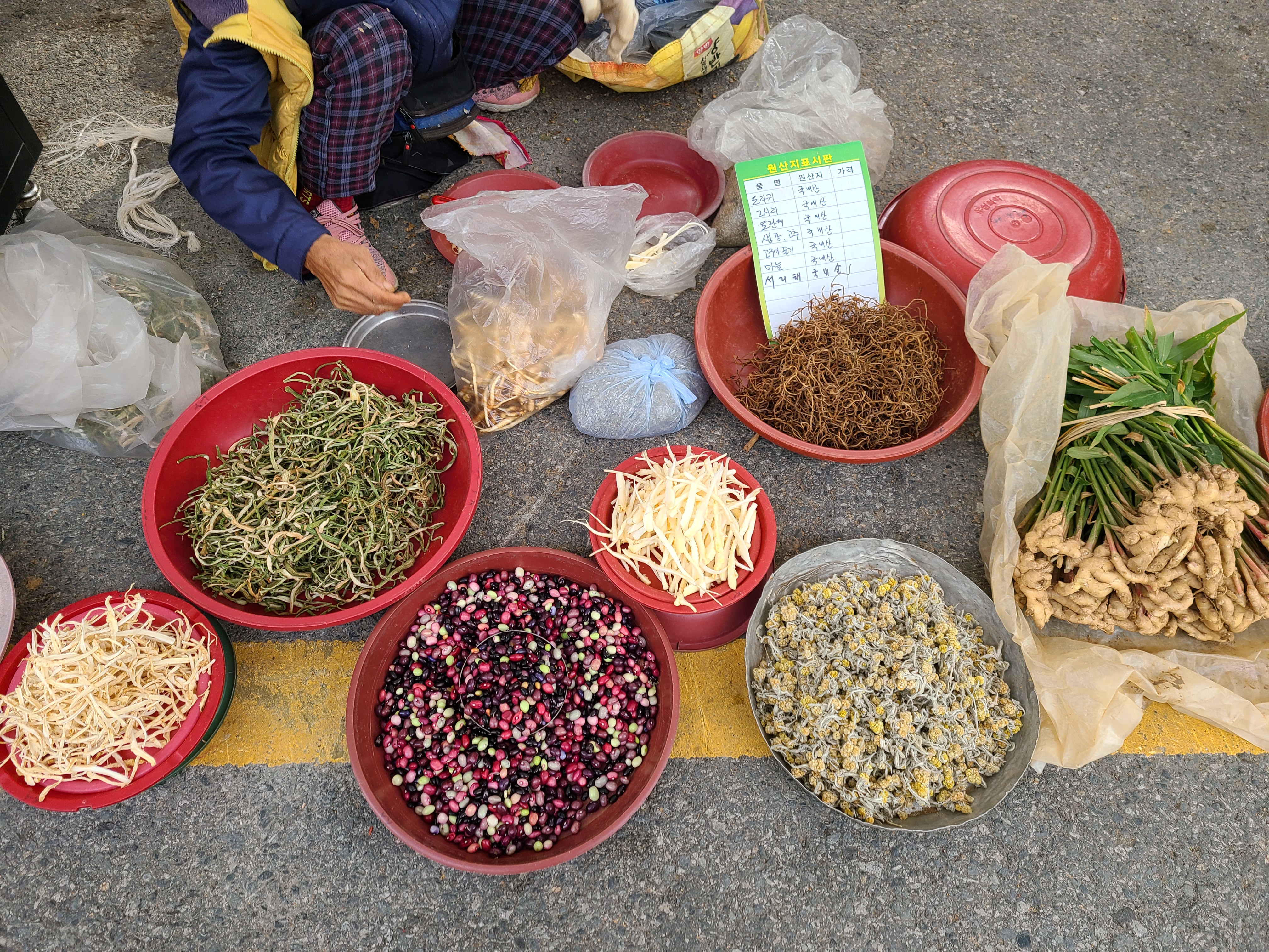 할머니들이 직접 키운 야채를 갖고 나와 판매하고 있는 골목이다. 요즘 쪽파 가격이 엄청 비싼데 이곳 쪽파는 단도 크고 싱싱해서 남편의 말류에도 아랑곳하지 않고 3단이나 샀다. 1단에 8,000 원하는데 동네 마트에 와서 보니 단의 크기가 1/3도 안 되는 듯한데 1단에 4,800원에 팔고 있었다.