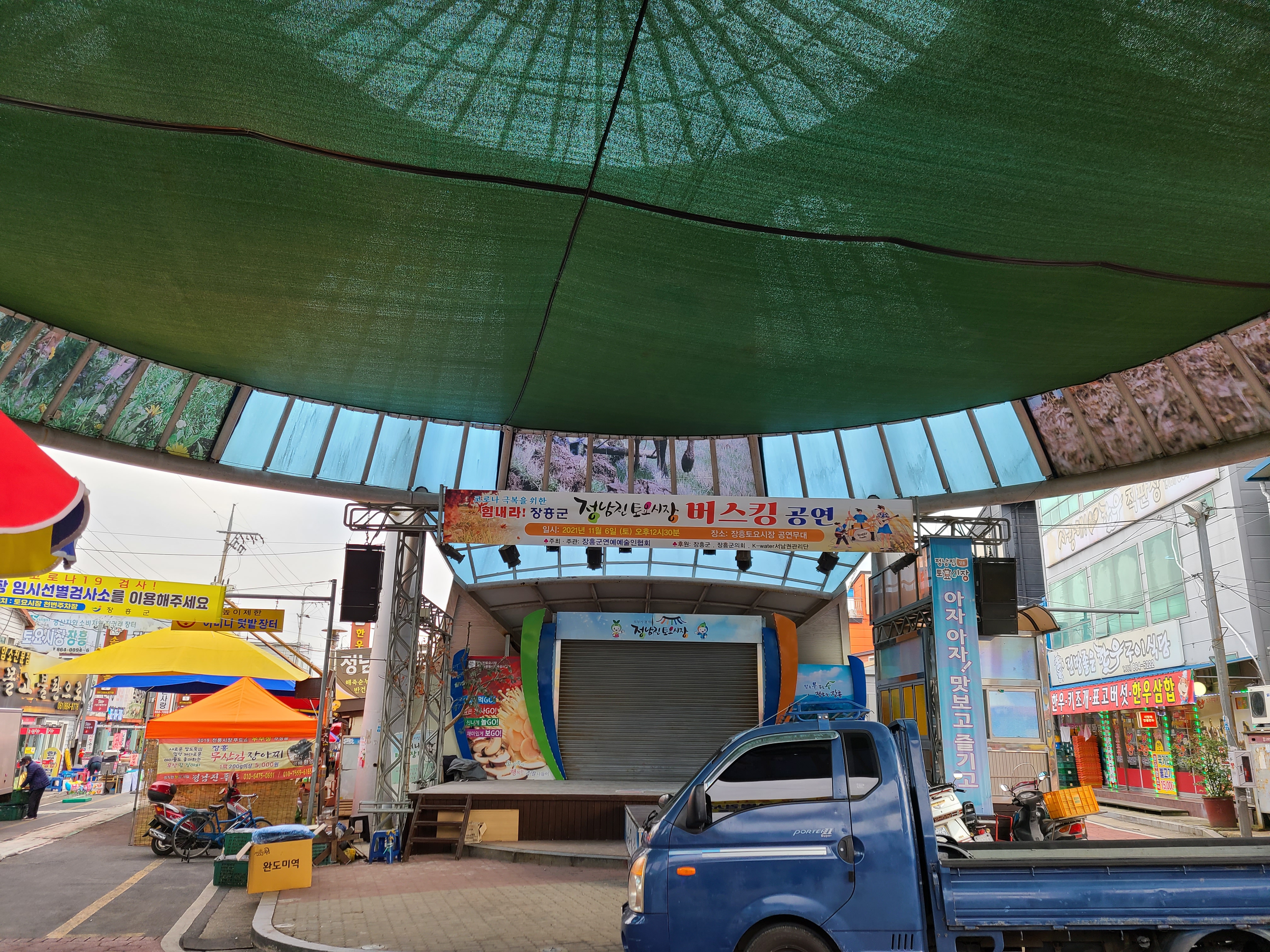 공연장 왼쪽으로 보이는 포장마차가 튀김집인데 눈여겨보아야 하는 곳이다.(튀김 맛집이었다.)