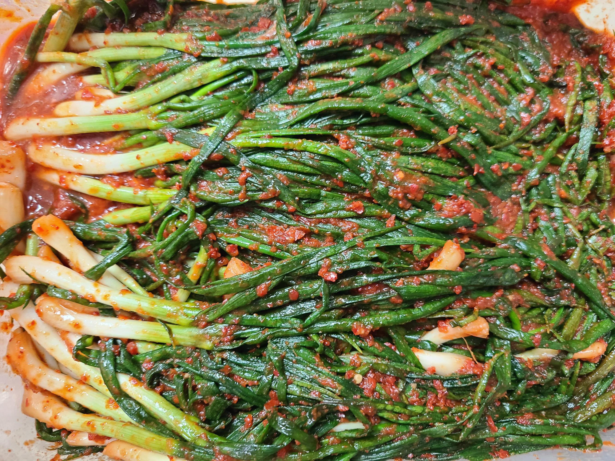집에 돌아와서 제일 먼저 쪽파를 남편에게 다듬게 하고 양념을 준비해서 쪽파김치를 담갔다. 봄에 영암장에서 구입했던 쪽파보다 이번 장흥 토요시장에서 구입한 쪽파가 크기도 적당하고 연했다.