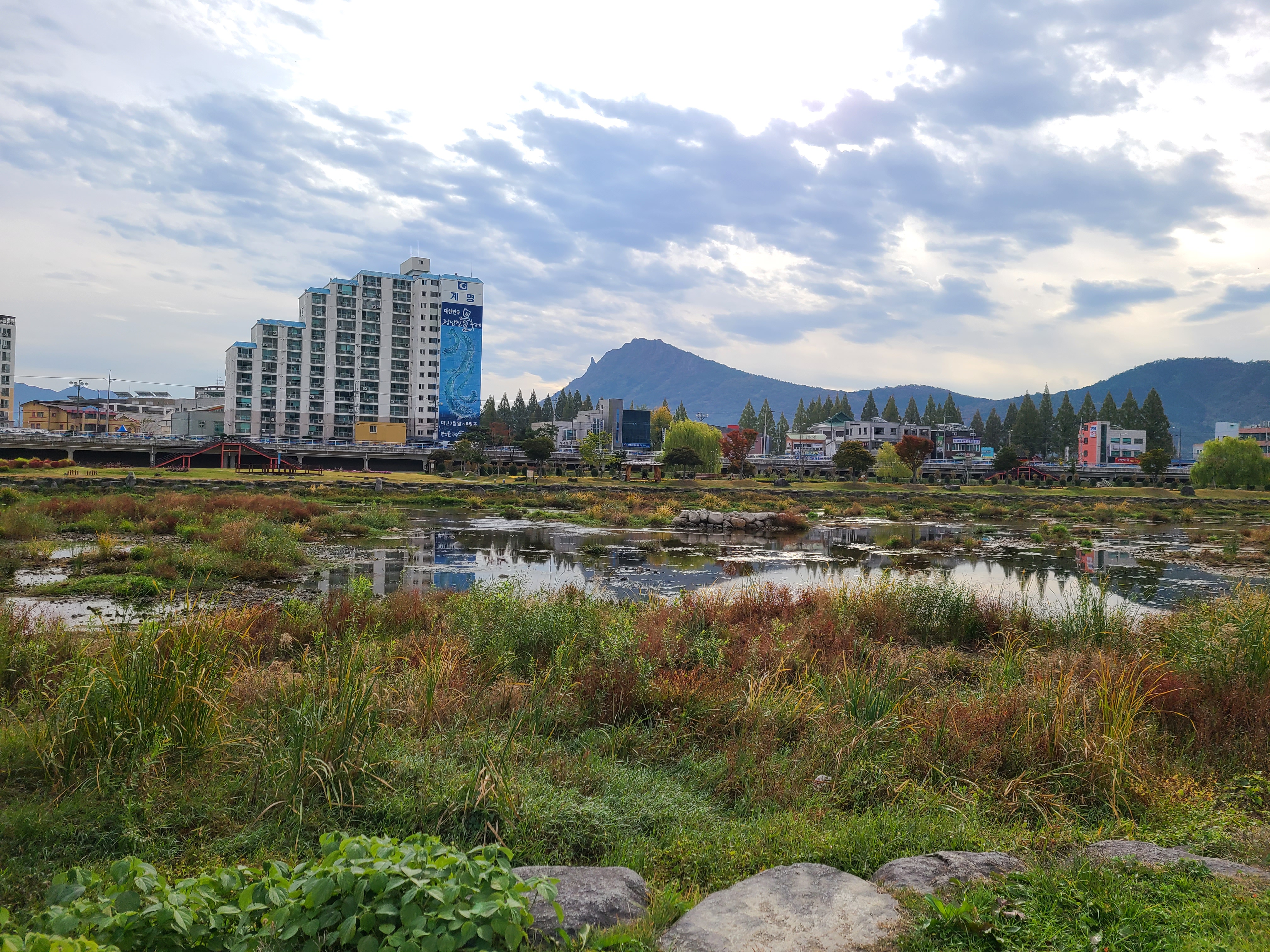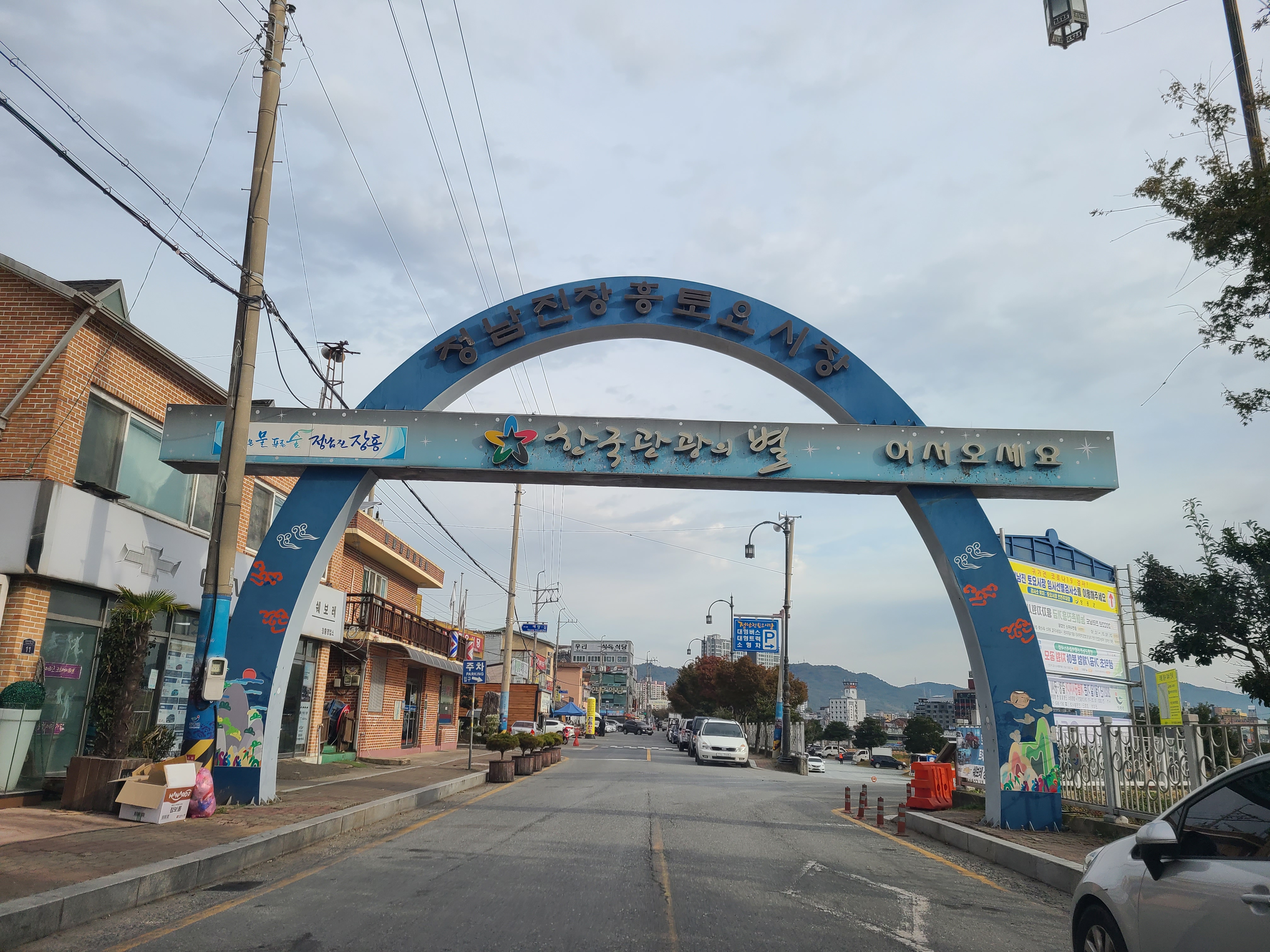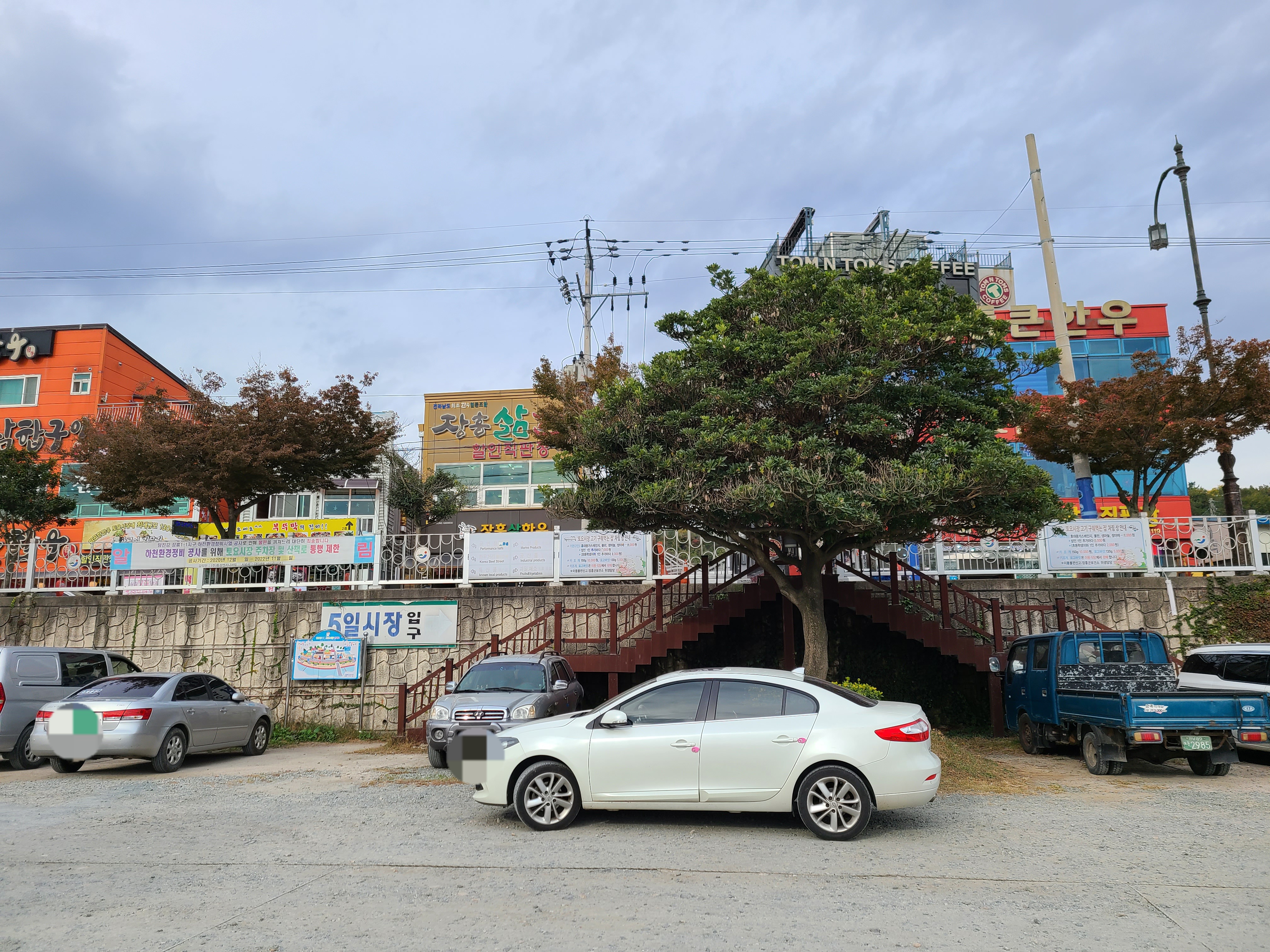 정남진 장흥 토요시장 주차장은 탐진강변에 넓게 자리를 하고 있어 대형버스도 주차할 수 있게 되어있다.