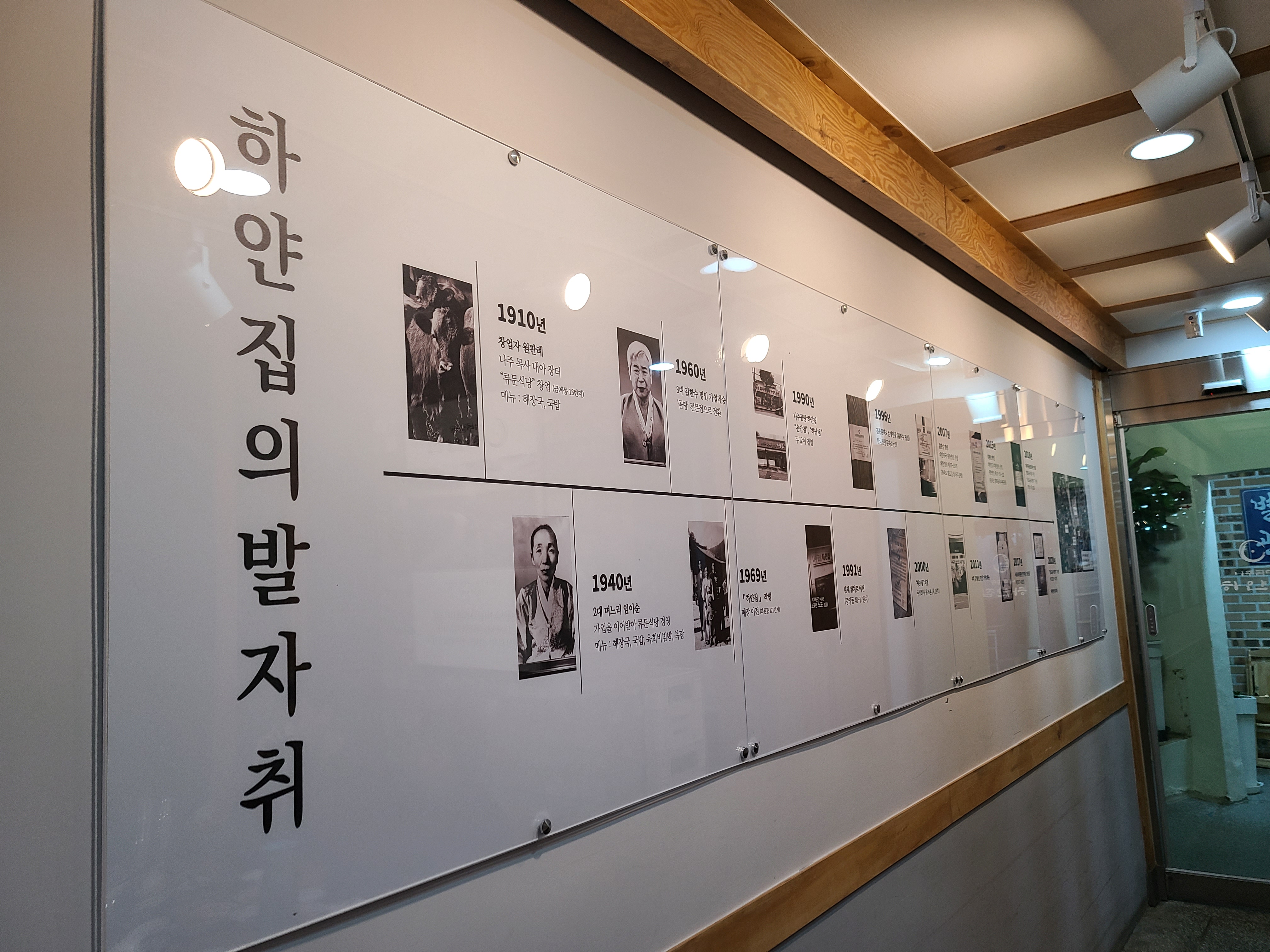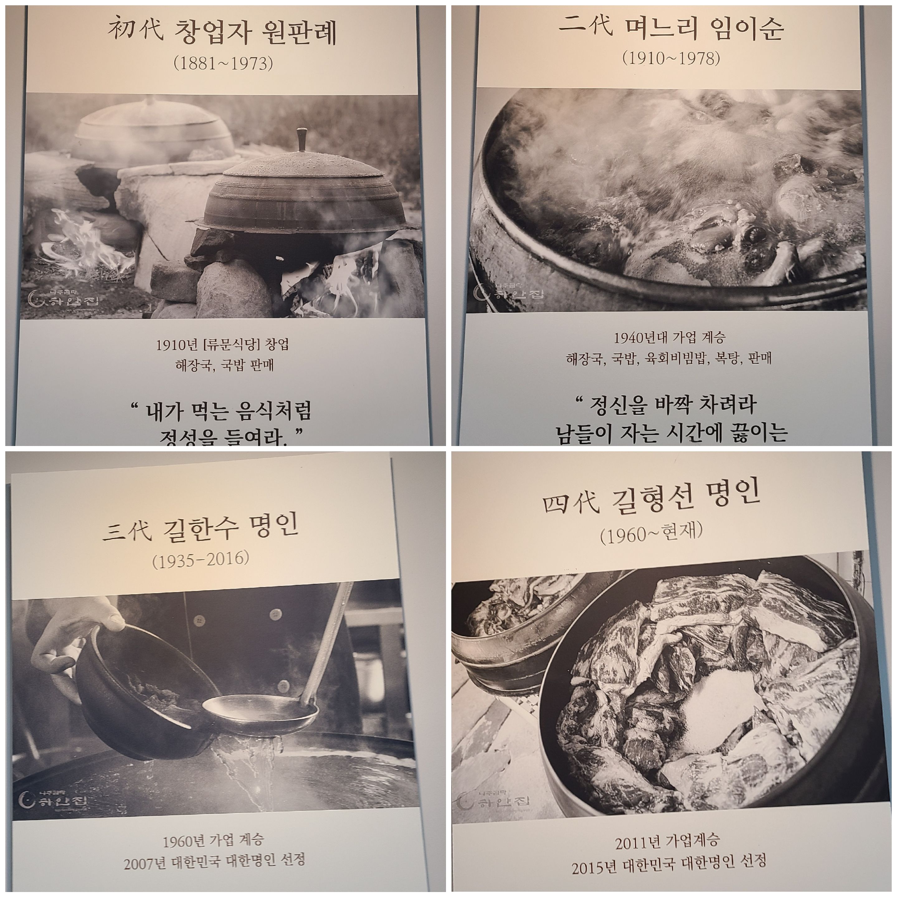하얀 집의 발자취와 대를 이어 식당을 운영했던 분들의 이름과 시기도 전시해 놓았다. 처음 창업한 시기가 1881년이라고 하니 대단한 것 같다. 3,4대를 이어오는 분인 대한명인까지 선정되었다고 한다.