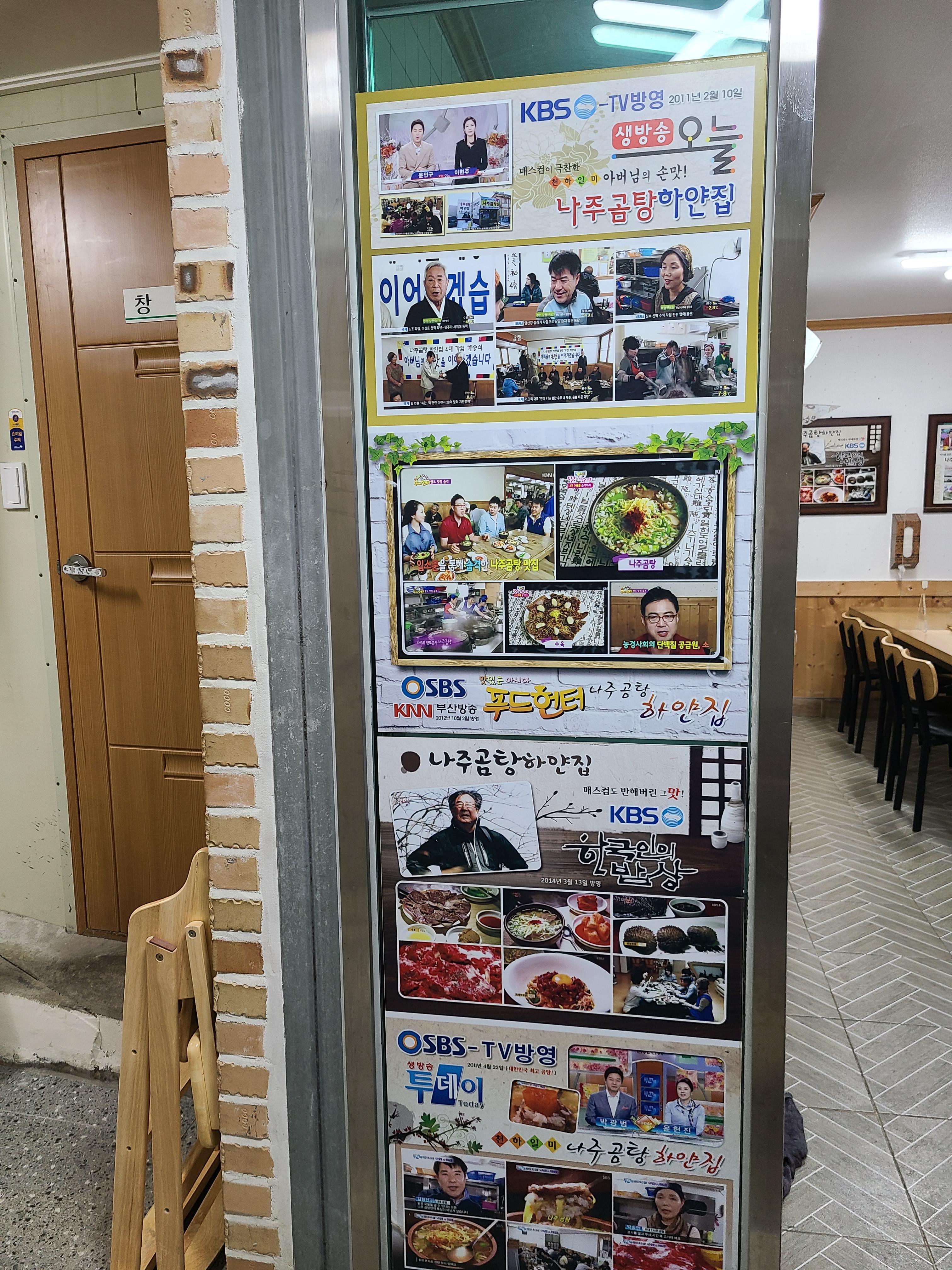 나주곰탕 하얀집은 4대째 이어오는 100년이 넘은 곰탕집이다. 가게 내부에 TV에 방영되었던 프로그램 소개와 하얀 집의 역사를 게시해 놓았다.