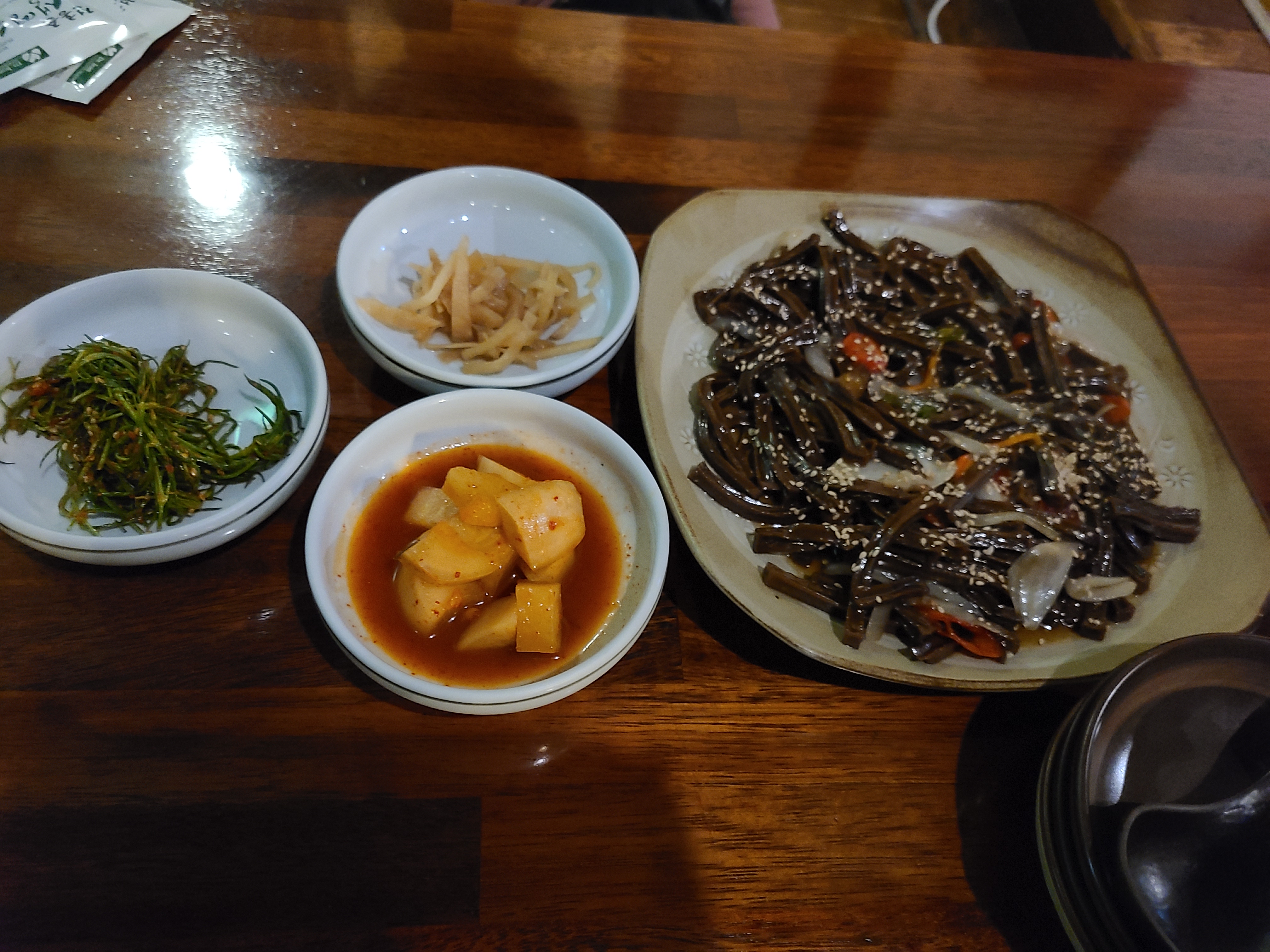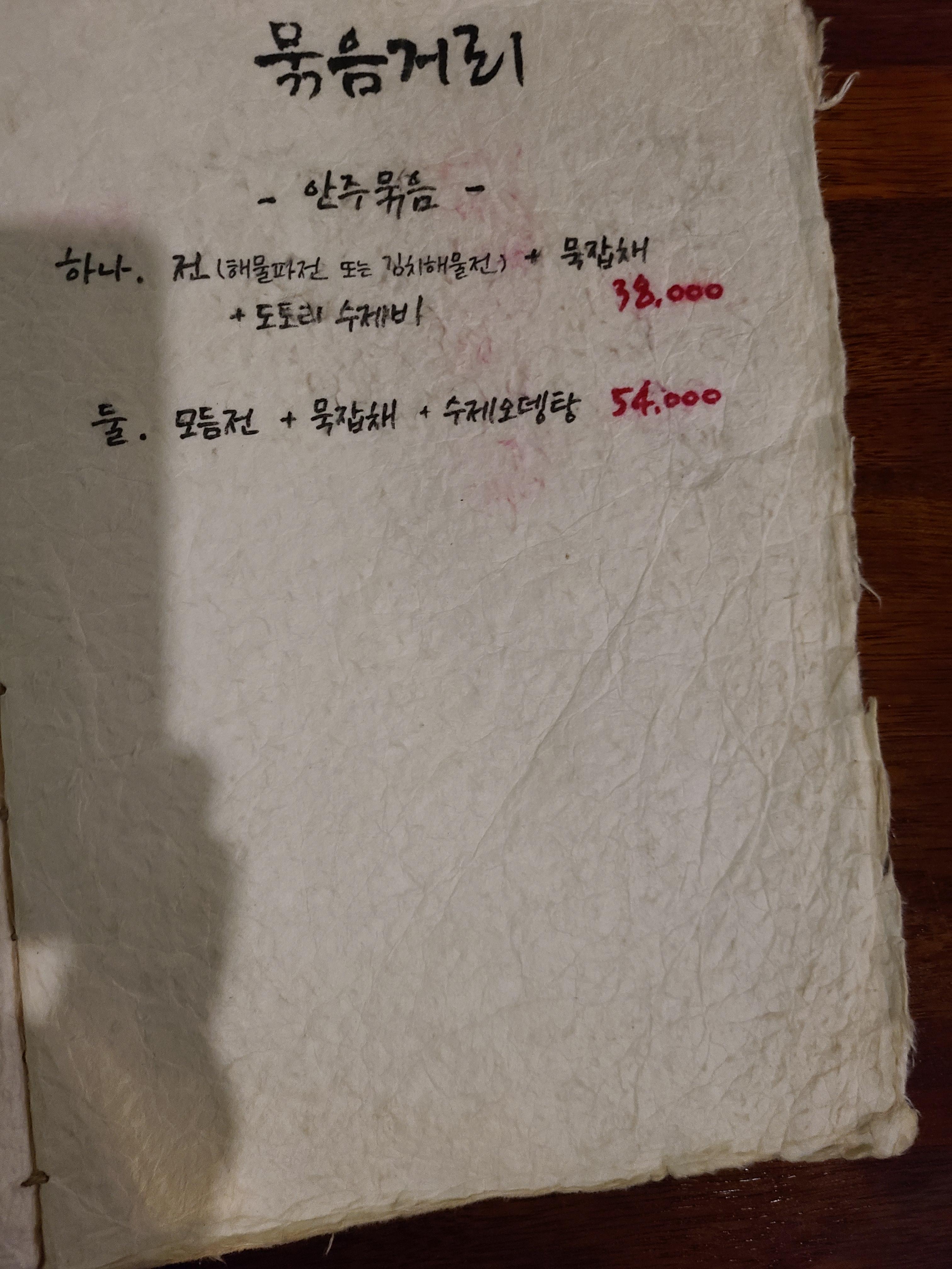 해물파전이야 두말하면 잔소리가 될듯하고, 처음 먹어보는 묵 잡채 맛이 아주 좋았다. 도토리묵을 말렸다가 끓는 물에 데쳐낸 후 무침을 한듯한데 쫀듯하면서도 부드러운 식감이 좋았다.