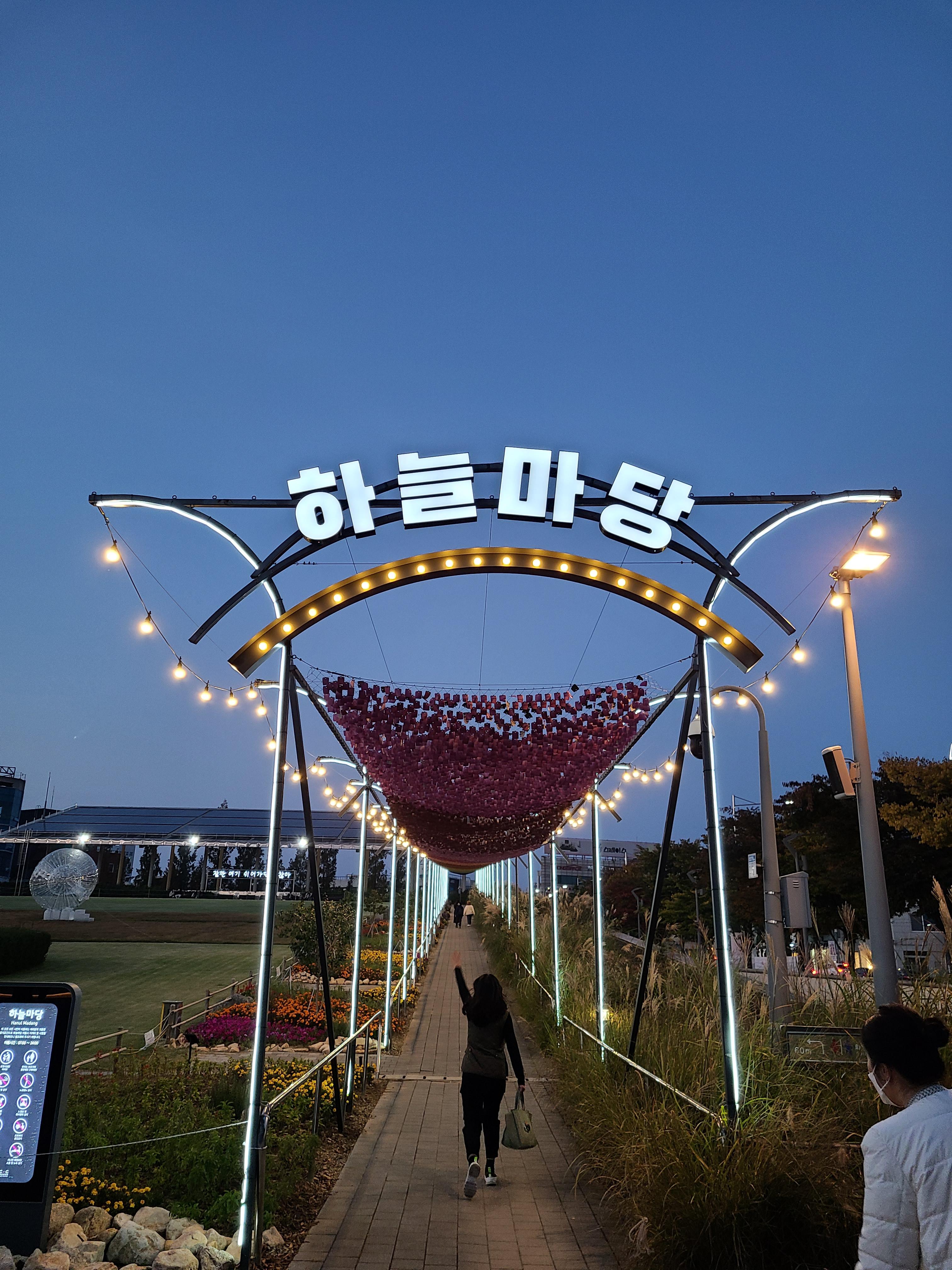 하늘마당에 불이 들어오니 낮에 볼 때와는 다른 분위기가 느껴진다.