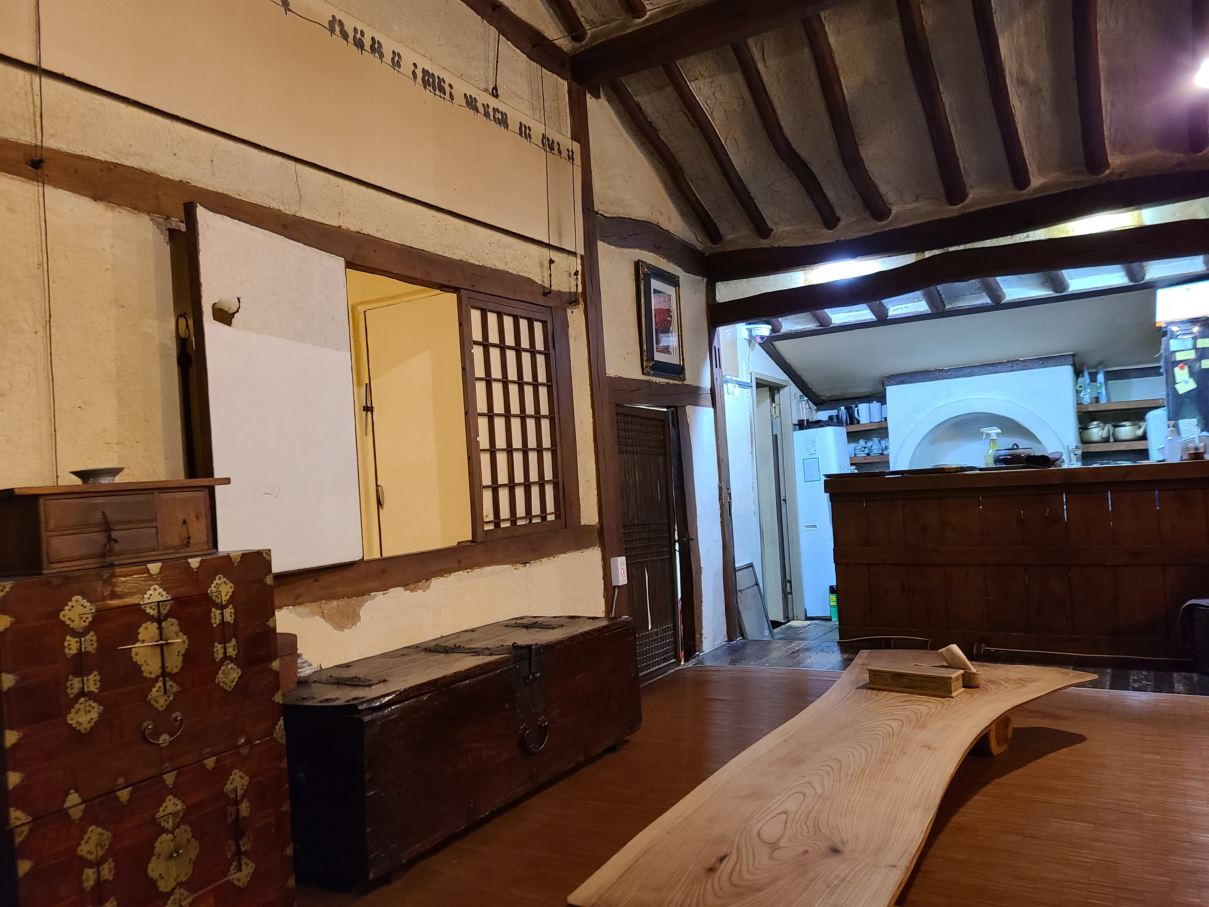 마루 안쪽으로 방에도 테이블이 있는데 이미 다른 손님들이 있어 우리는 마루 창가로 앉았다. 고가구들이 있어 더욱 분위기가 좋았다.