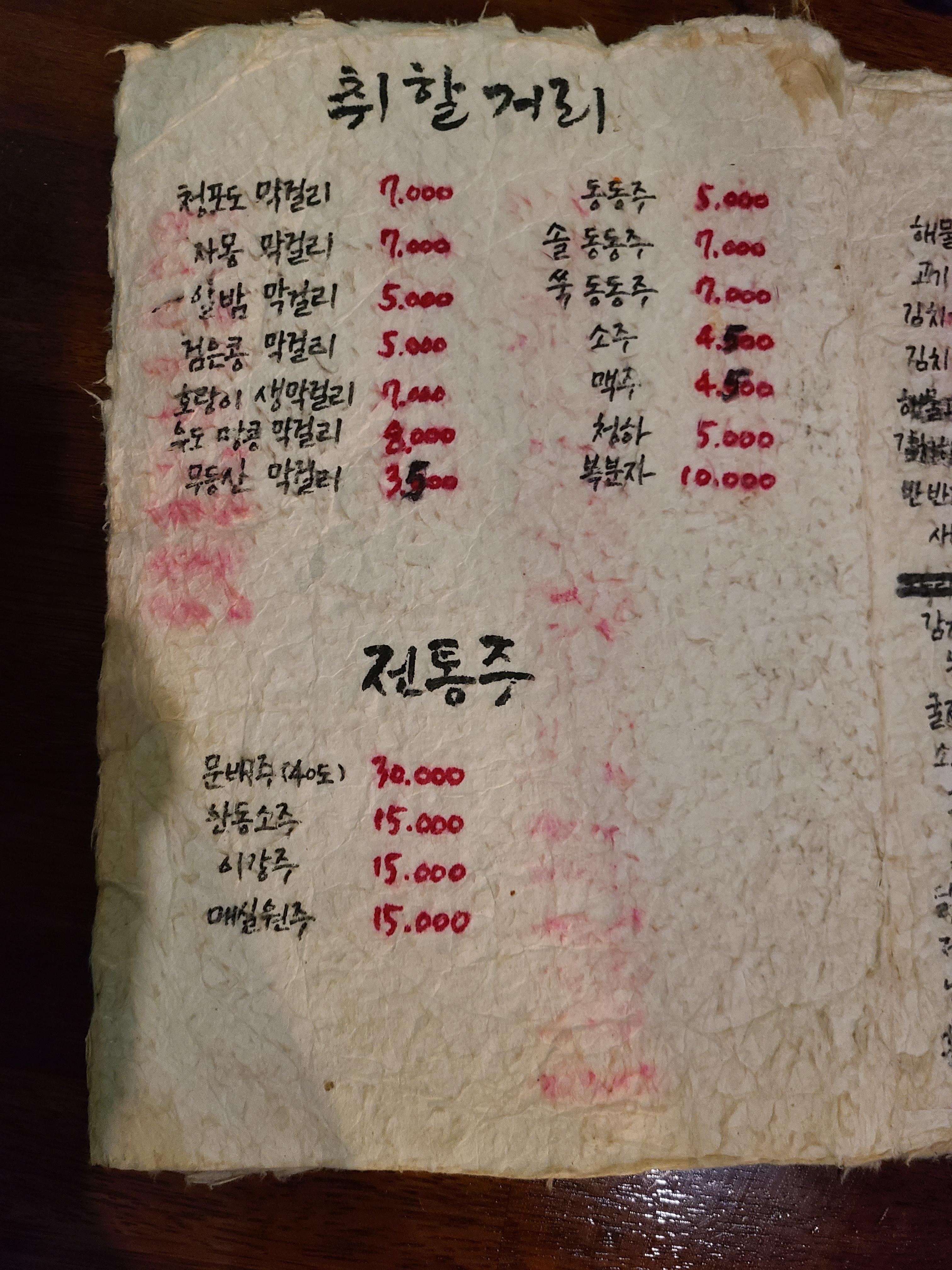 동명동에 있는 황톳길은 30년이 되었다고 한다. 이곳이 본점이고 장동과 사동에 분점이 있다고 한다. 동명동에는 이곳 말고도 구옥을 개조해서 운영하는 음식점이 많이 모여 있는 곳이라고 한다.