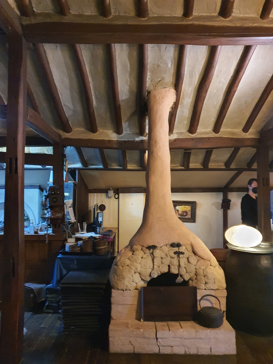 실내는 마루로 되어있고 흙으로 만든 벽난로가 있었다. 천정에 석가래가 그대로 드러나는 모습도 정겹다.