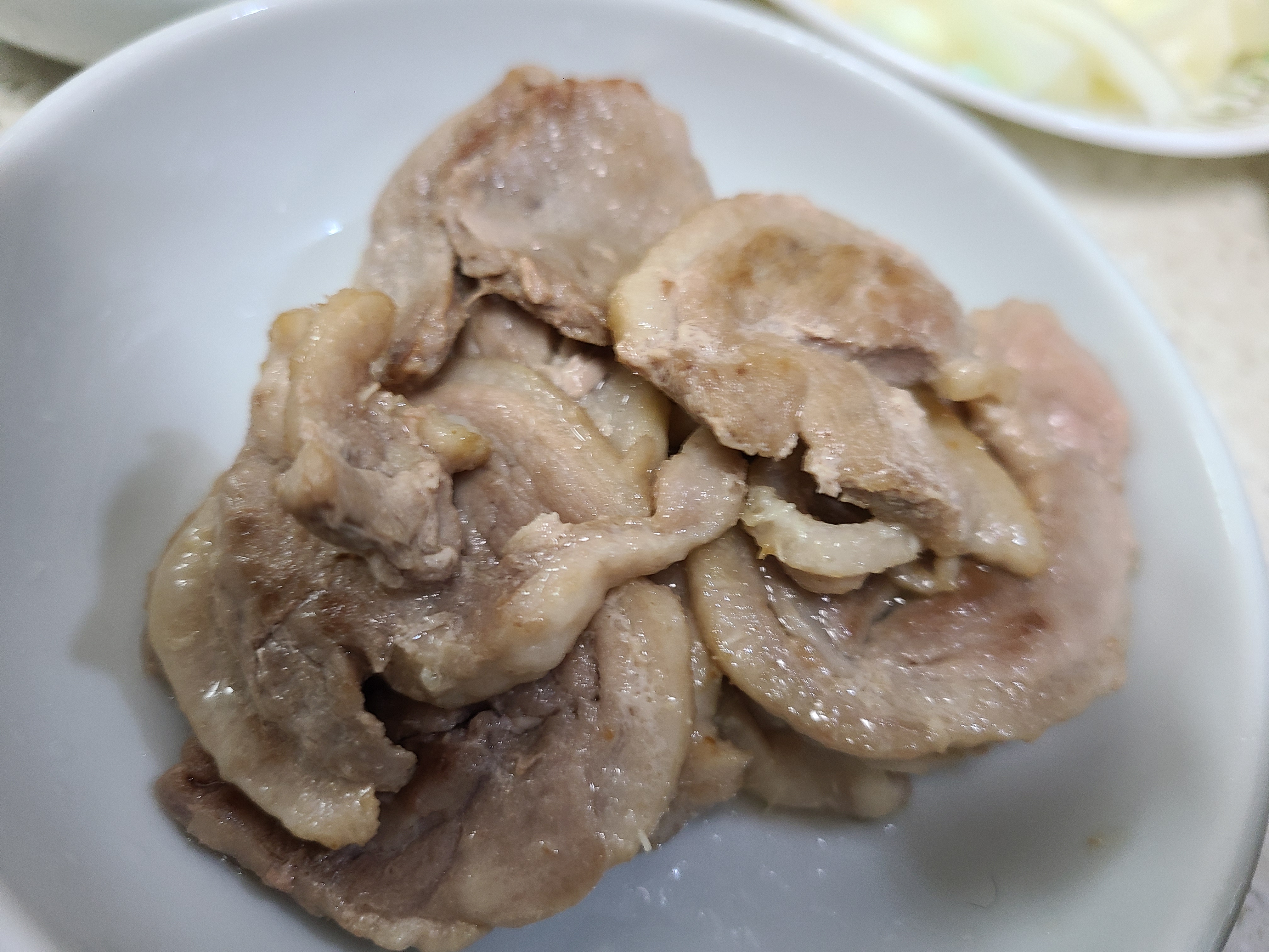 2. 냉동오리를 팬에 먼저 익혀 접시에 담아놓았다. 기름이 너무 많아 그대로 사용하고 싶지 않아 프라이팬을 닦아냈다.