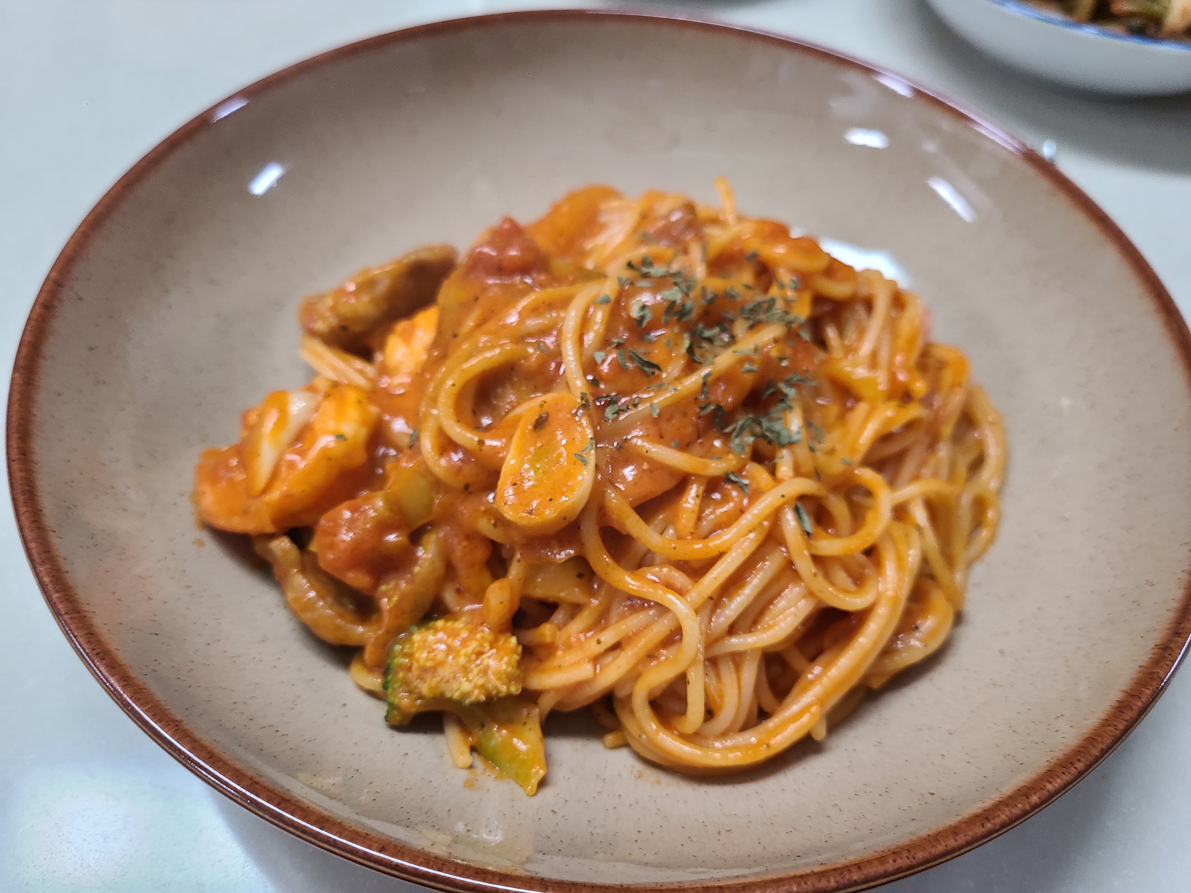 그래도 이 정도면 성공이다. 프라이팬에 남은 스파게티까지 두 남자가 다 맛있게 먹었다. 다음에 '밀라노 크림치즈 로제' 소스를 구입해서 스파게티를 만들게 된다면 베트남 고추를 넣어 매콤하게 만들어 봐야겠다.