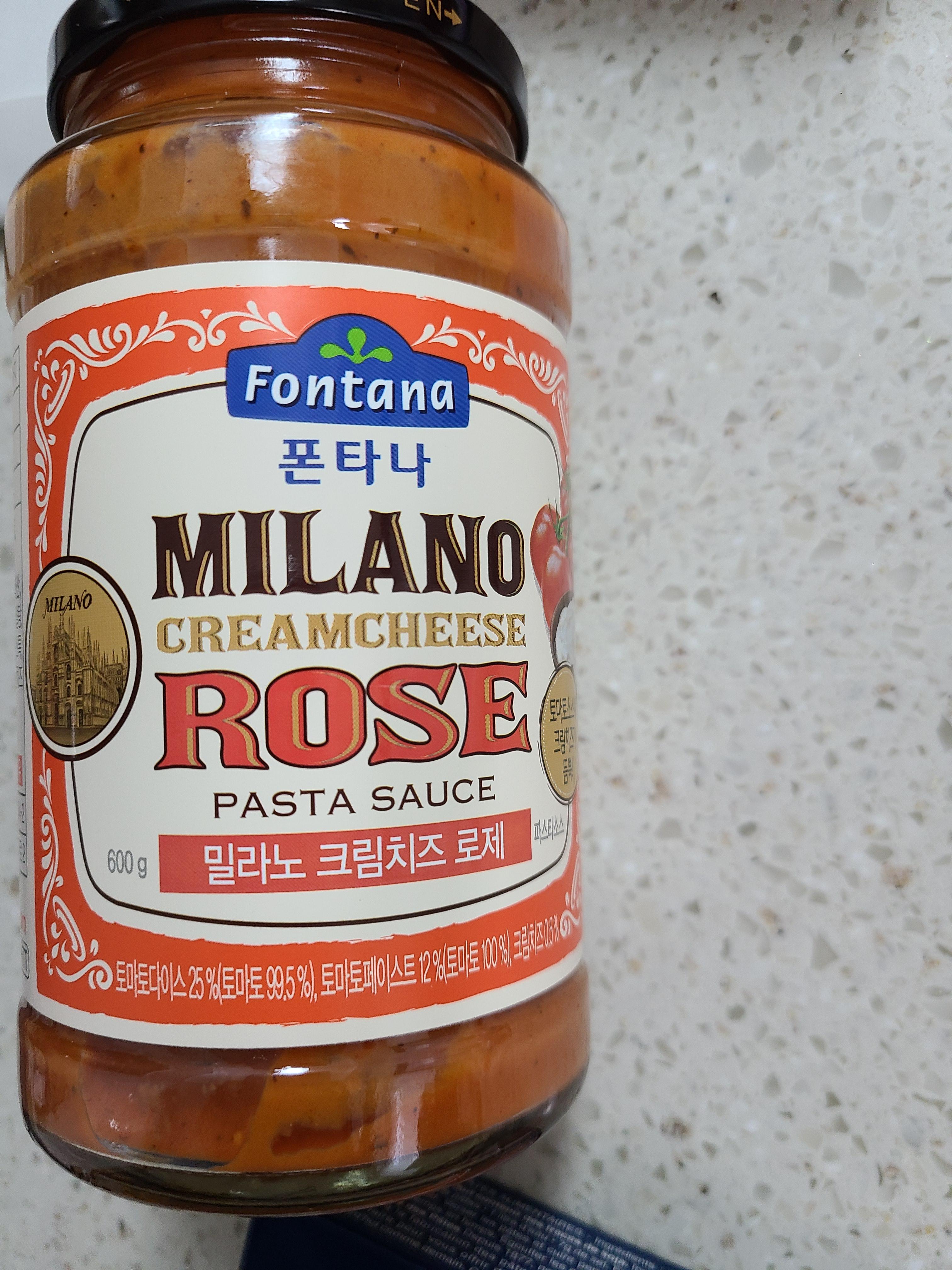 며칠 전 마트에 갔다가 파스타 소스 중 '폰타나 밀라노 크림치즈 로제'를 발견했다. 전에 아들이 로제 떡볶이를 사줬을 때 먹어본 소스 맛이 좋았길에 한 병을 파스타면과 함께 구입했다.