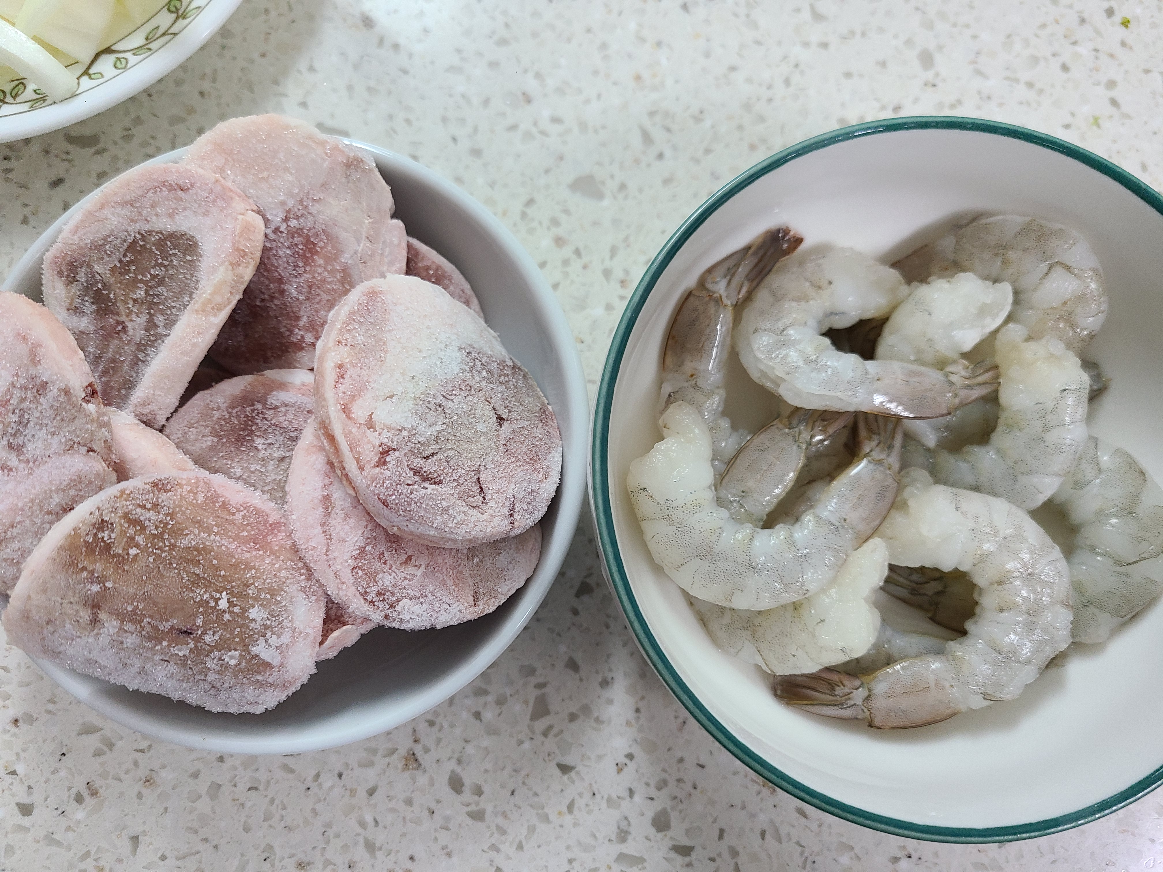 냉동새우 10개를 꺼내고 오리로스를 해 먹기 위해 사놓았던 냉동 오리를 베이컨 대신 사용하기 위해서 꺼냈다.