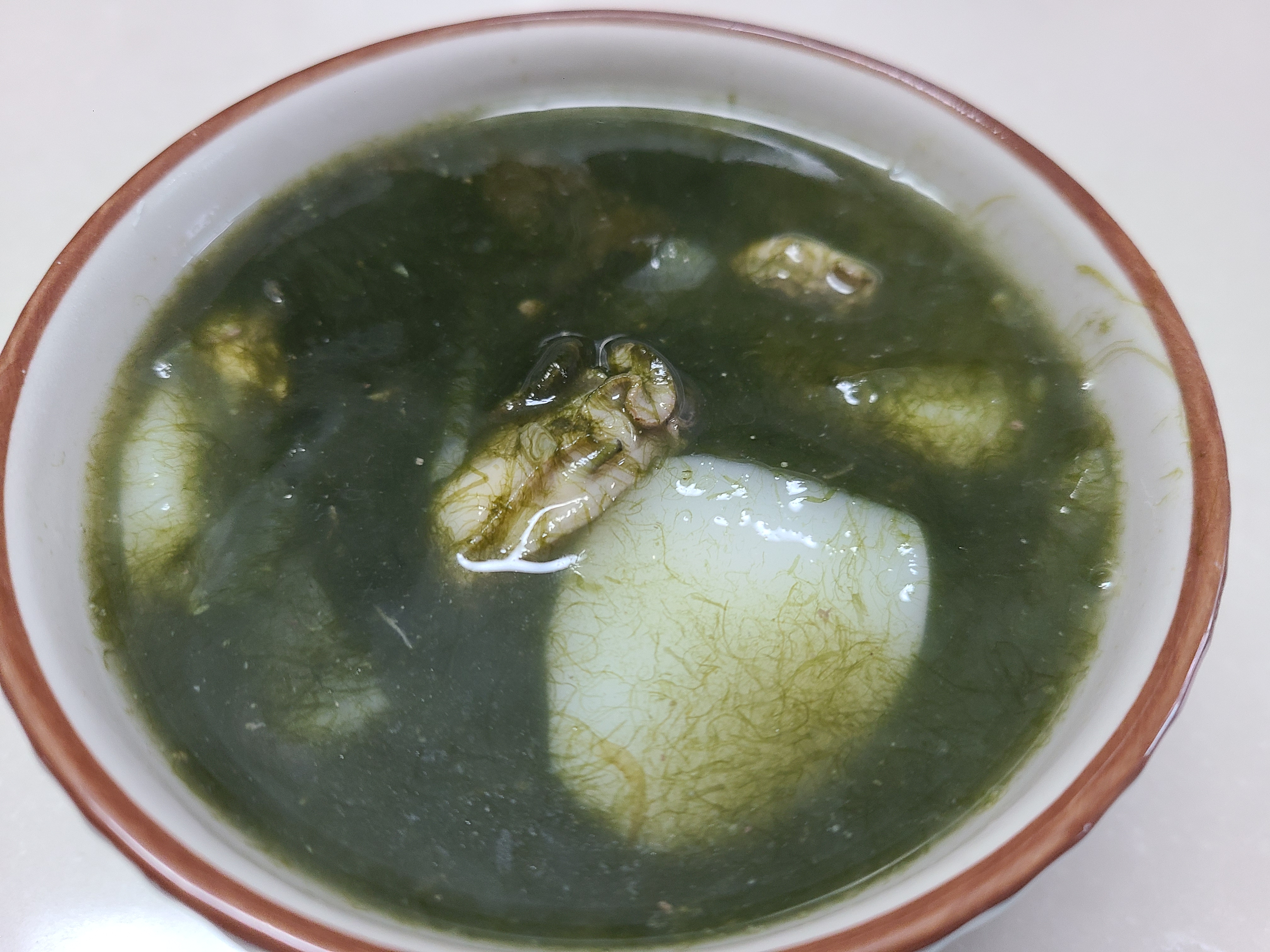 매생이 1/2 제기(180g), 굴 200g, 무 30g, 쇠고기 육수 1L(멸치육수 대체 가능), 국간장 2큰술, 까나리액젓 1큰술, 간 마늘 0.5큰술