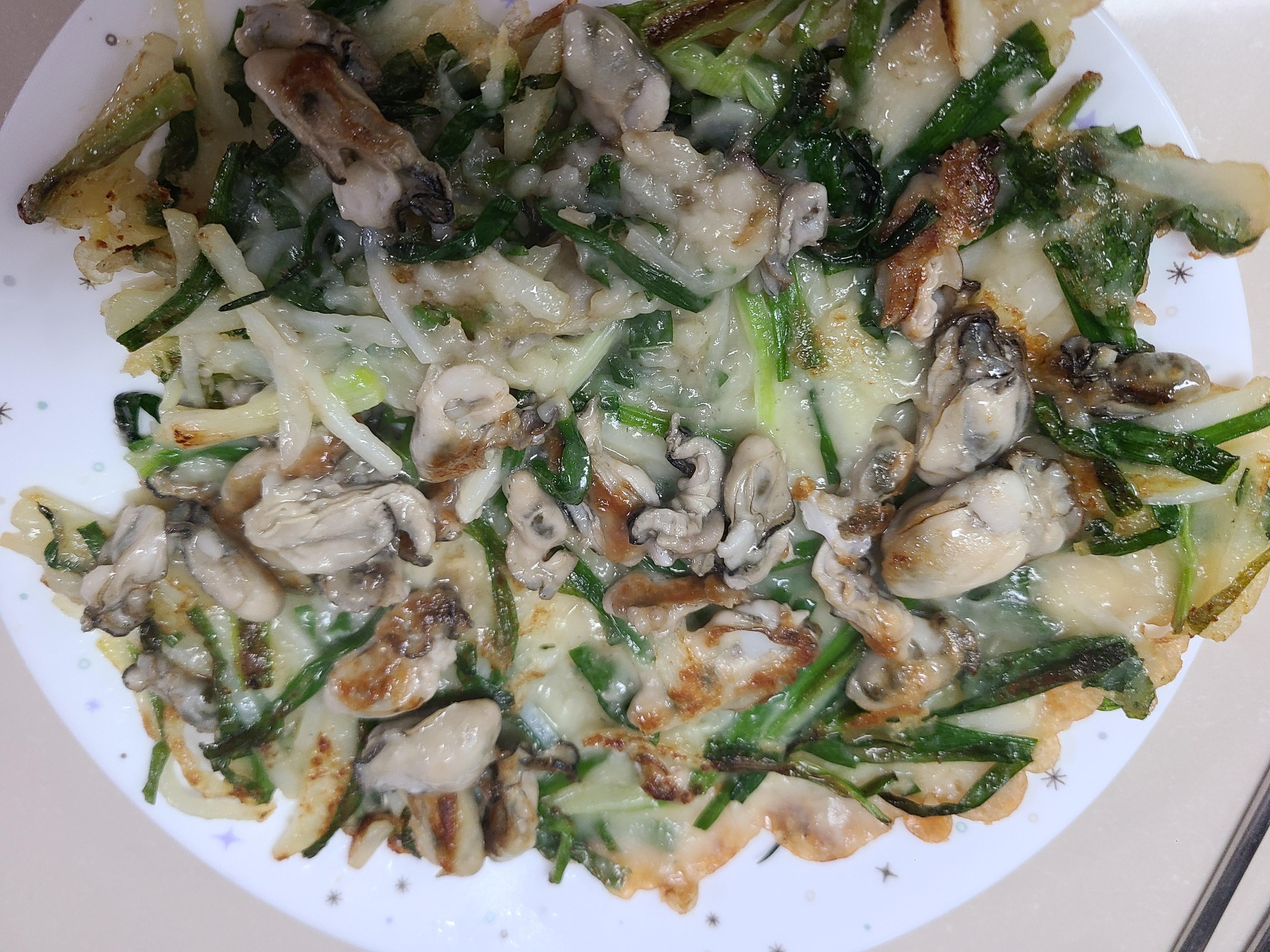 굴과 야채를 듬뿍 넣어 굴 부침개를 만들었더니 맛이 너무 좋다.