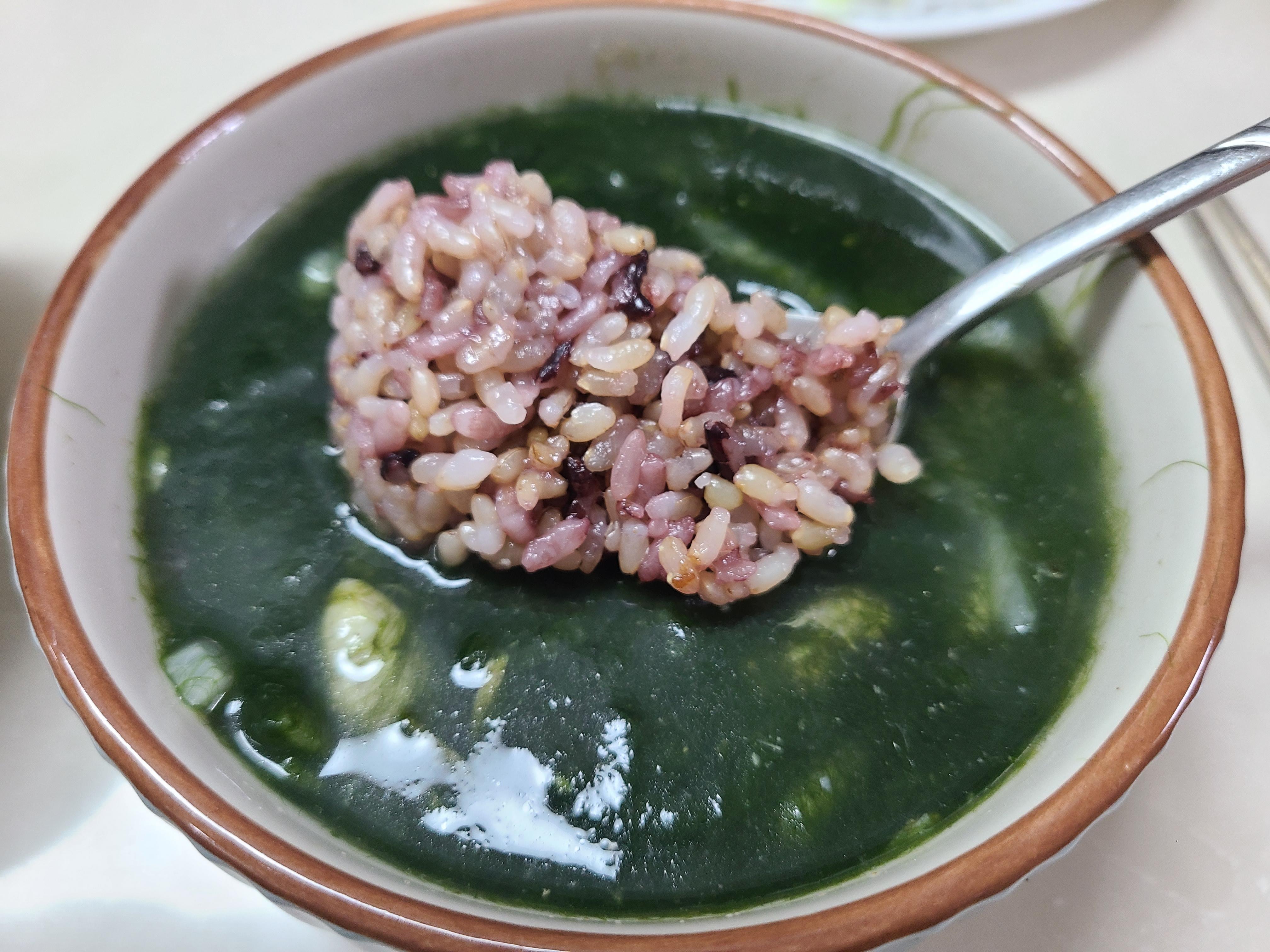 굴 매생이국에 밥을 말으니 그 조합이 너무 좋다.