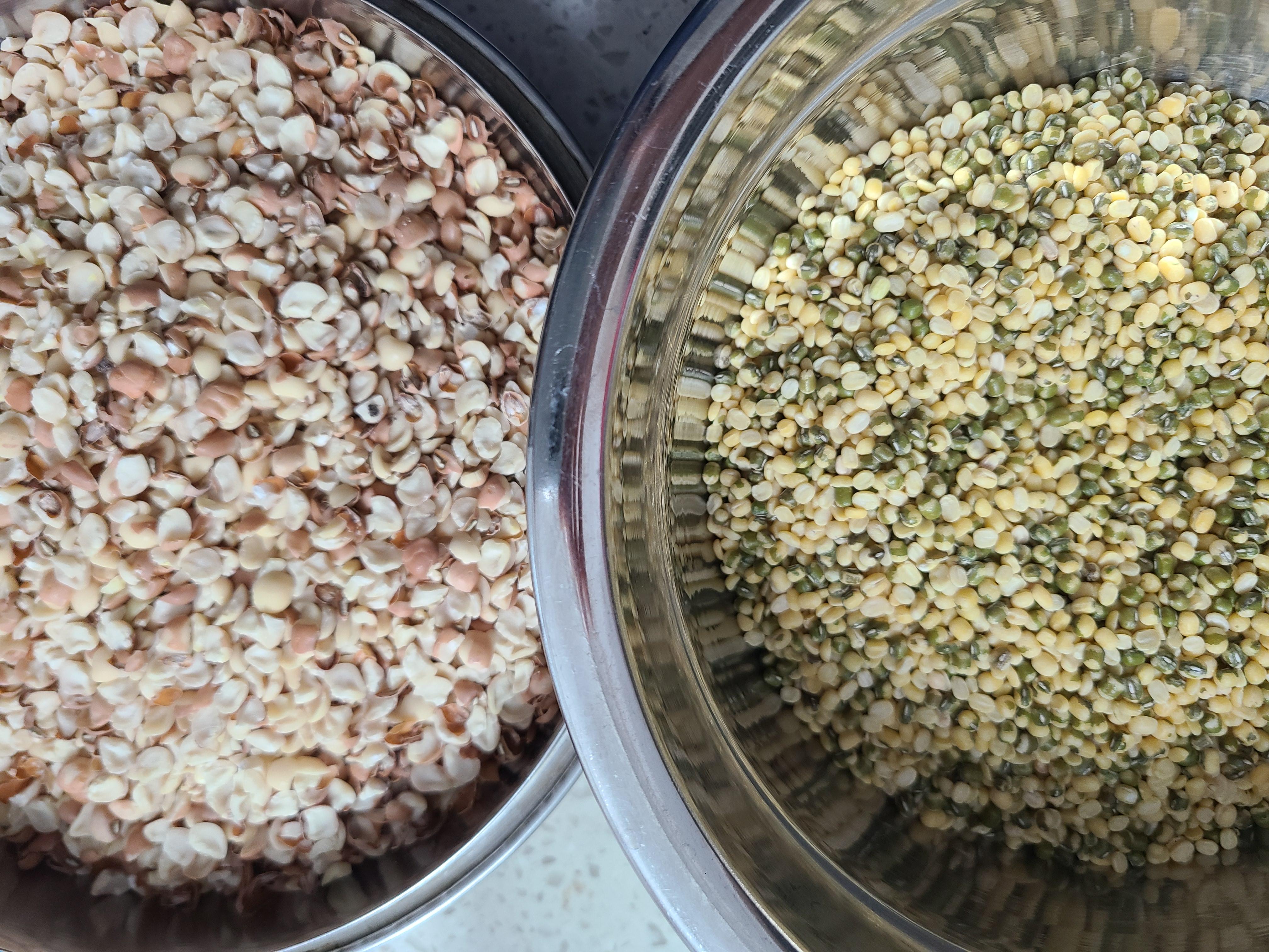 마른 동부를 물에 불리니 두배로 불어났다.