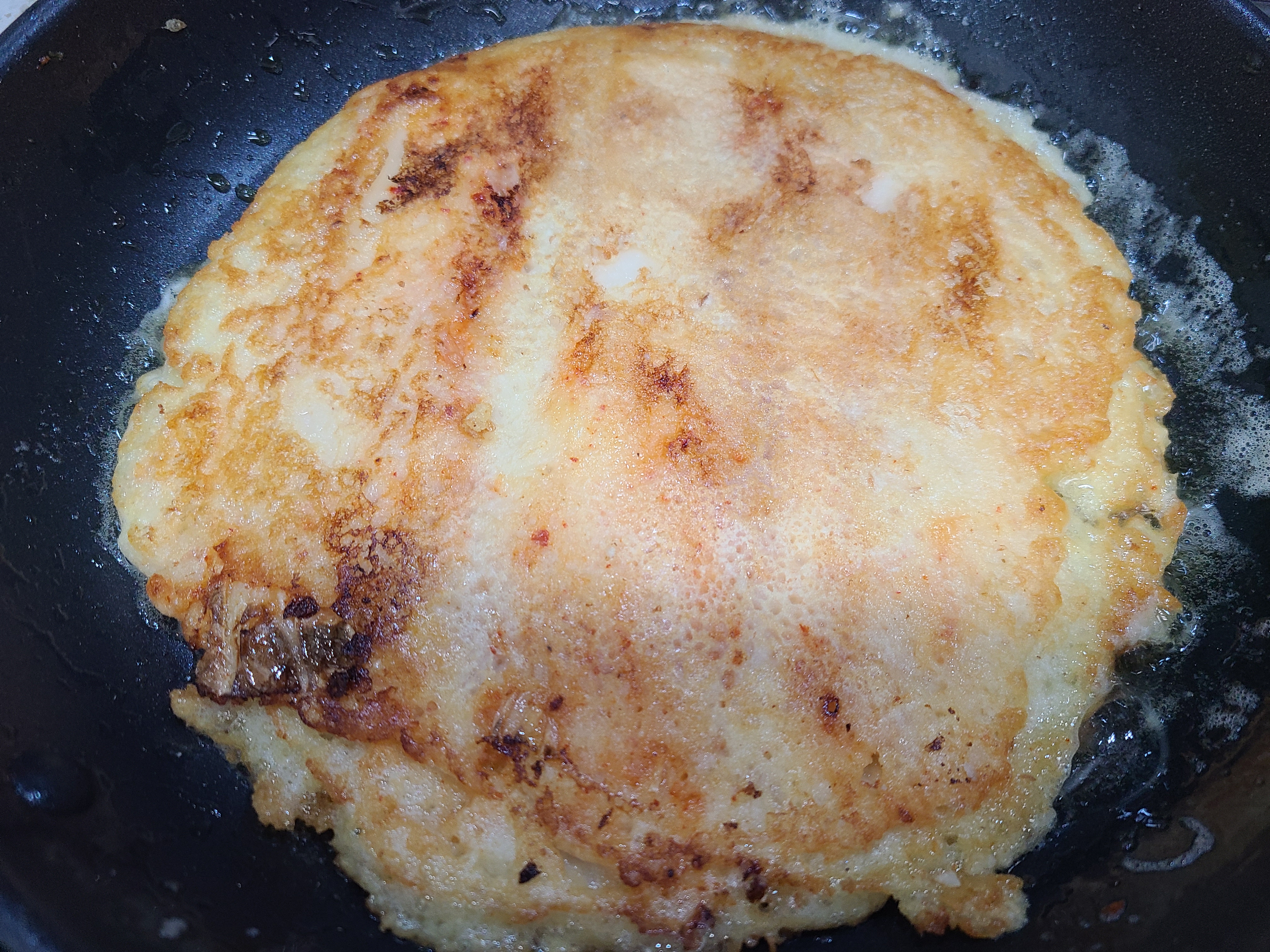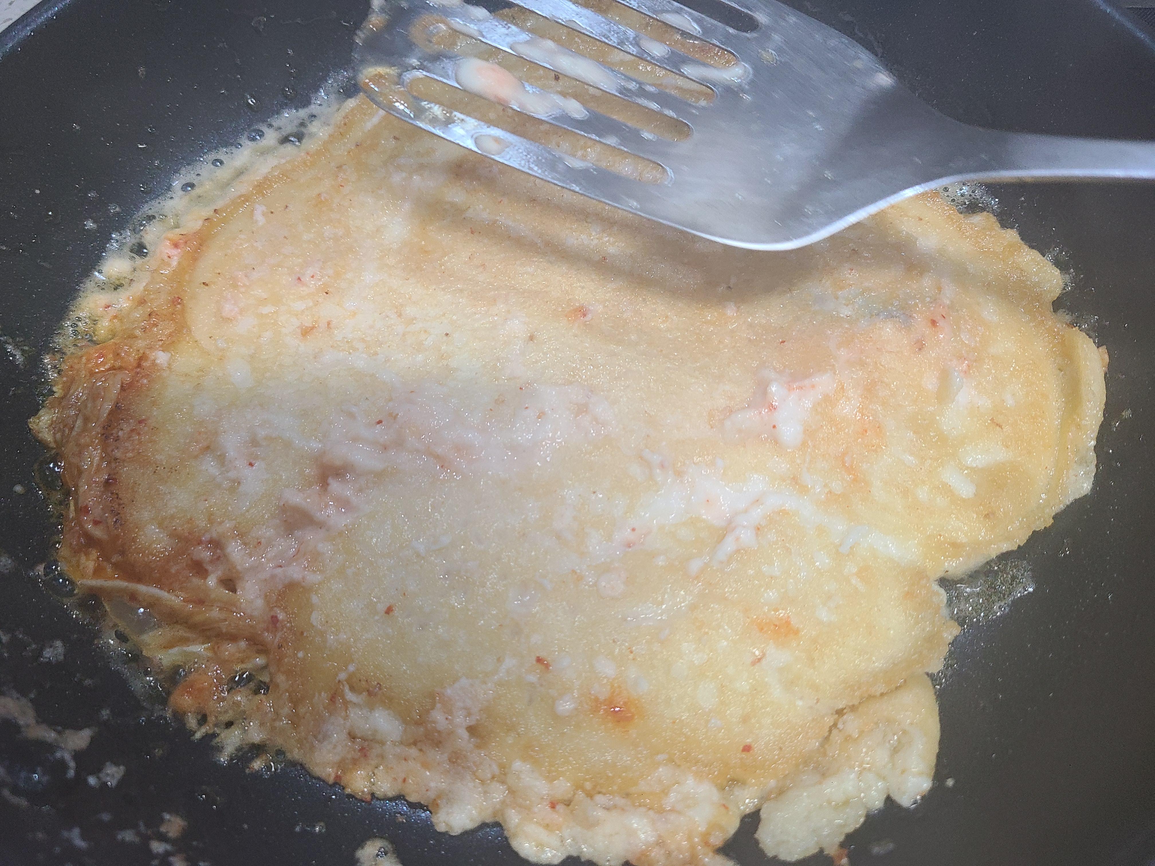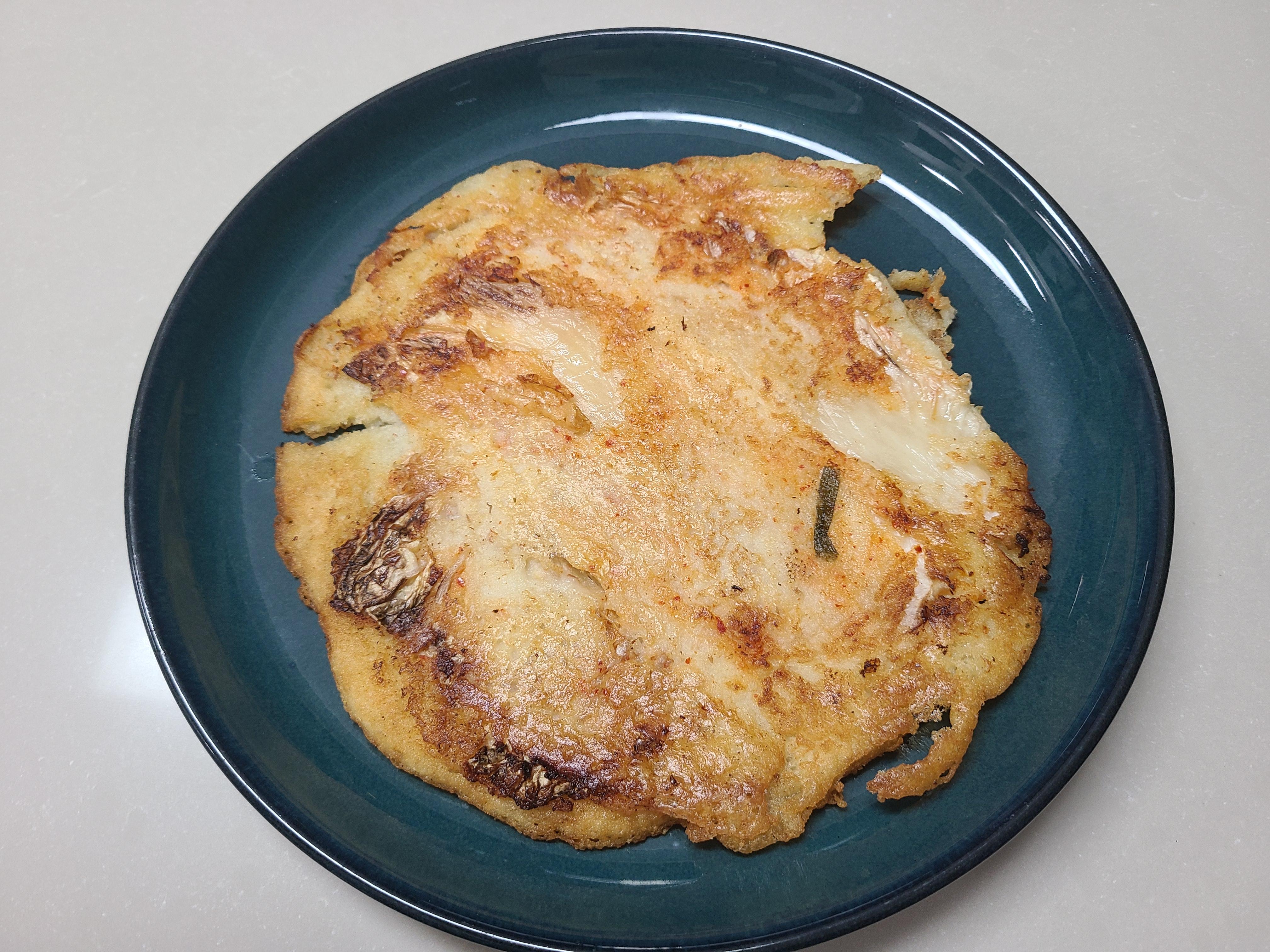 남은 반죽을 큼직하게 부치니 두쪽이 되었다.