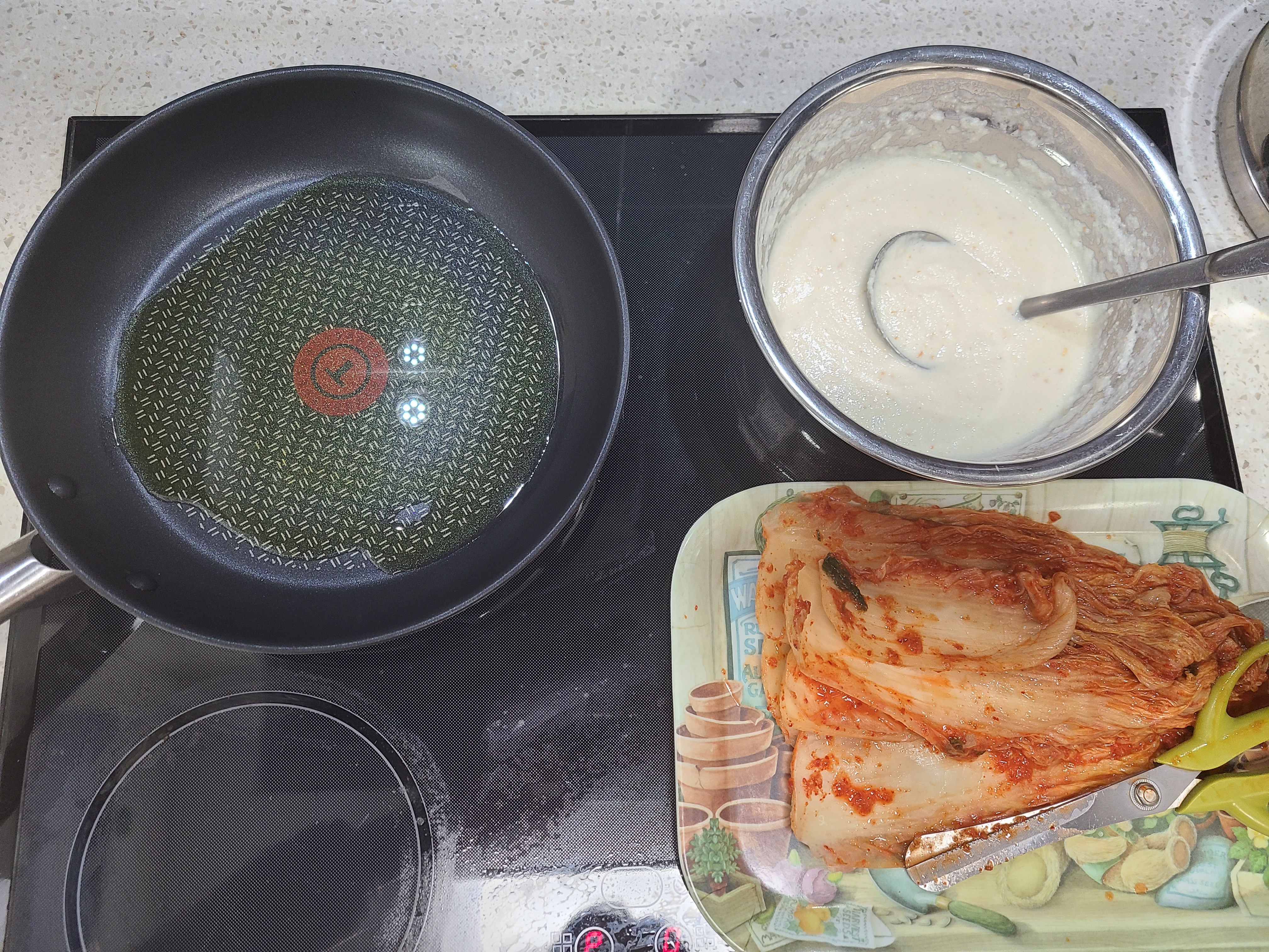 동부콩으로 부침개 반죽 만들기와 김치 준비하기