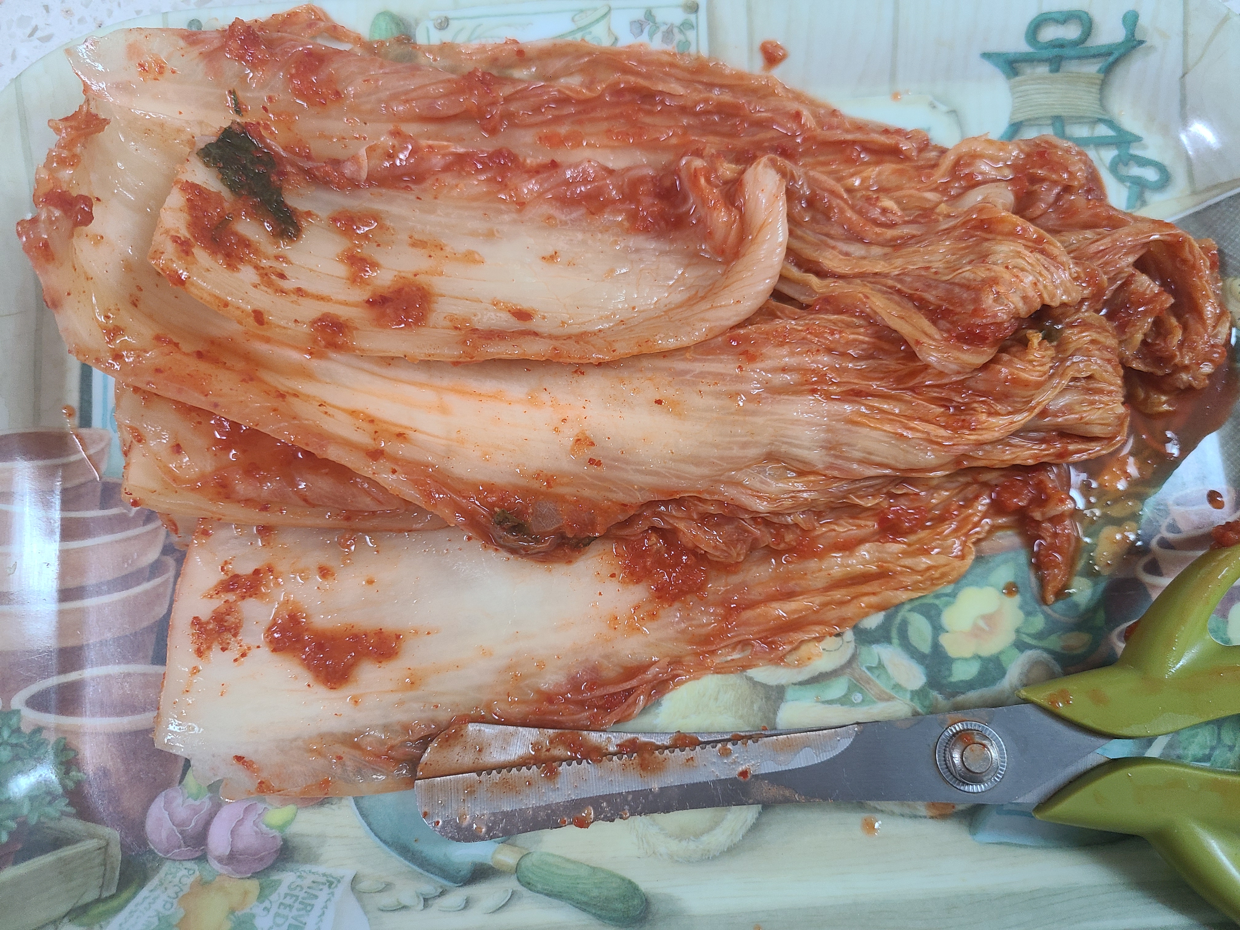 김장김치는 속을 털어주고 김치 국물을 손으로 짜낸 후 잎사귀 끝부분은 가위로 잘라주는 것이 깔끔하다.