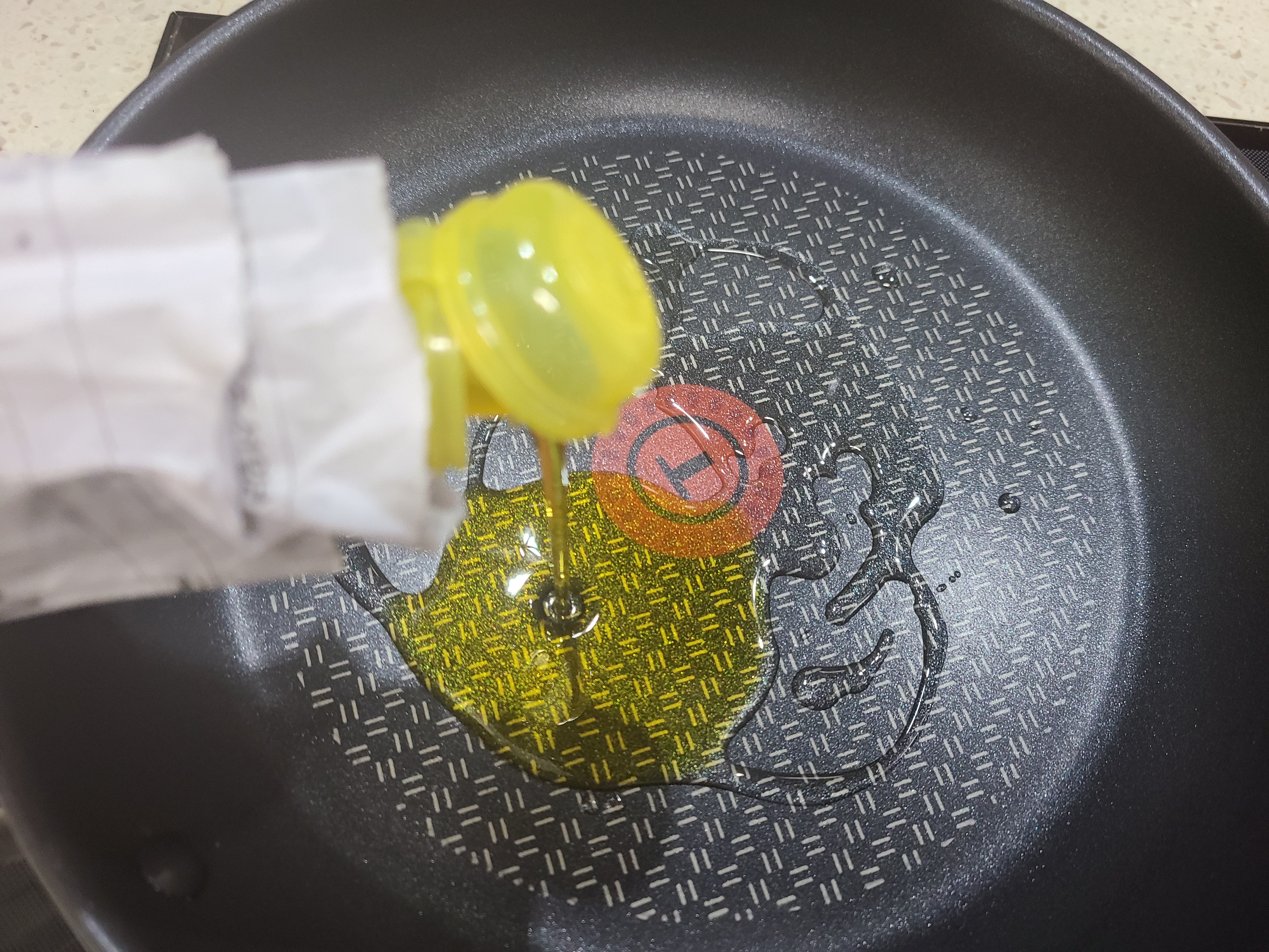 1. 달궈진 프라이팬에 식용유와 들기름을 반씩 넣어준다.