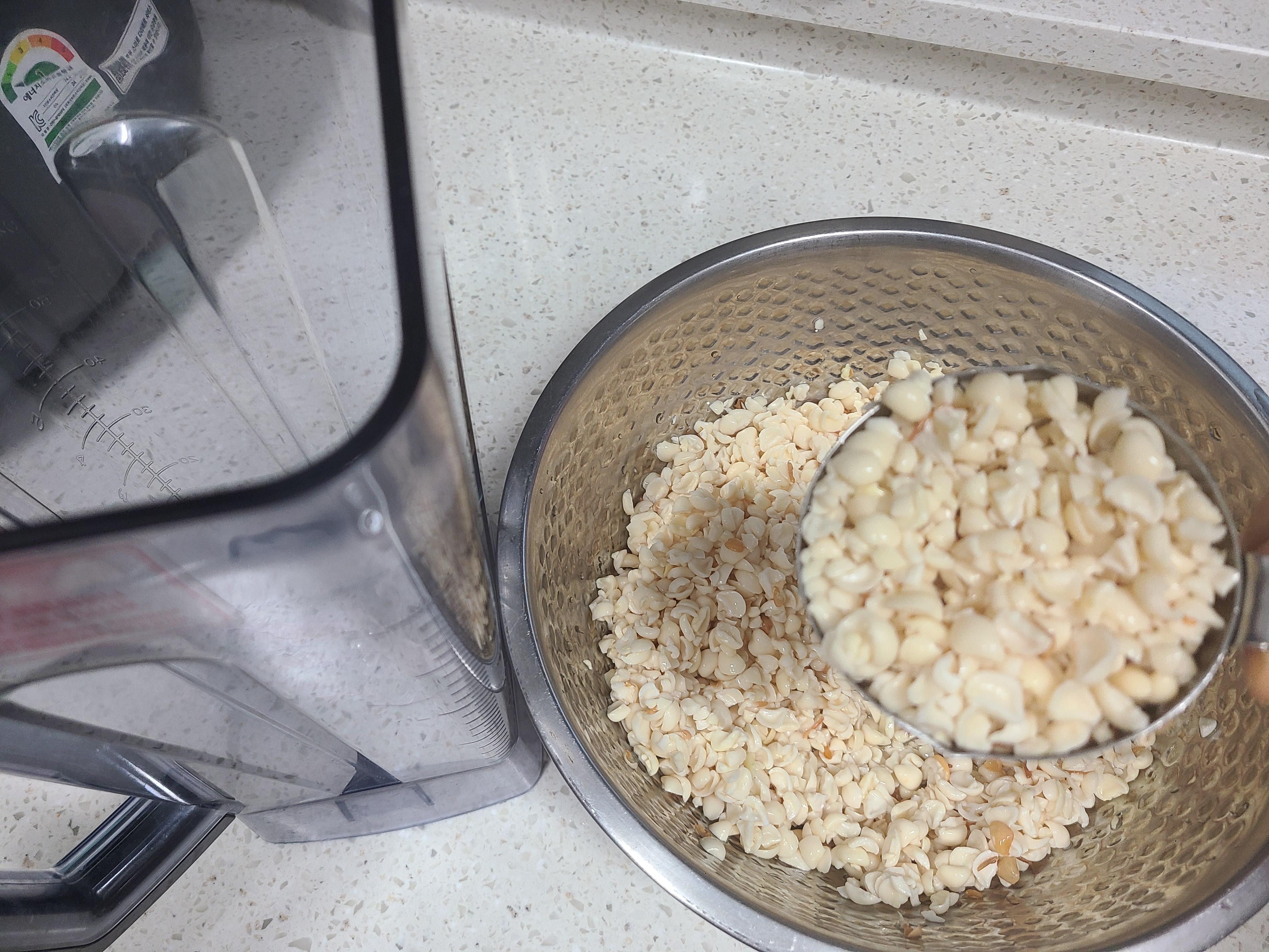 5. 동부가 불어서 연하기 때문에 믹서기는 5초에서 10초 정도만 돌려줘도 된다. 녹두나 동부는 너무 곱게 갈면 식감이 별로 좋지를 않다. 거칠게 가는 것이 먹을 때 더 고소하고 식감이 좋다.