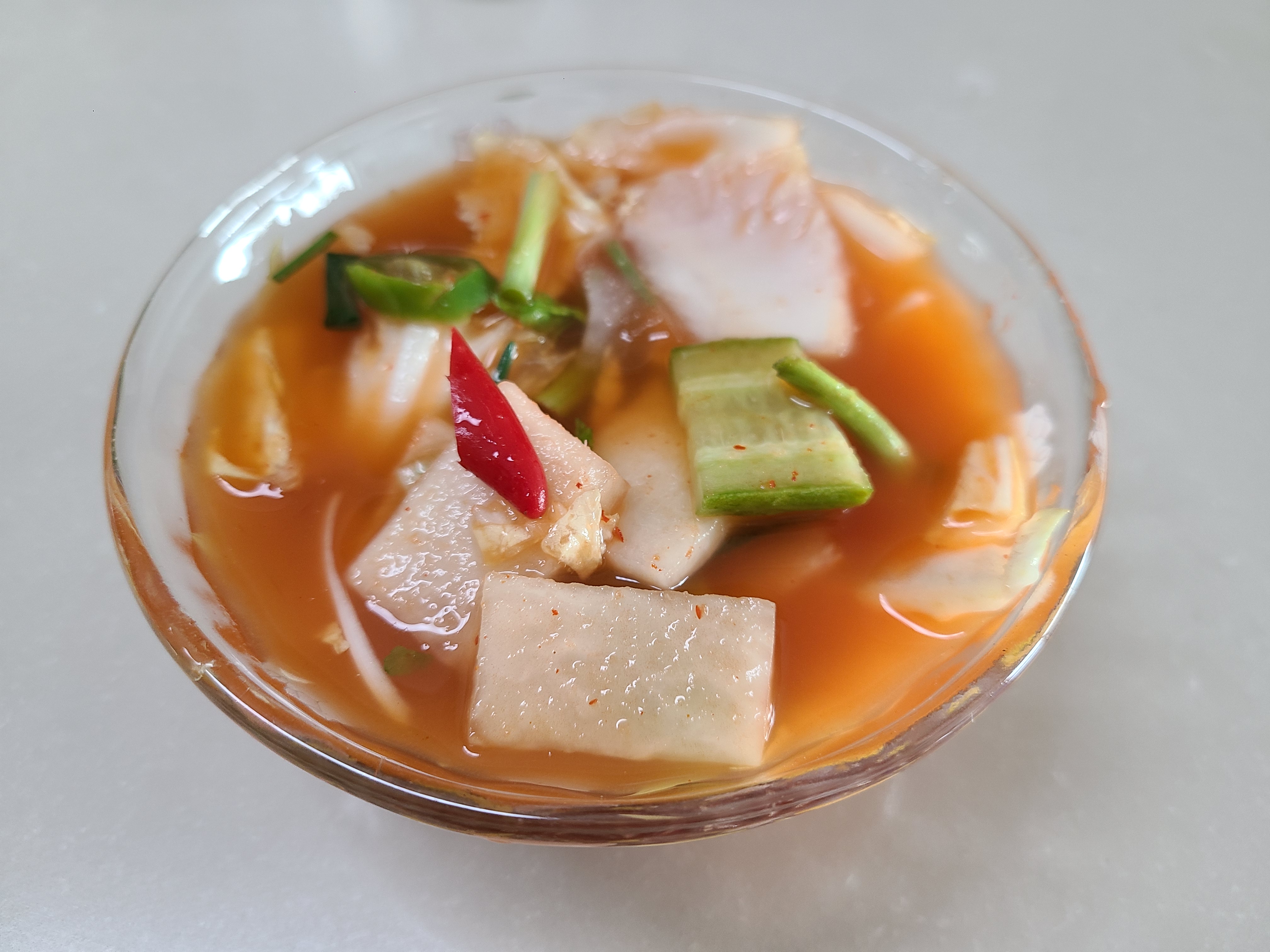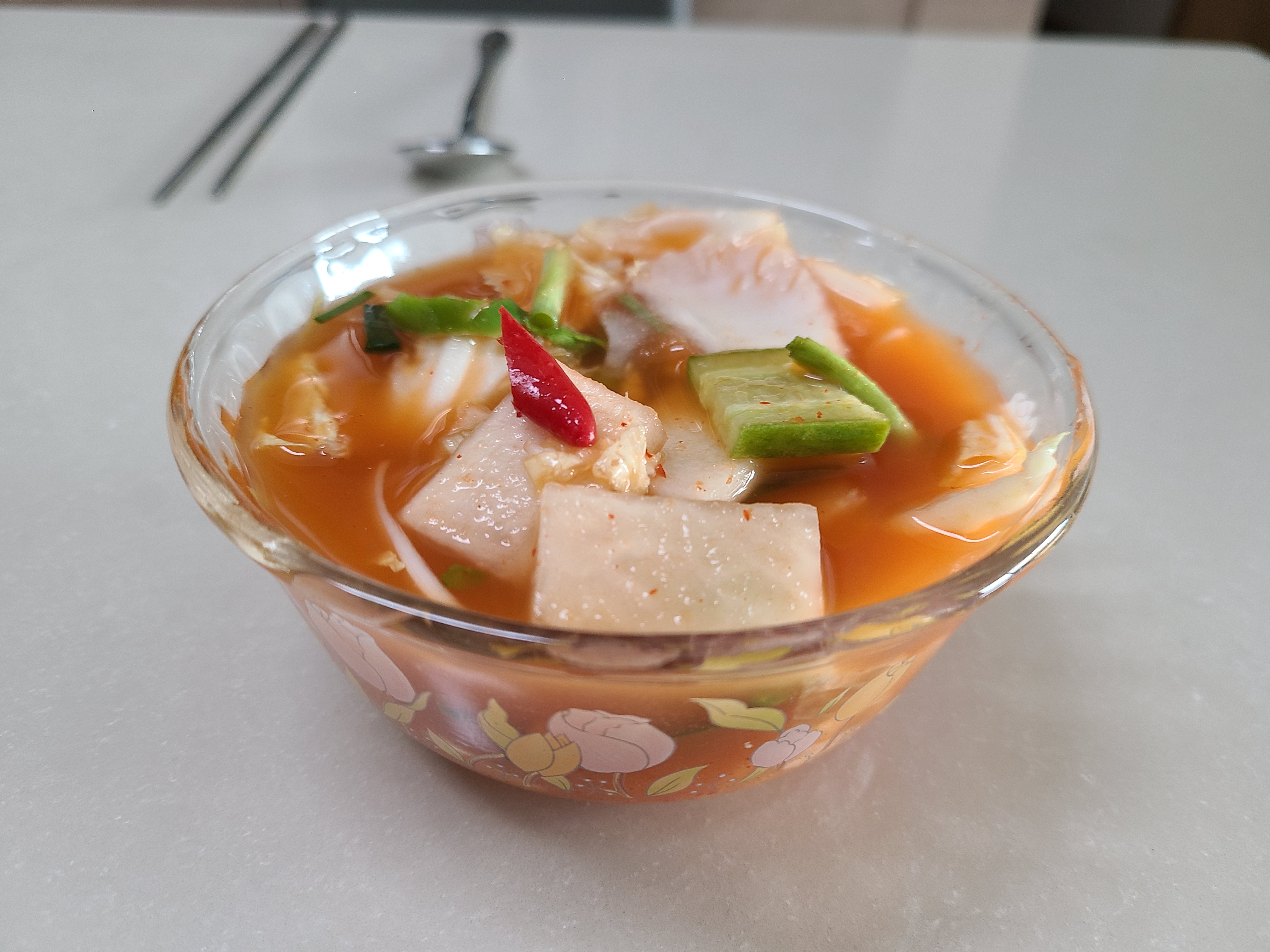 오랜만에 담은 나박김치가 매콤하면서도 달콤하다. 미나리와 오이가 들어가 상큼하기까지 하다. 저녁에 온 여동생은 방금 담아놓은 나박김치를 두 그릇이나 먹었다.