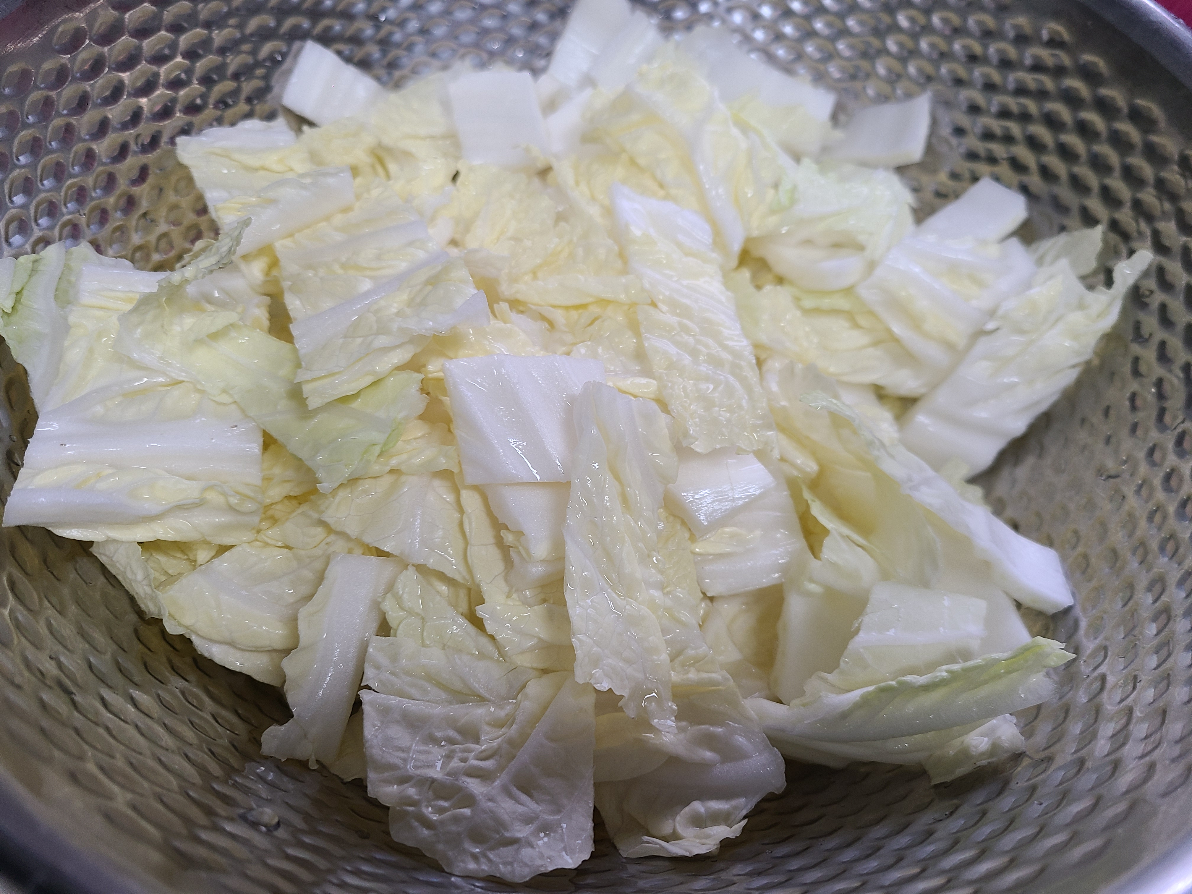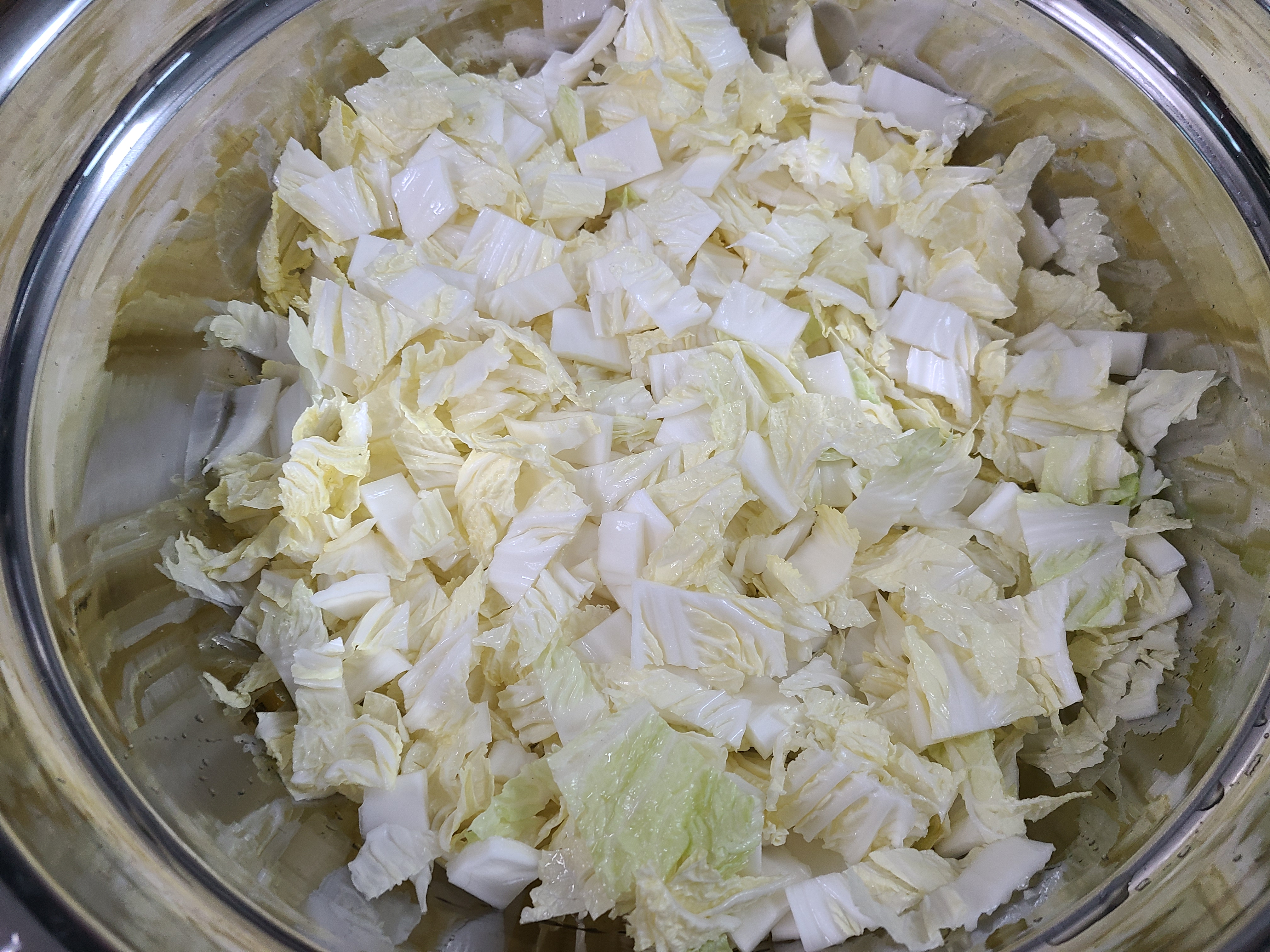 친정엄마는 꺼내온 배추와 무로 나박김치와 겉절이는 꼭 담그셨다. 그리고 만두를 만들 때 김장김치를 사용하지 않고 배추는 잘게 썰어 소금에 절였다가 꼭 짜서 만두소로 사용하셨다.