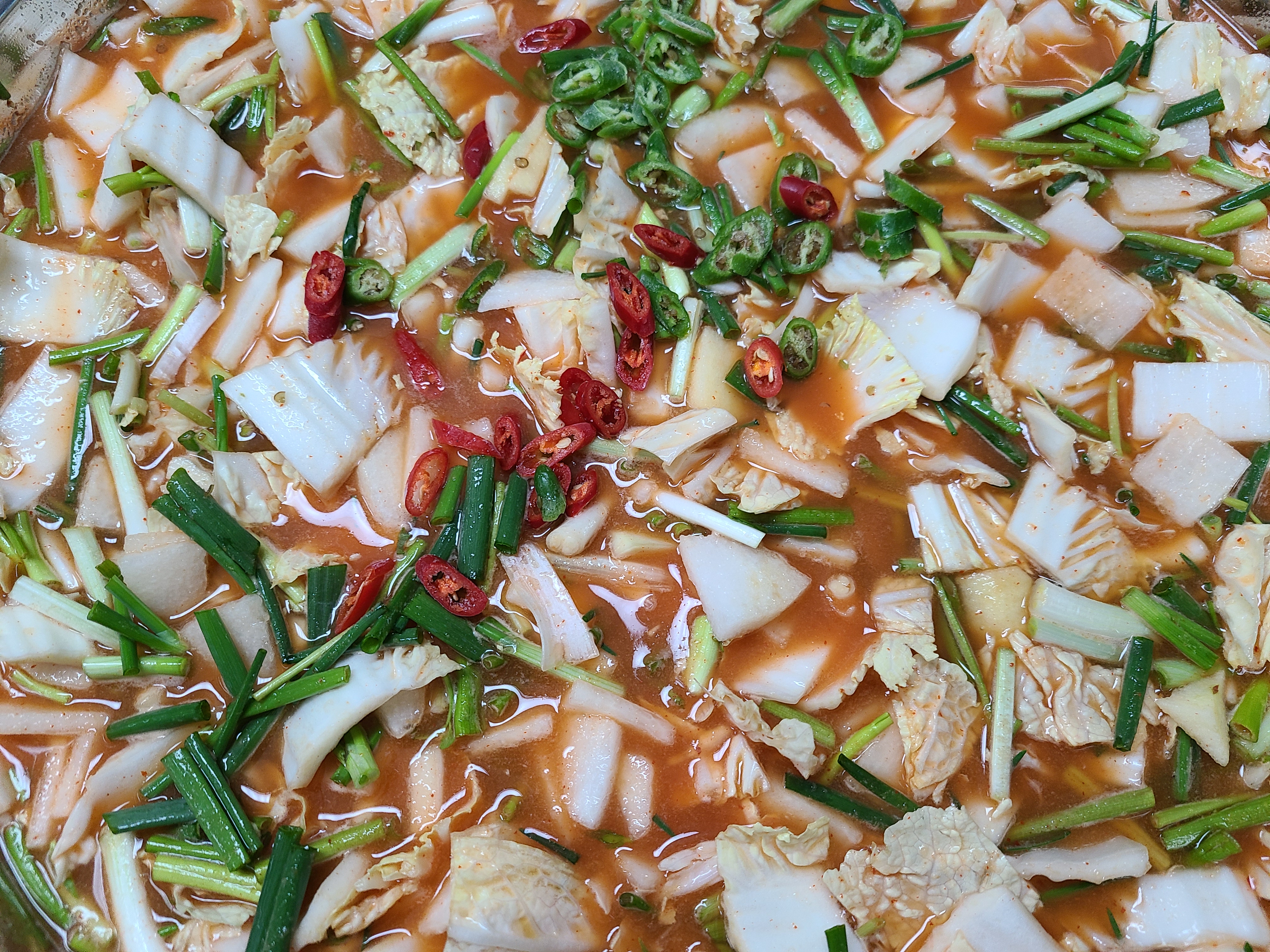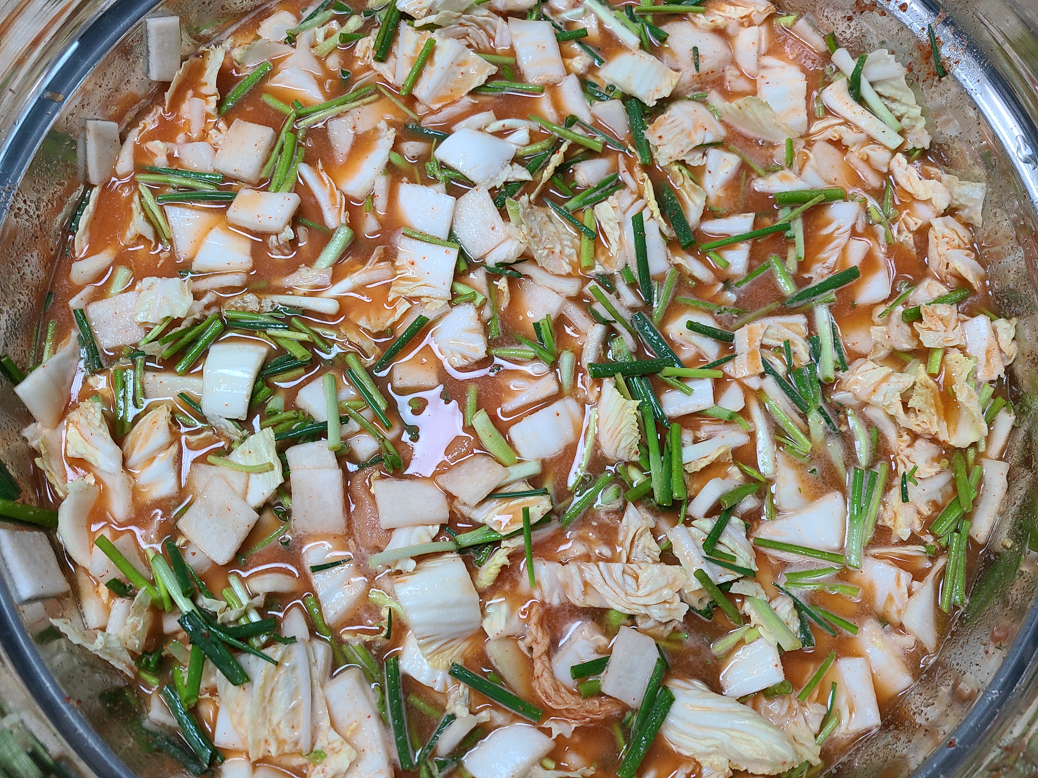 4. 배추와 무에 나박김치 국물을 넣어준 후 부족한 간이 있으면 추가하면 된다.