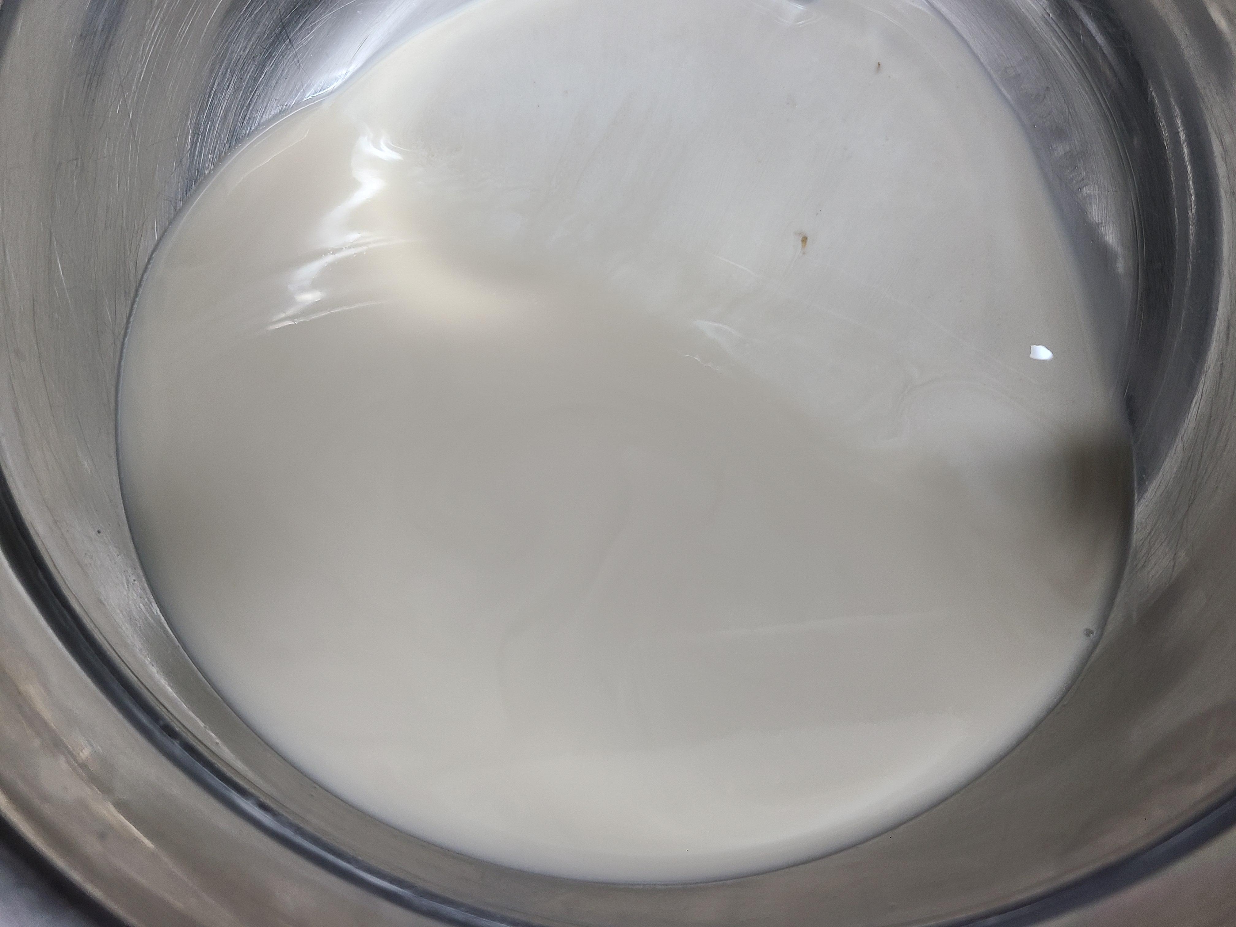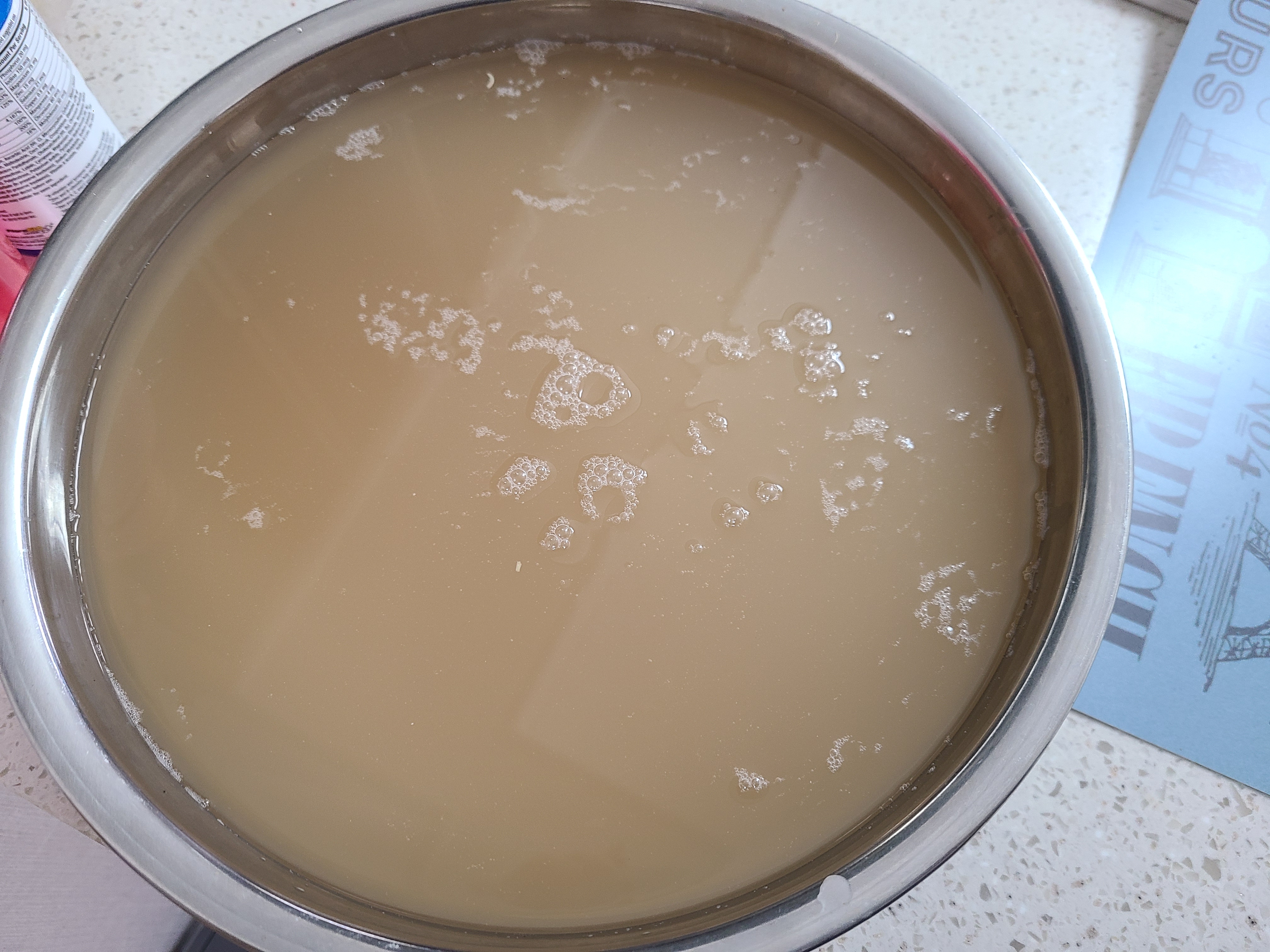 8. 엿기름 앙금이 바닥으로 가라앉아 뿌연 색이 갈색으로 변한다.