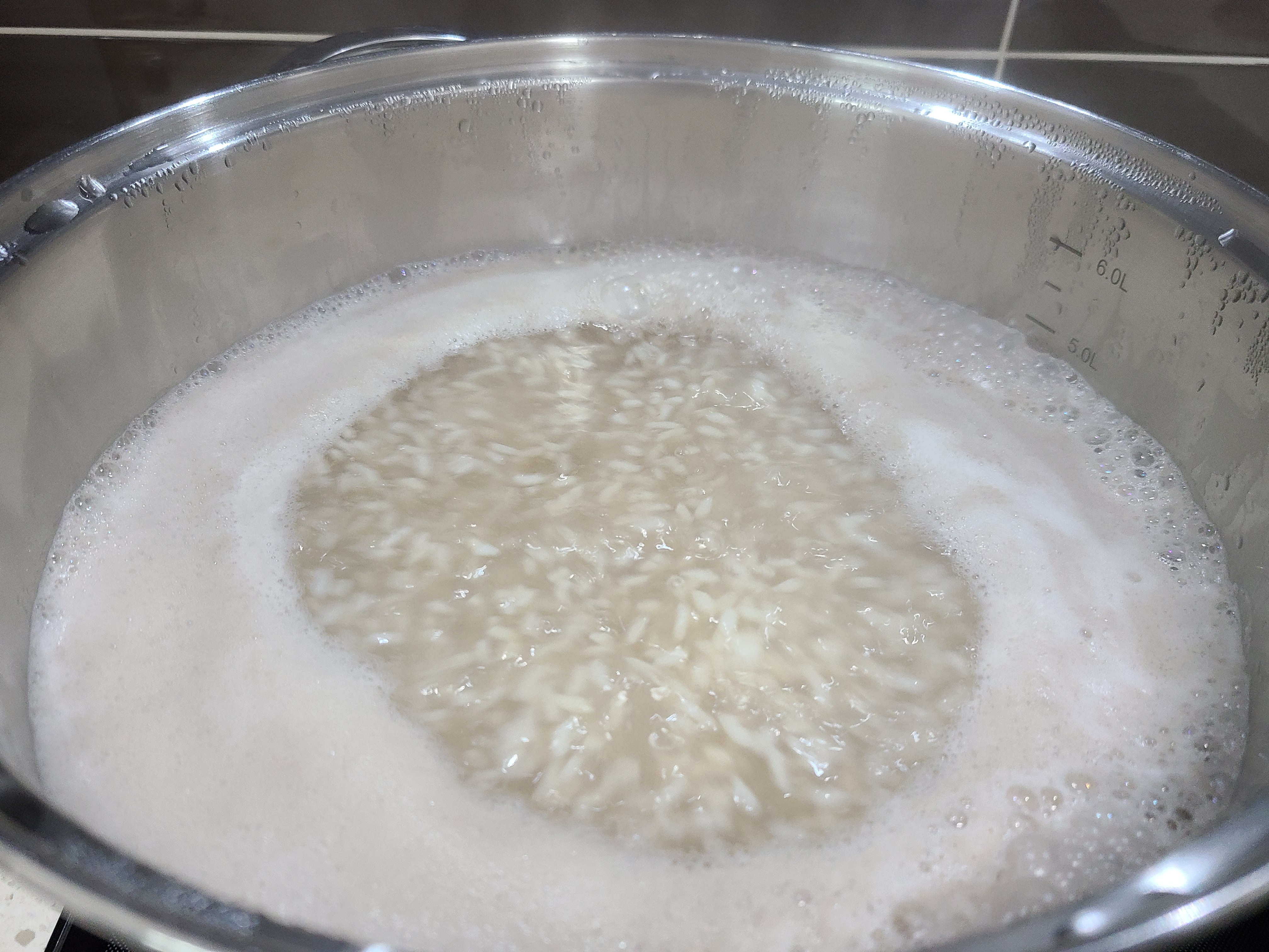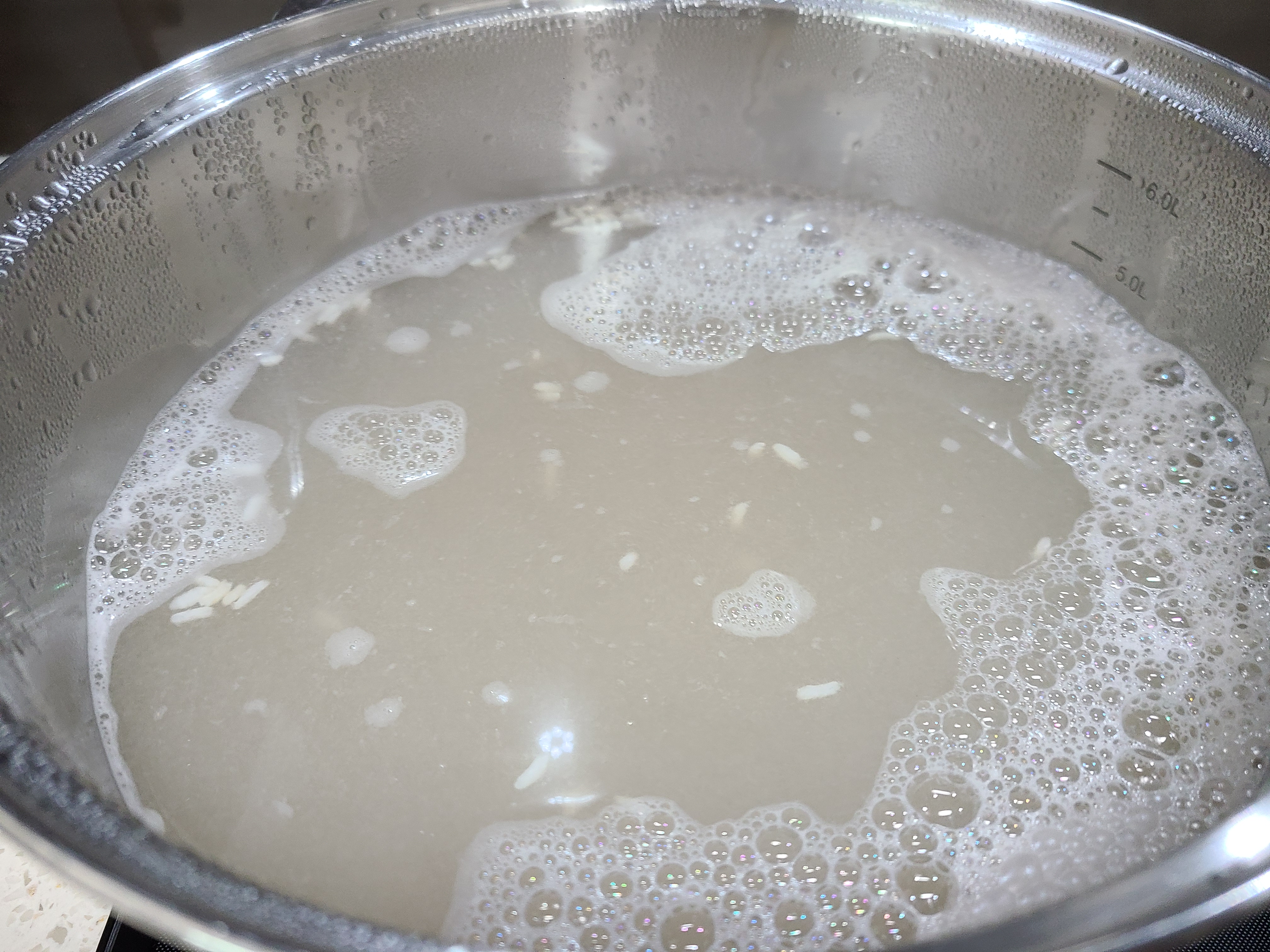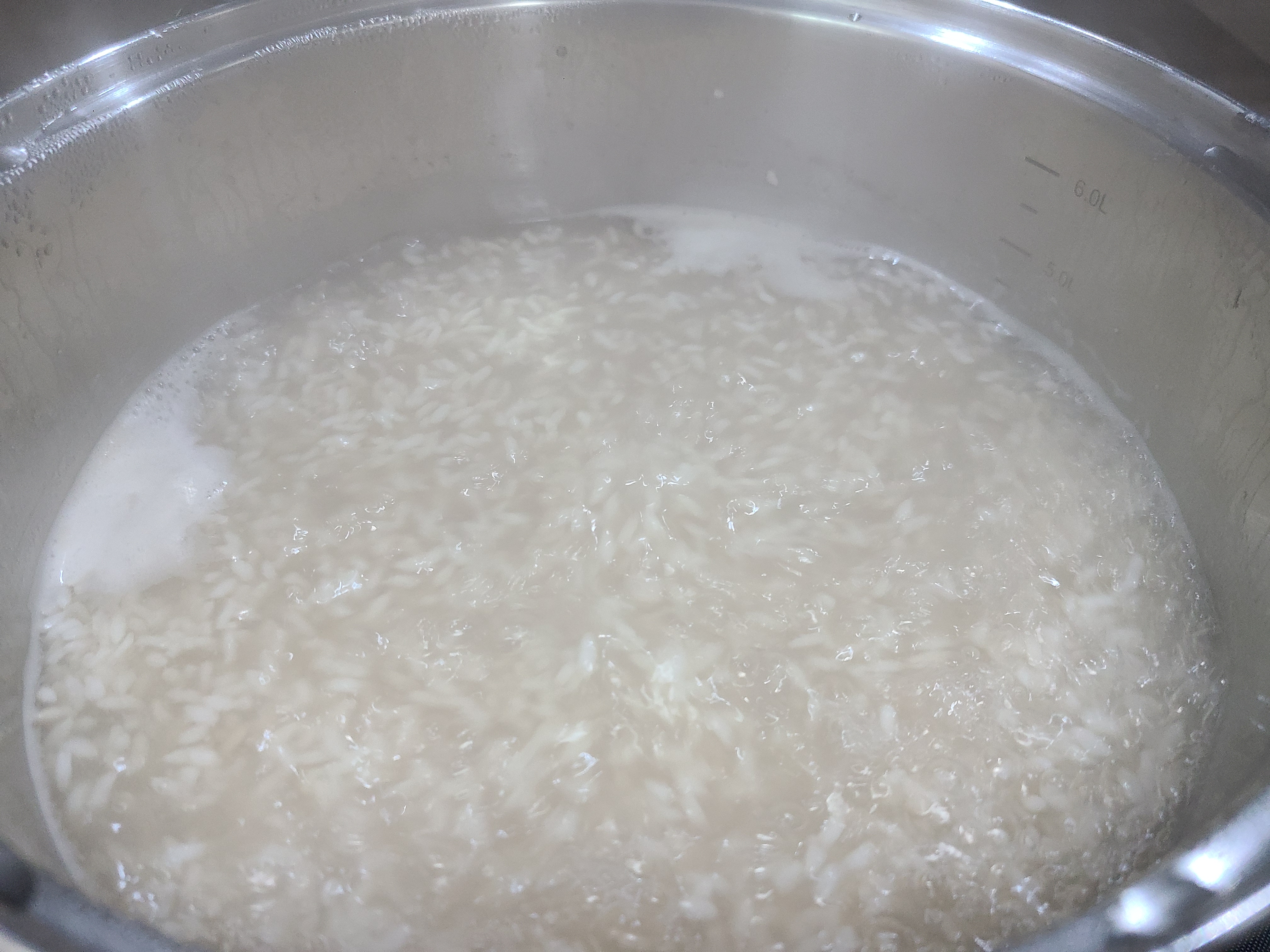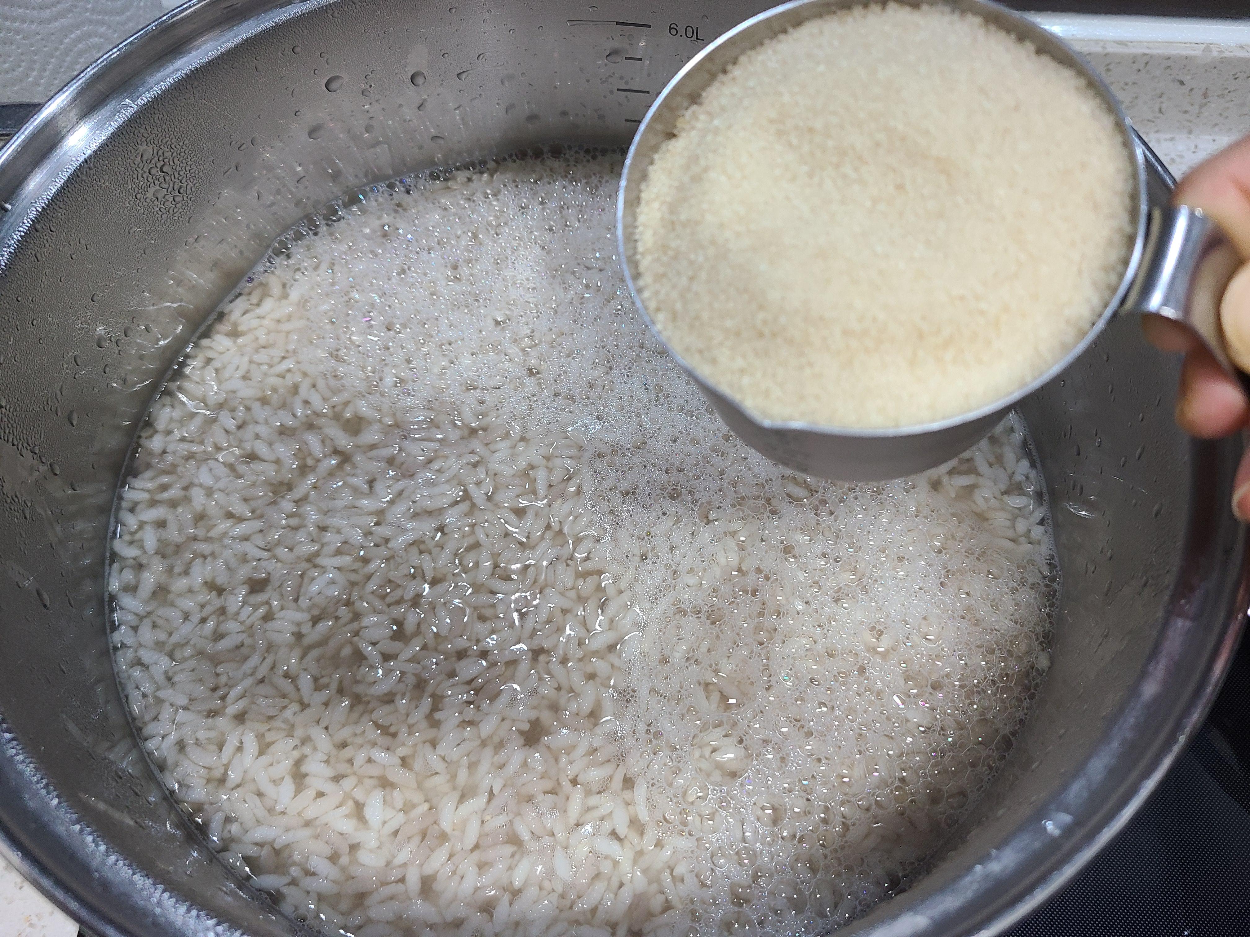 5. 남편은 식혜에 밥알이 많은 것을 싫어하기 때문에 생수 2리터를 끓여서 함께 넣고 다시 한소끔 끓여준다.