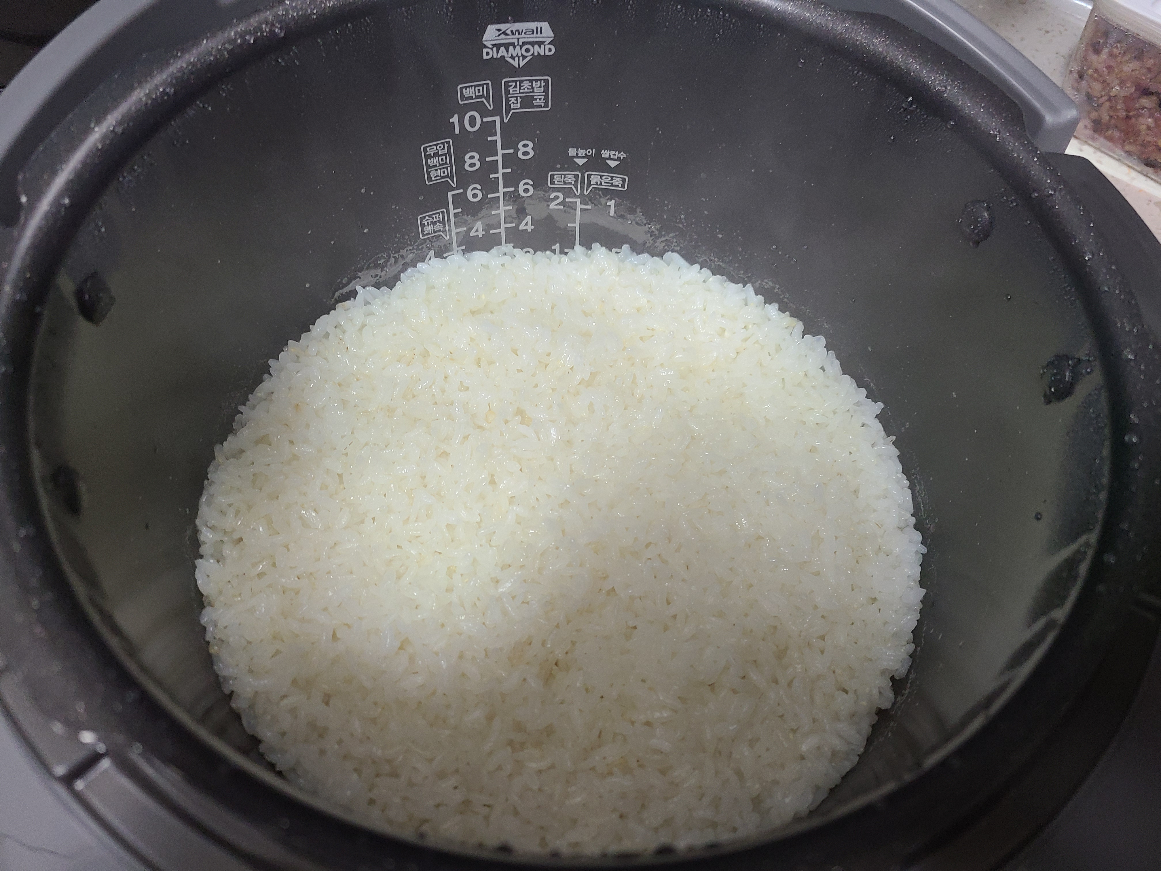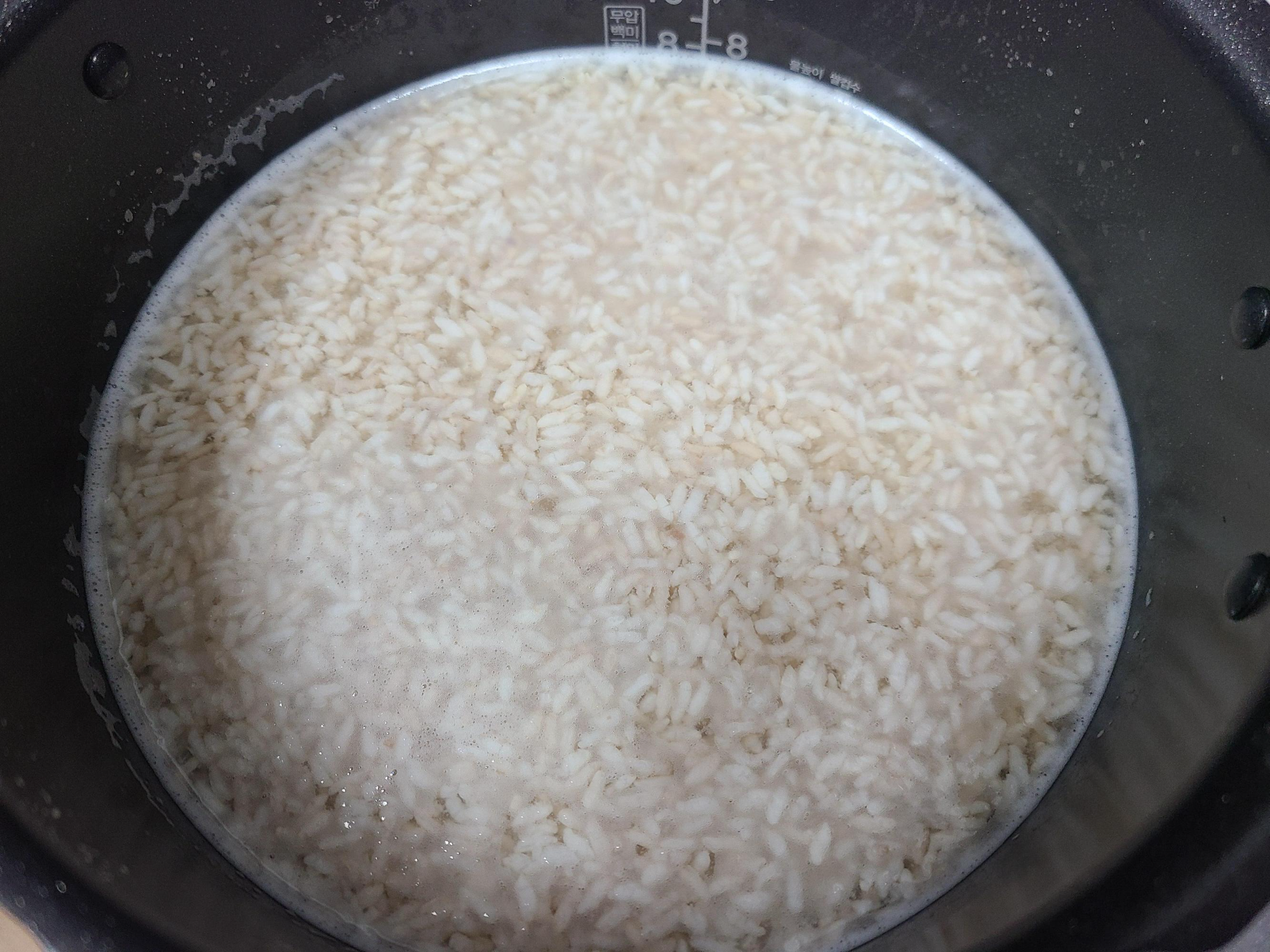 8. 6시간이 지나 전기밥솥을 열어보니 밥알이 잘 삭아서 하얗게 떠있다.