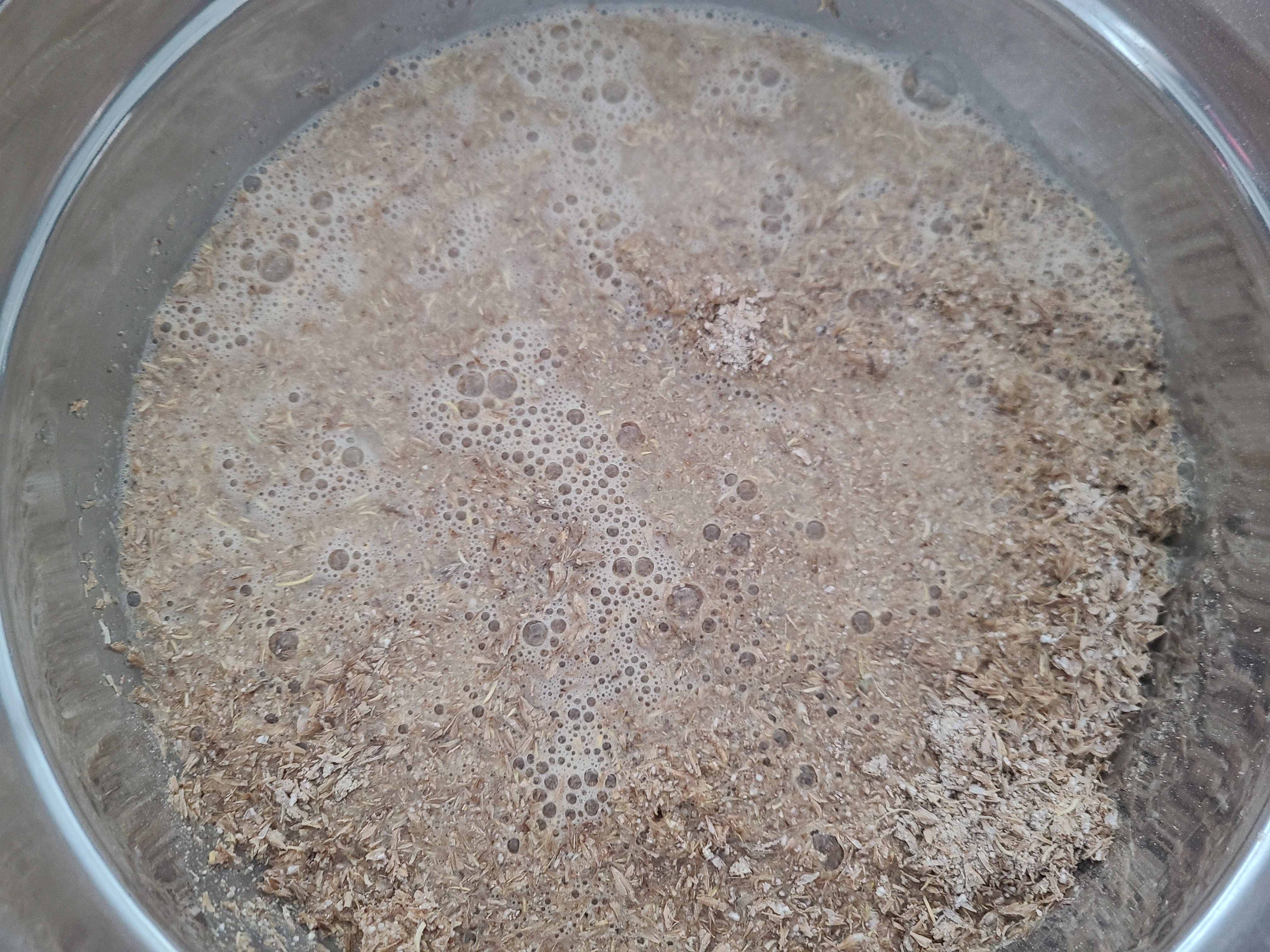 2.1시간 후 생수 1리터를 추가로 부어준 후 골고루 주물러준다.