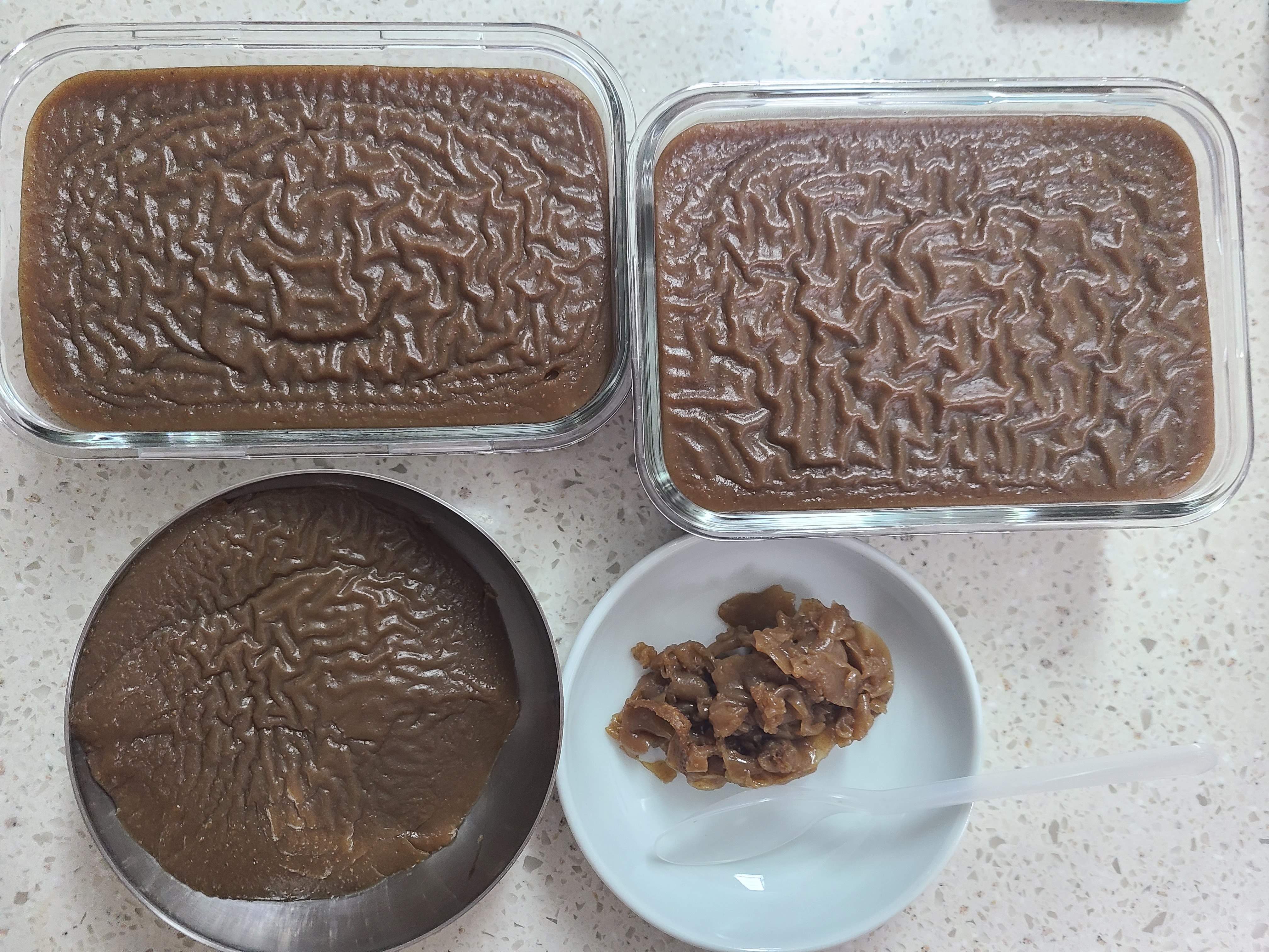 묵을 쑤면서 열심히 바닥까지 저어주었는데도 누룽지가 생겼다. 묵을 쑨 솥을 다용도실에 내어 놓았더니 가장자리에 남은 묵이 굳어 떼어내니 2큰술이 넘었다.