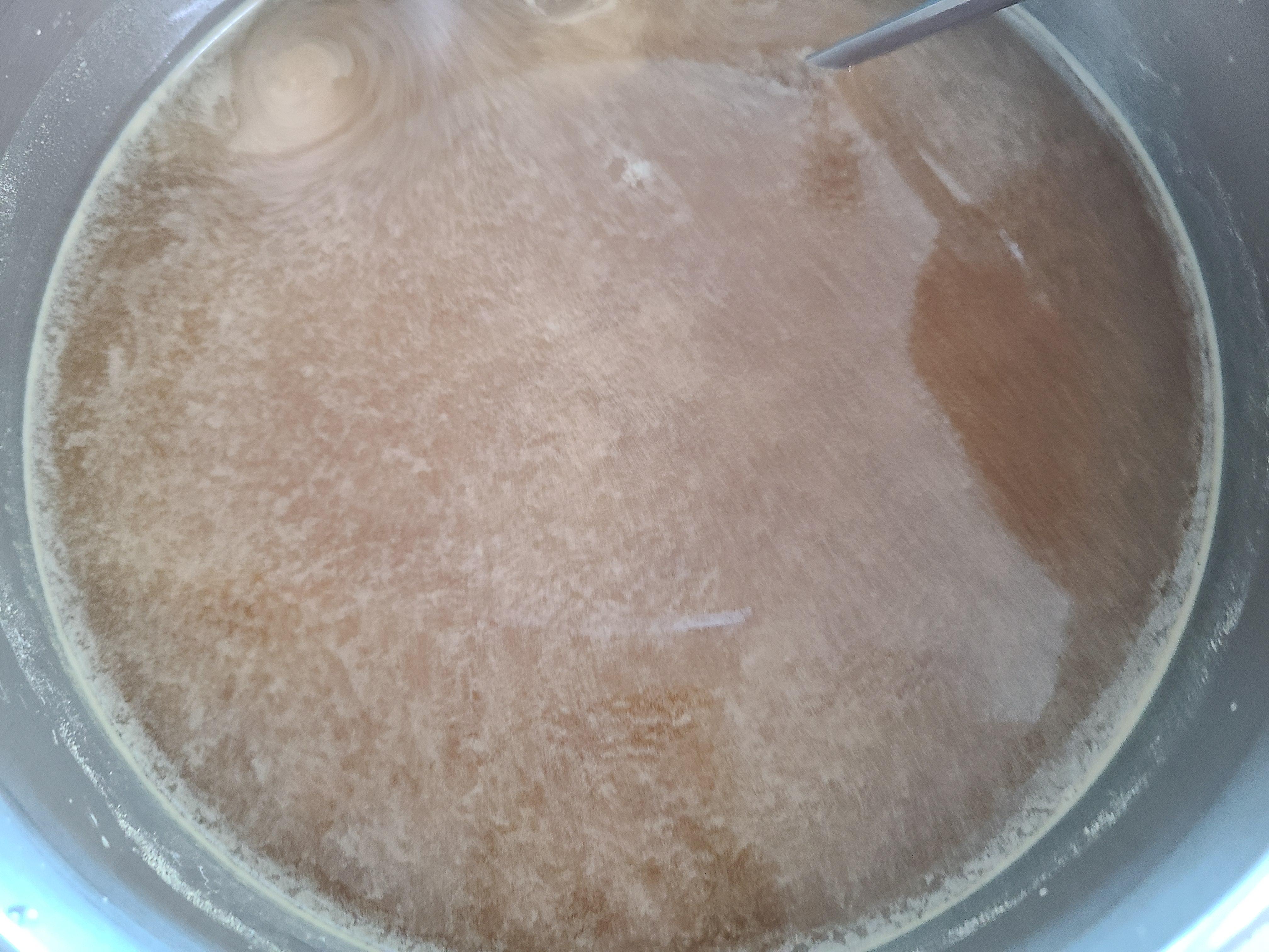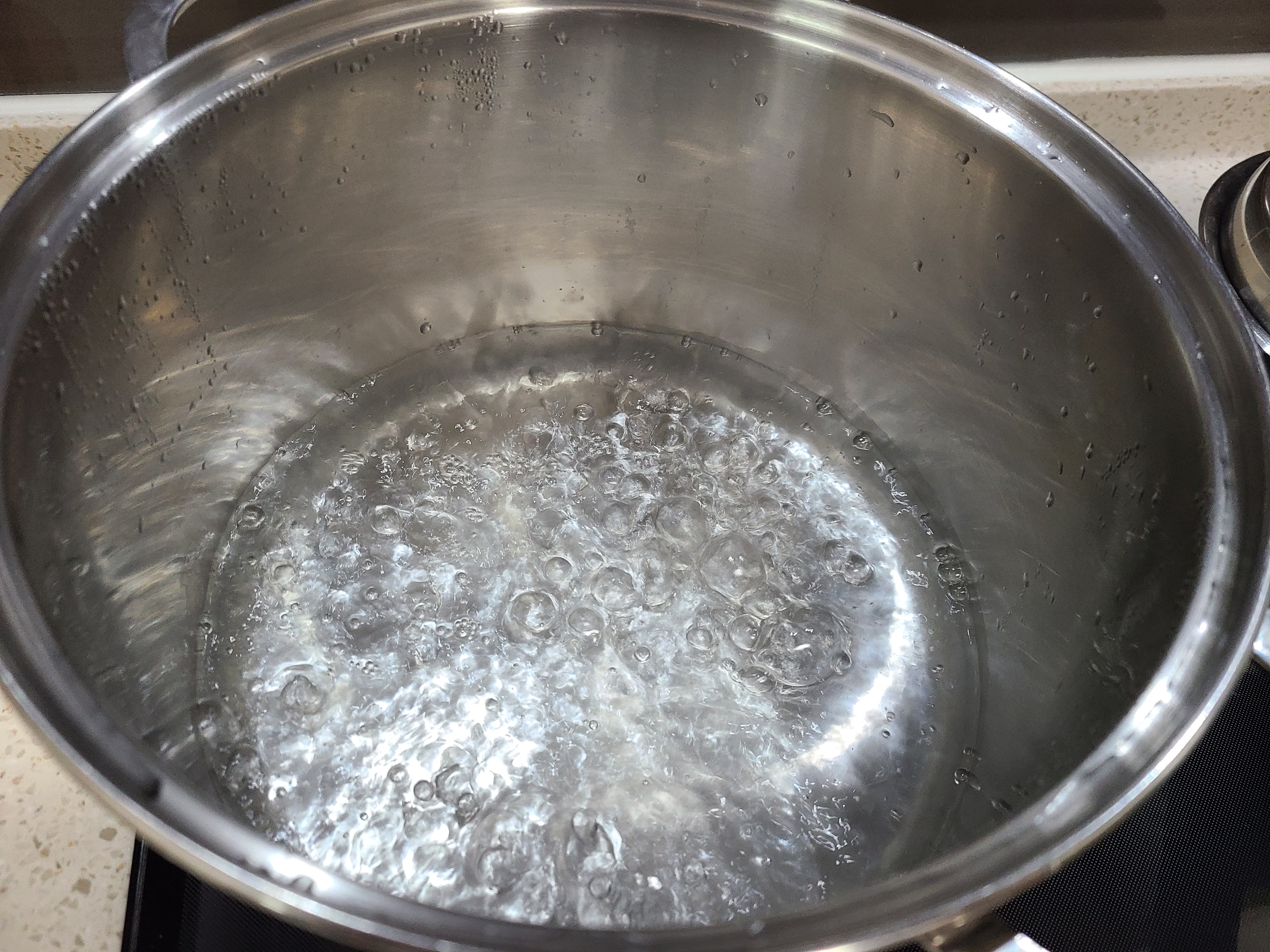 3. 솥에 넣은 1.2L의 물이 끓기 시작한다.