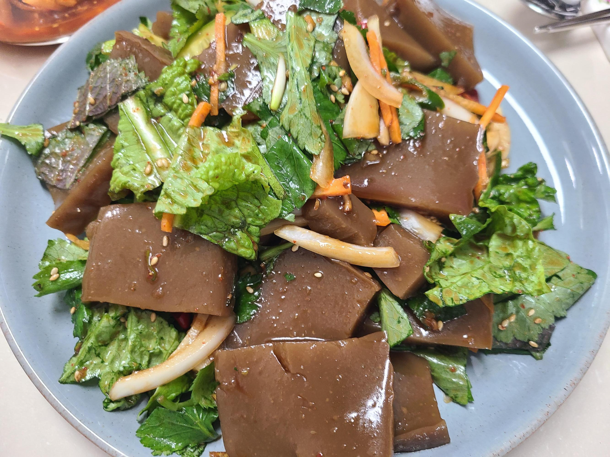 참나물이 함께 씹히니 향이 좋았다. 부드러우면서도 쫀득한 도토리묵 맛이 역시 사서 먹는 도토리묵 맛과는 정말 다르다.
