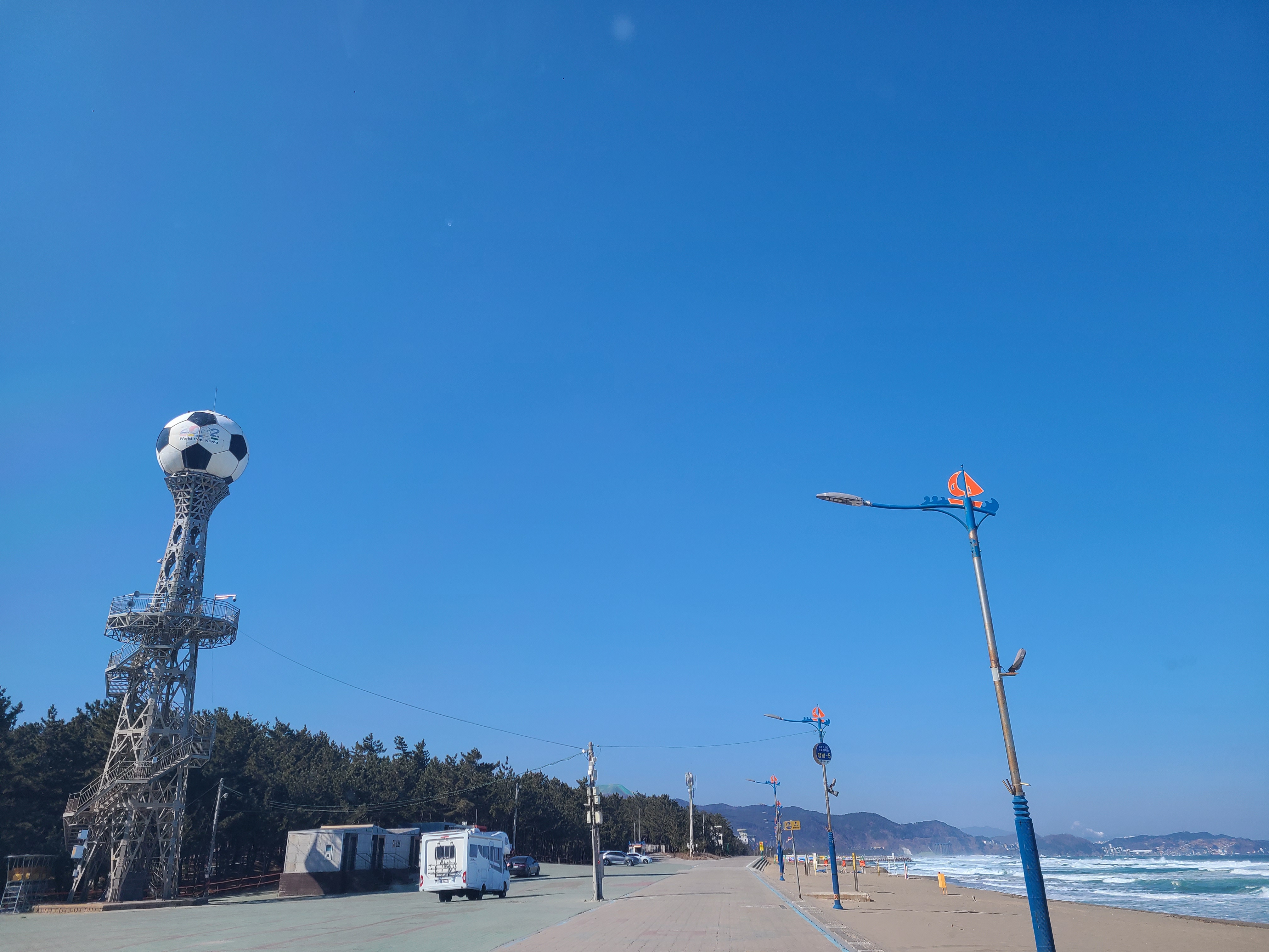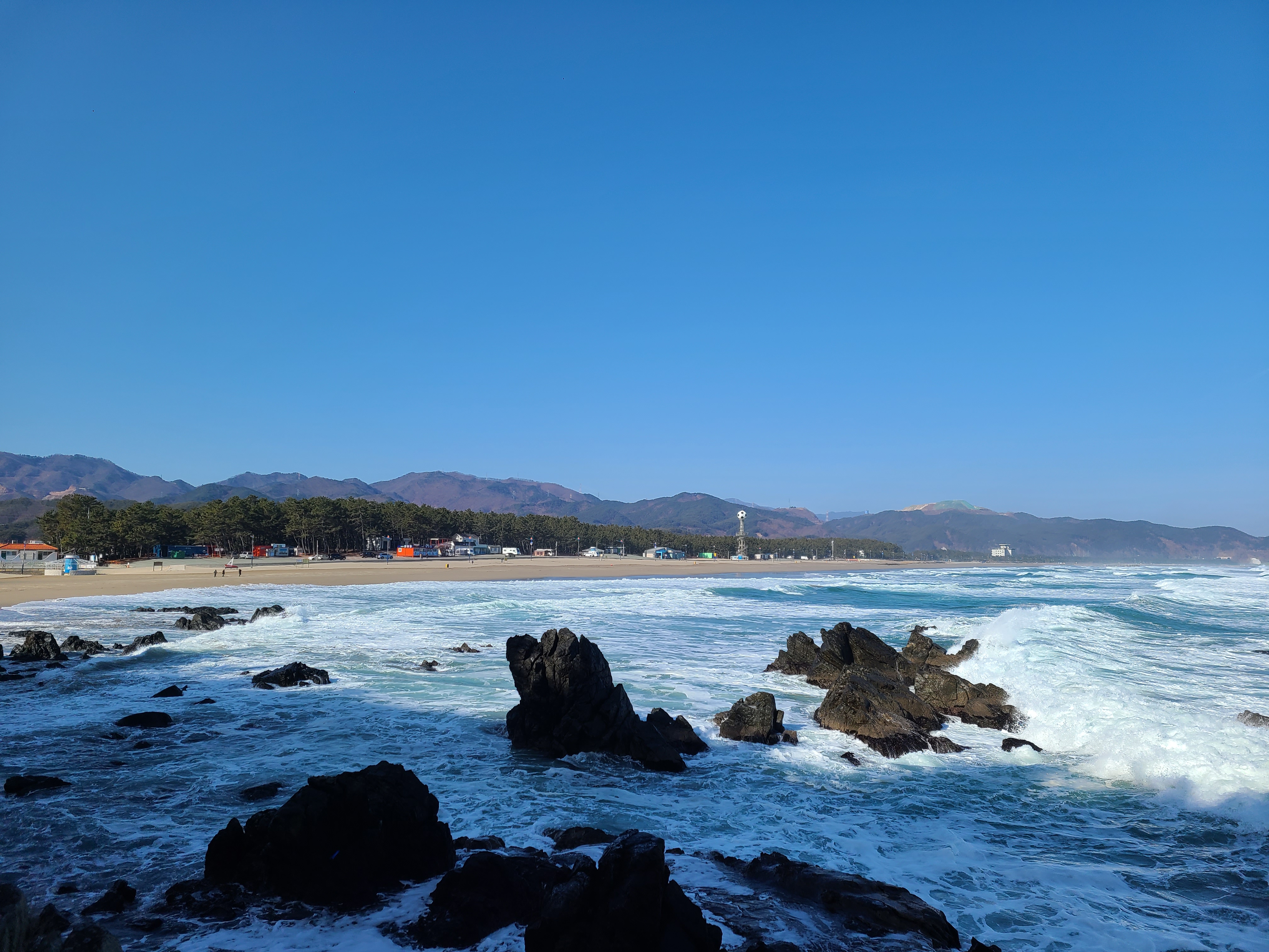 맹방해수욕장은 숙소인 국립 검봉산 자연휴양림에서 30km 거리로 25분 정도면 도착할 수 있는 곳이다.