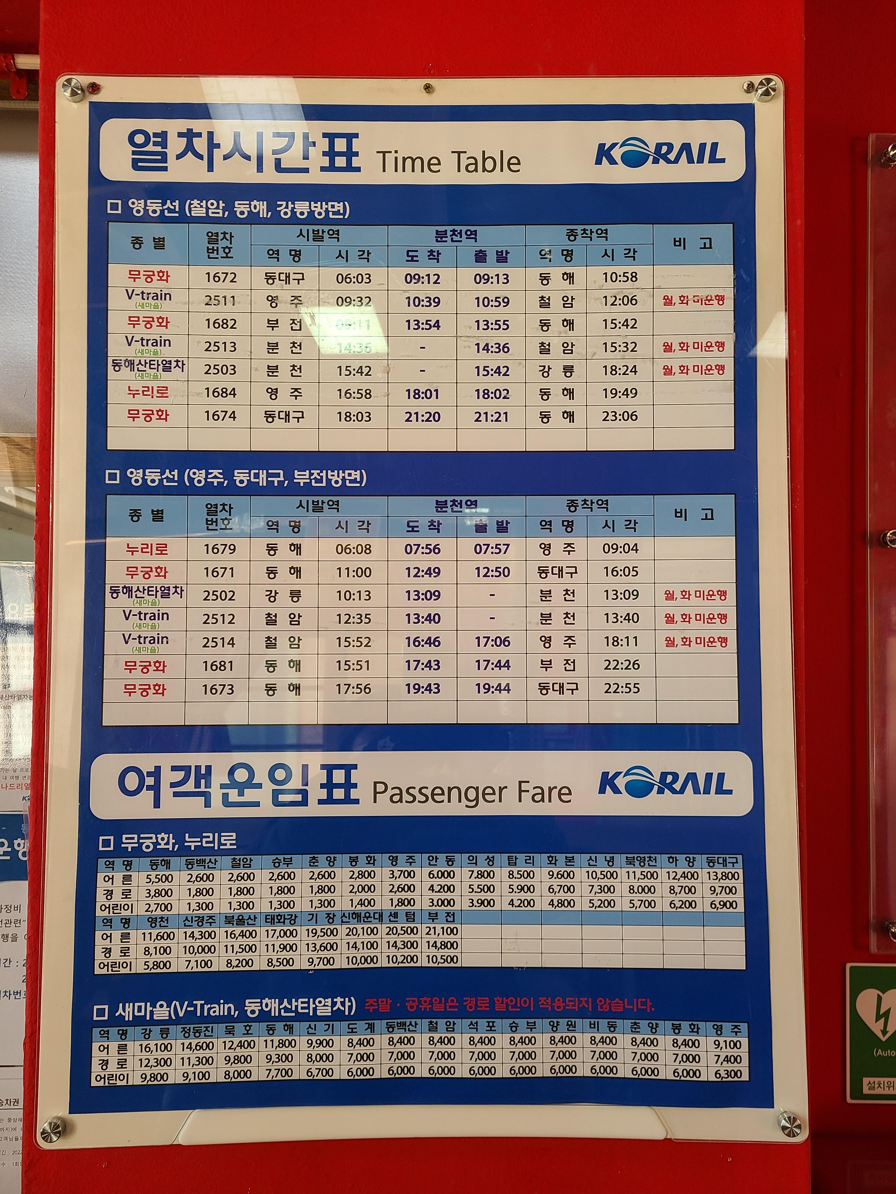 분천역에서 오후 3시 42분에 출발해서 강릉에 오후 6시 24분에 도착하는 동해 산타열차가 들어와 대기하고 있었다. 열차를 타고 동해와 강릉을 여행하는 것도 색다른 즐거움을 느낄 수 있겠다는 생각이 들었다.