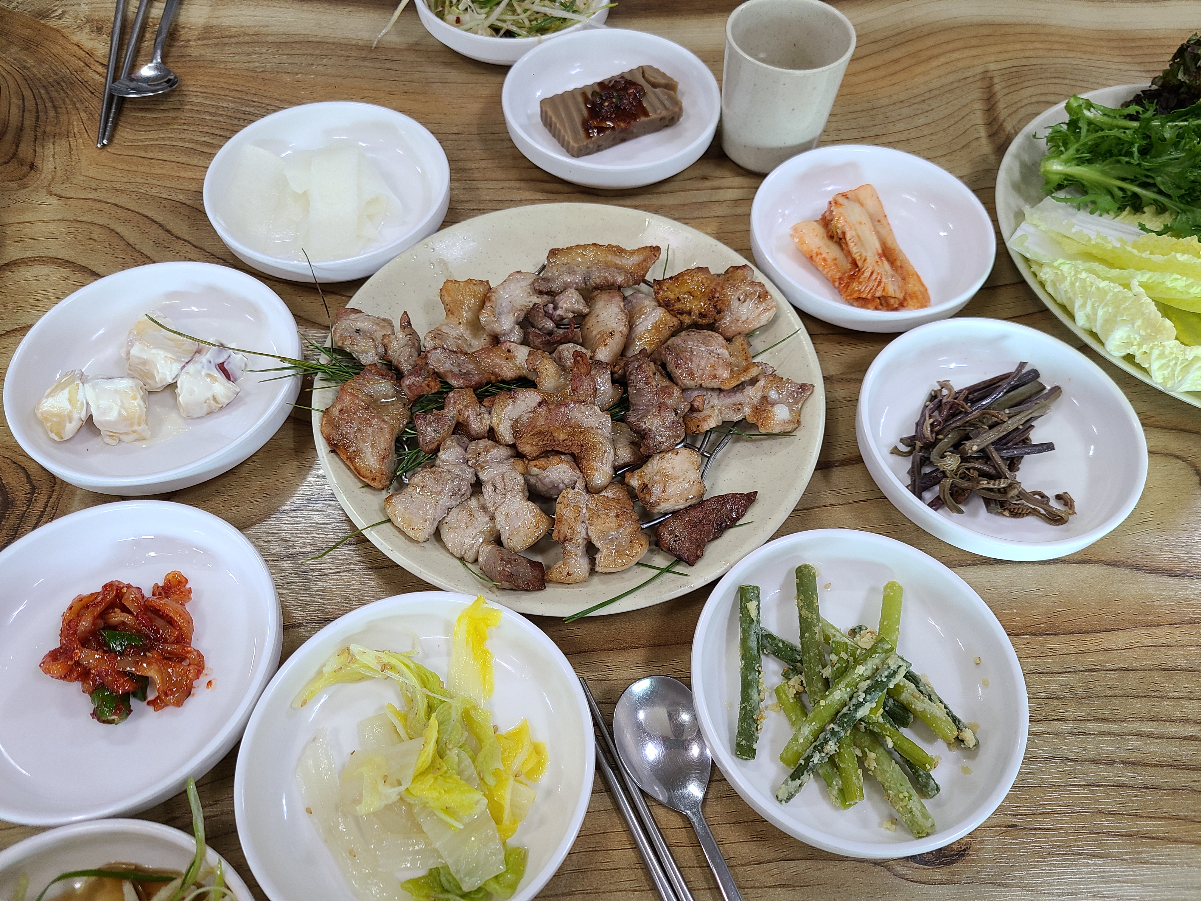 함께 나온 반찬은 평범했지만 돼지 숯불구이 맛이 만족스러워 상관없었다.