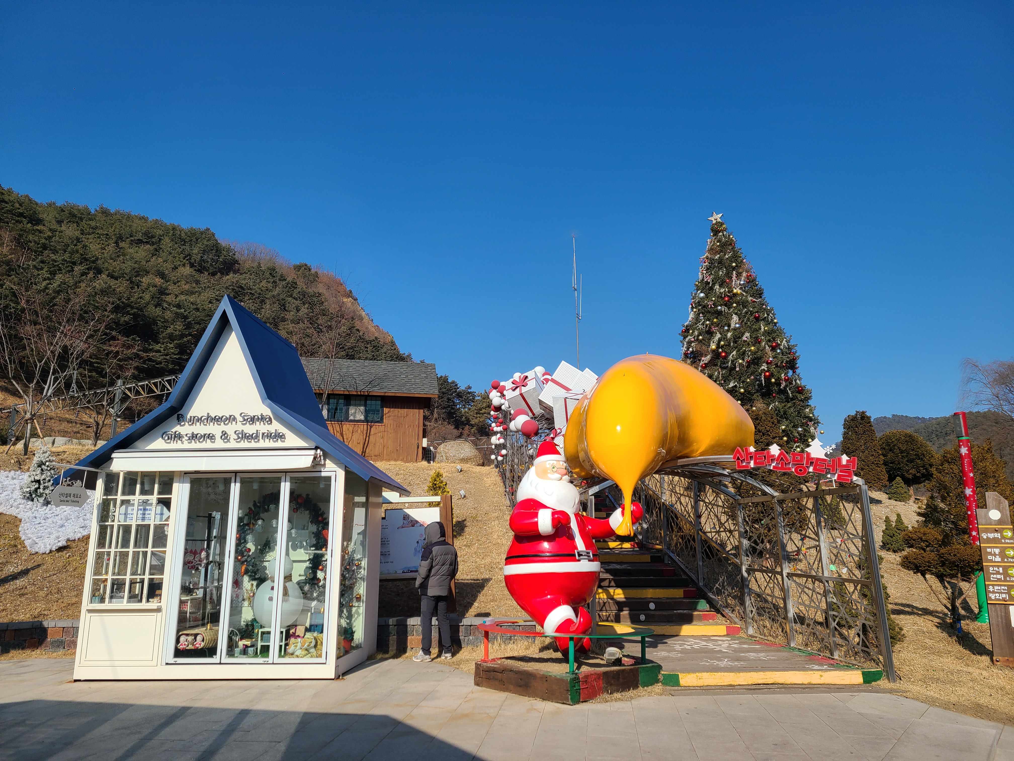 2월의 막바지 추위가 기승을 부리는 날인데 아쉽게도 산타마을가 어울리는 흰 눈이 내리지는 않았다.