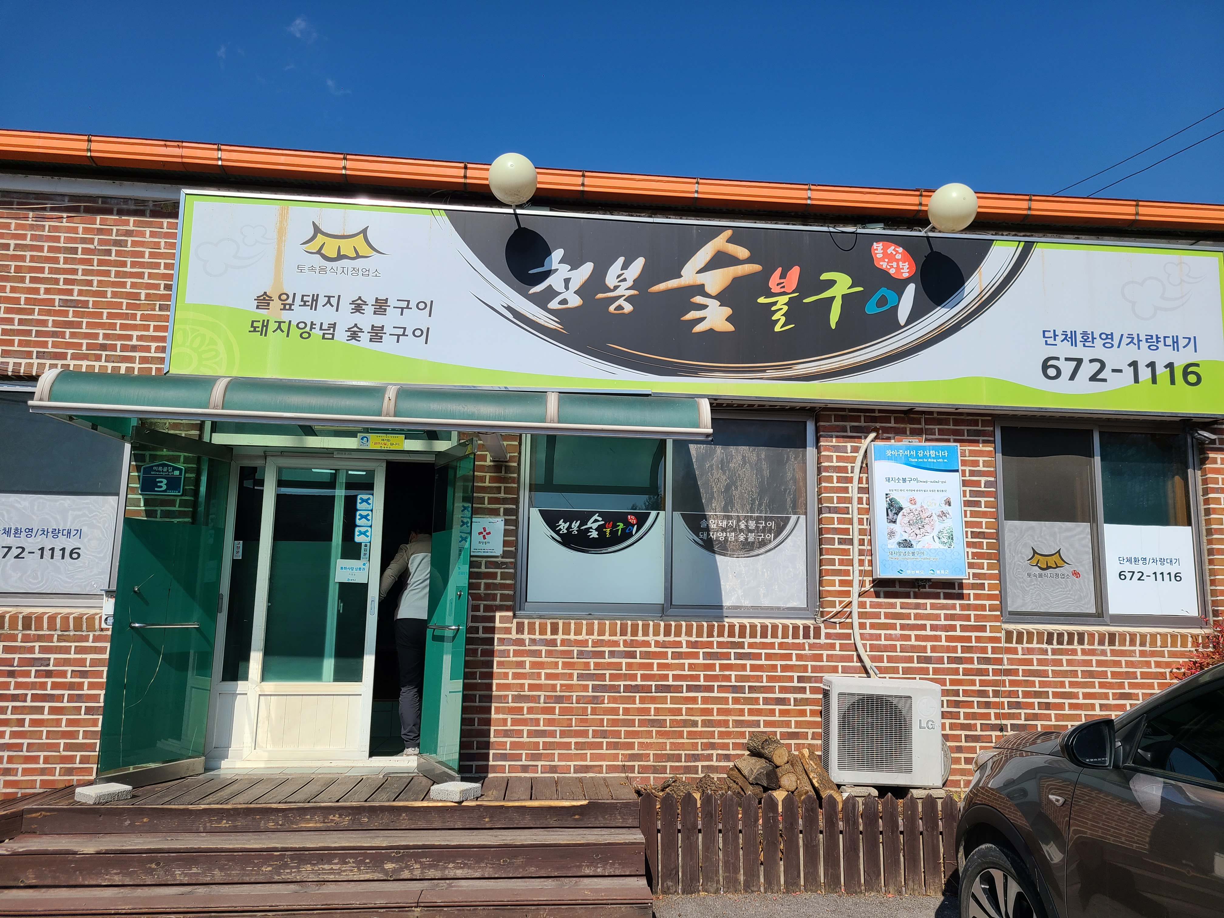 남편이 주유소에서 주유를 하는 동안 검색을 해보니 이곳 봉성면이 돼지 숯불구이 집들이 모여 있는 곳이 맞았다. 마침 1시가 넘어 점심을 먹어야 하기에 청봉 숯불구이에서 점심을 먹기로 했다.