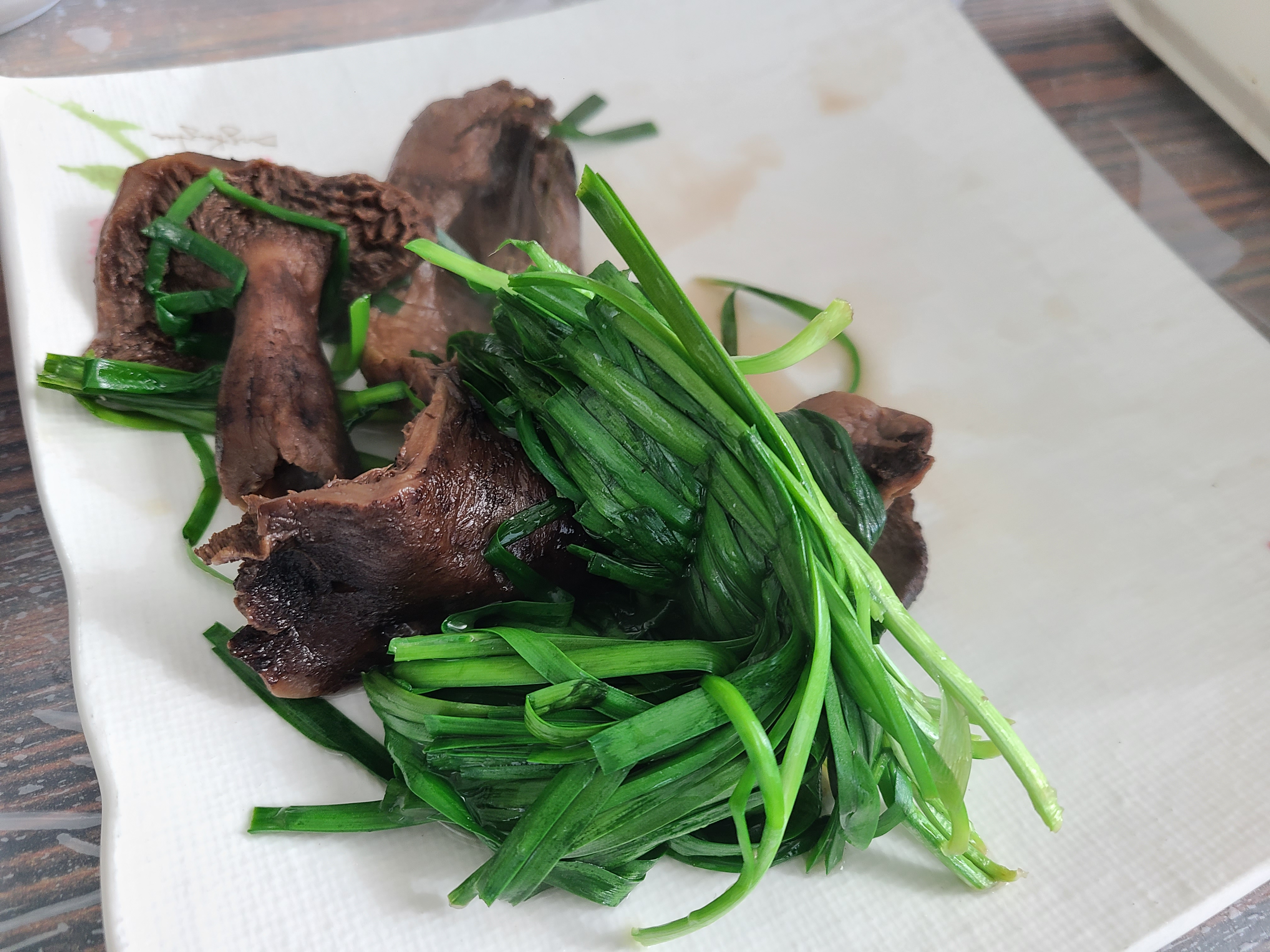 큼직한 능이와 부추가 수북이 얹어져 나왔다.