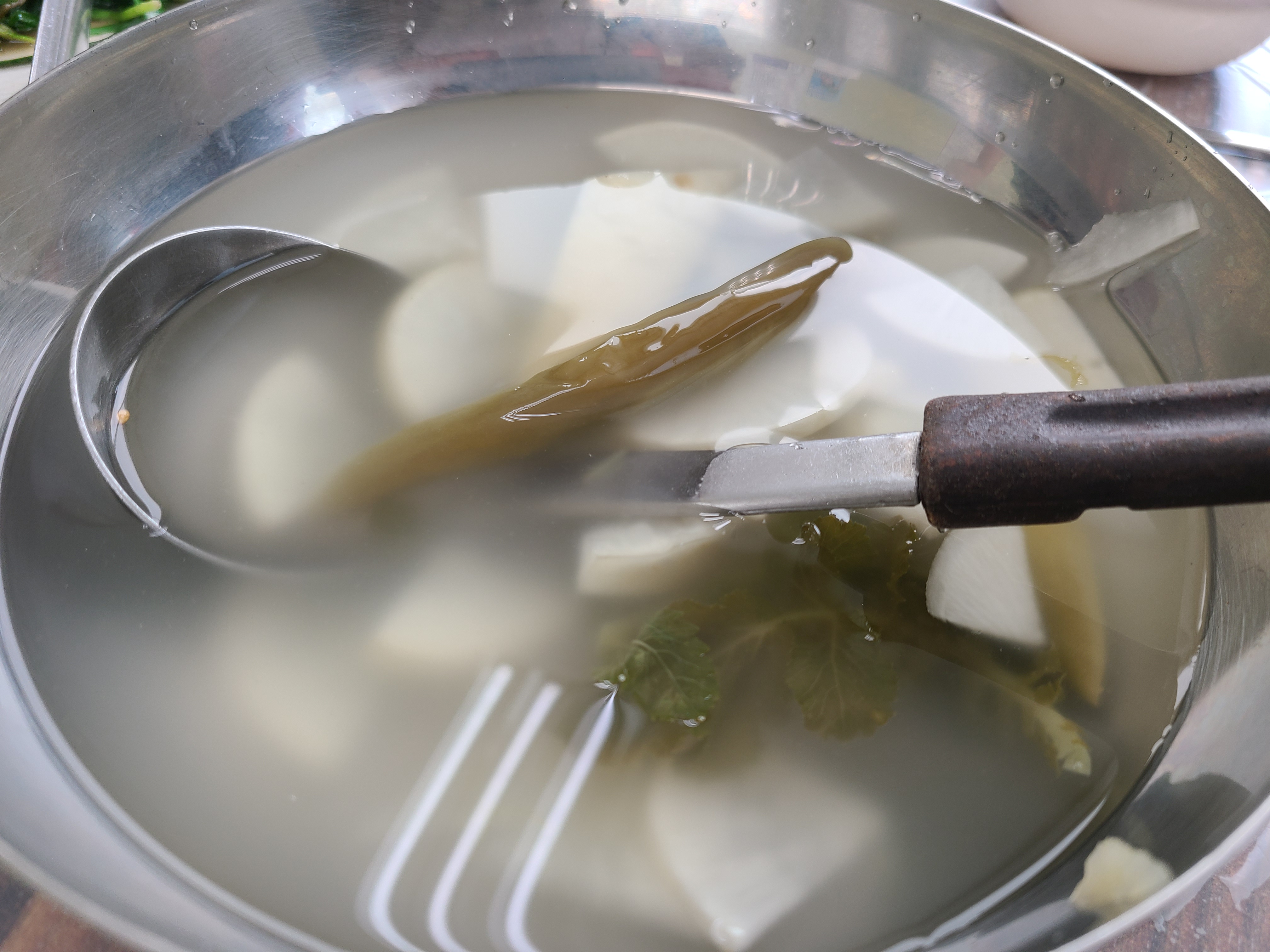 백숙이 남은 이유는 한 명이 덜 먹어서도 있지만 동치미 때문이기도 하다.