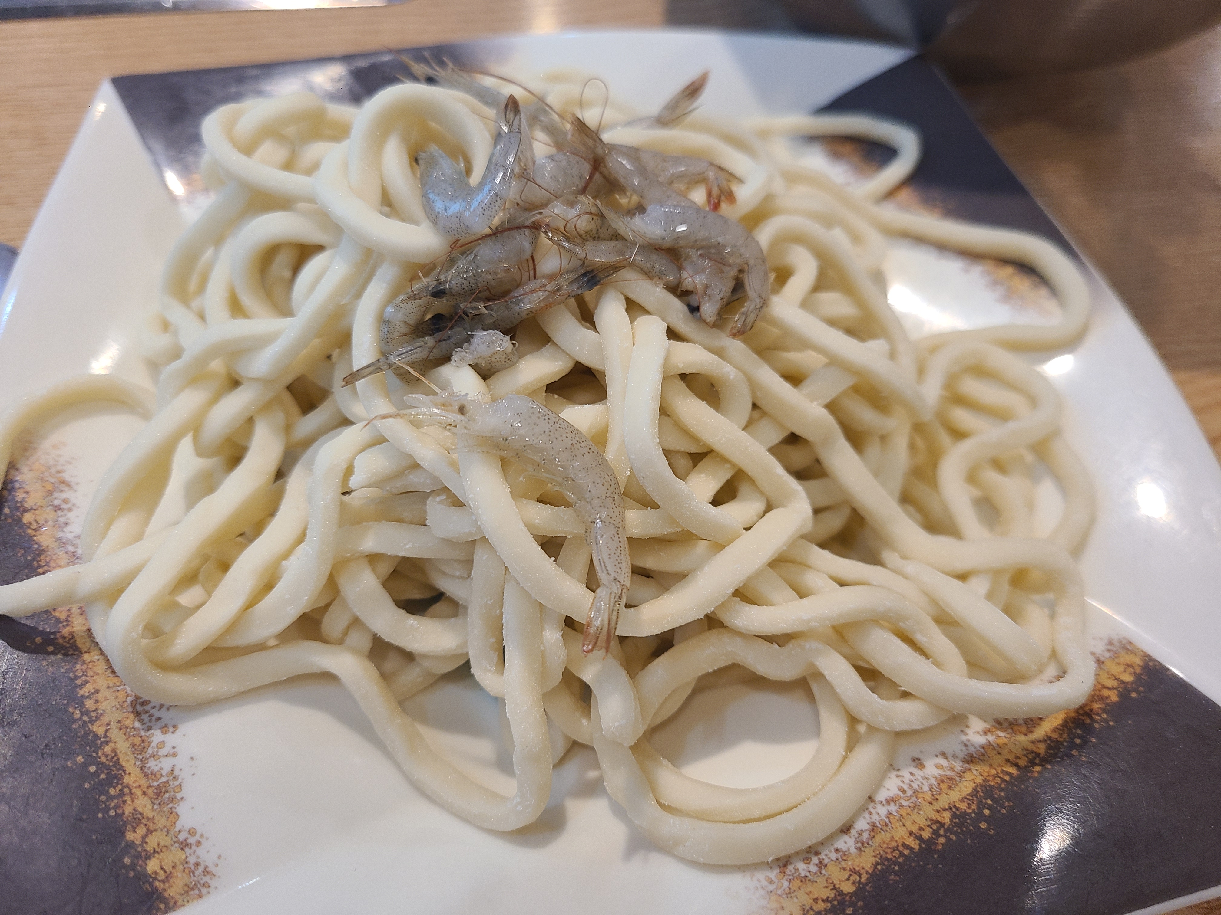 해산물과 야채를 거의 건져먹으면서 추가 버섯을 주문하고 육수를 추가로 부어준 후 칼국수 면을 넣었다.
